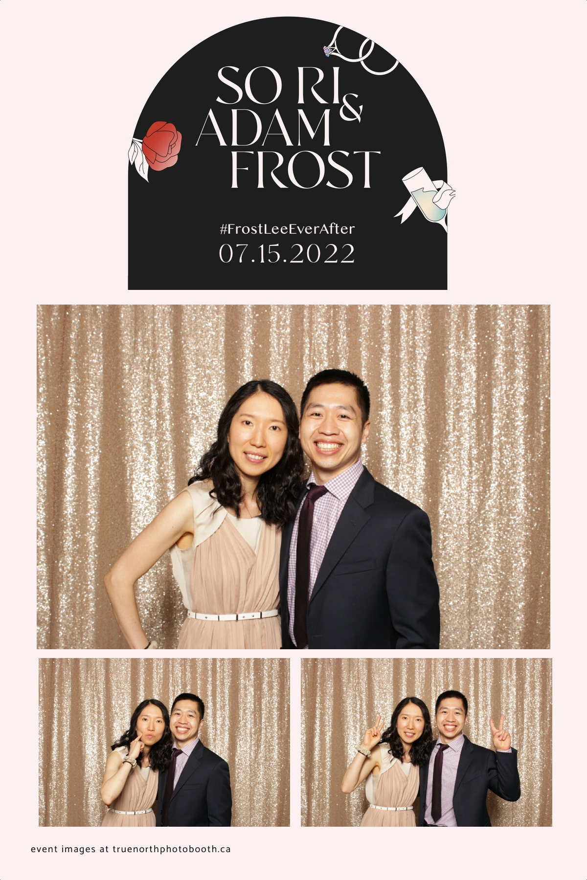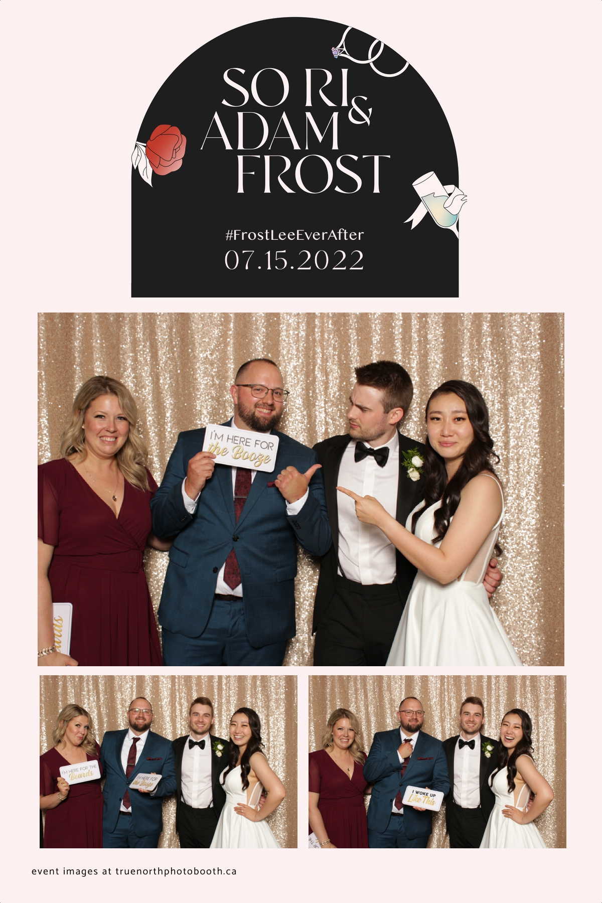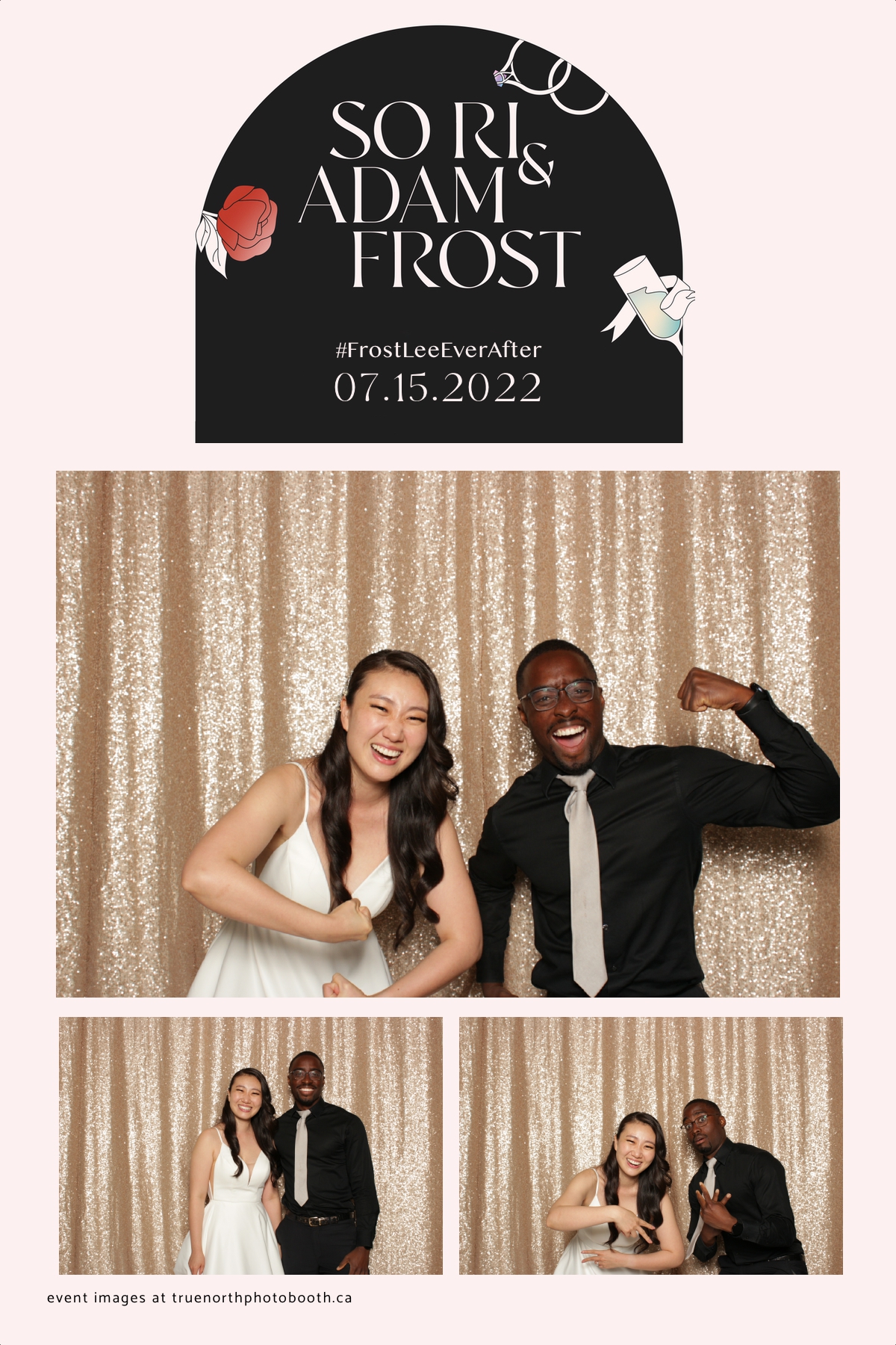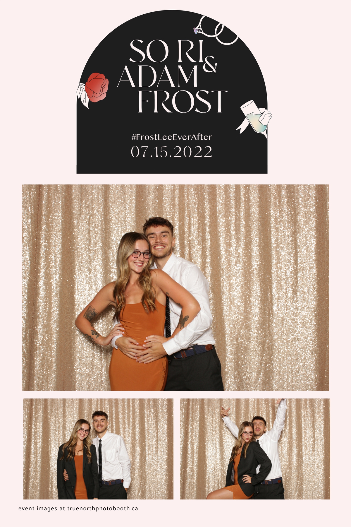 Adam and Sonia’s wedding was as classy as the Remai Modern where the event was hosted. With poise, elegance & class, this couple and their guests enjoyed an evening of delicious food, laughter and storytelling that was unmatched. It was incredibly evident that this couple is well loved and appreciated. They opted for our vertical 4X6 custom photo strip with an incredibly unique & chic design. Our champagne sequin backdrop sparkled throughout the night. The only things brighter in the room were the smiles of everyone who attended. Adam and Sonia, we sincerely wish all the best and blessings this marriage journey can bring to you.