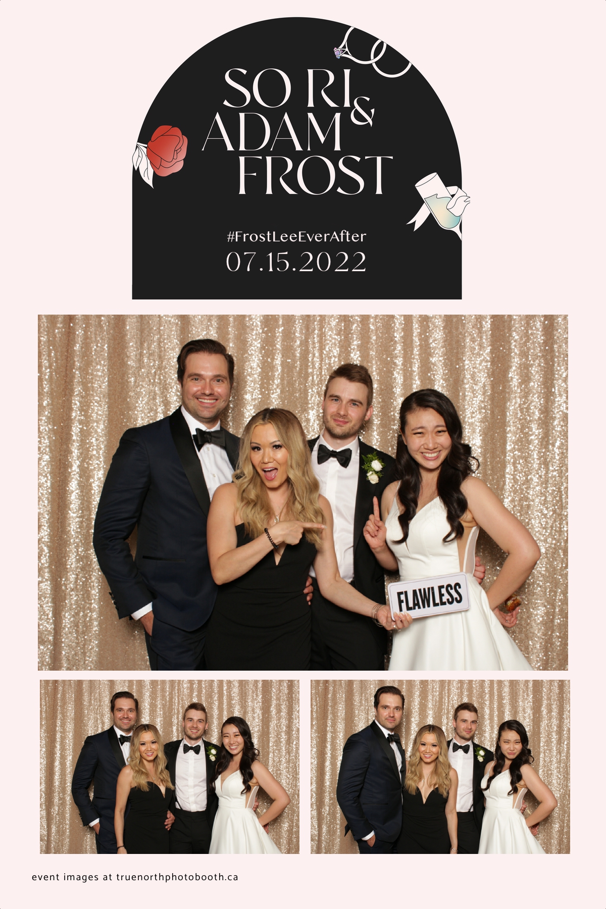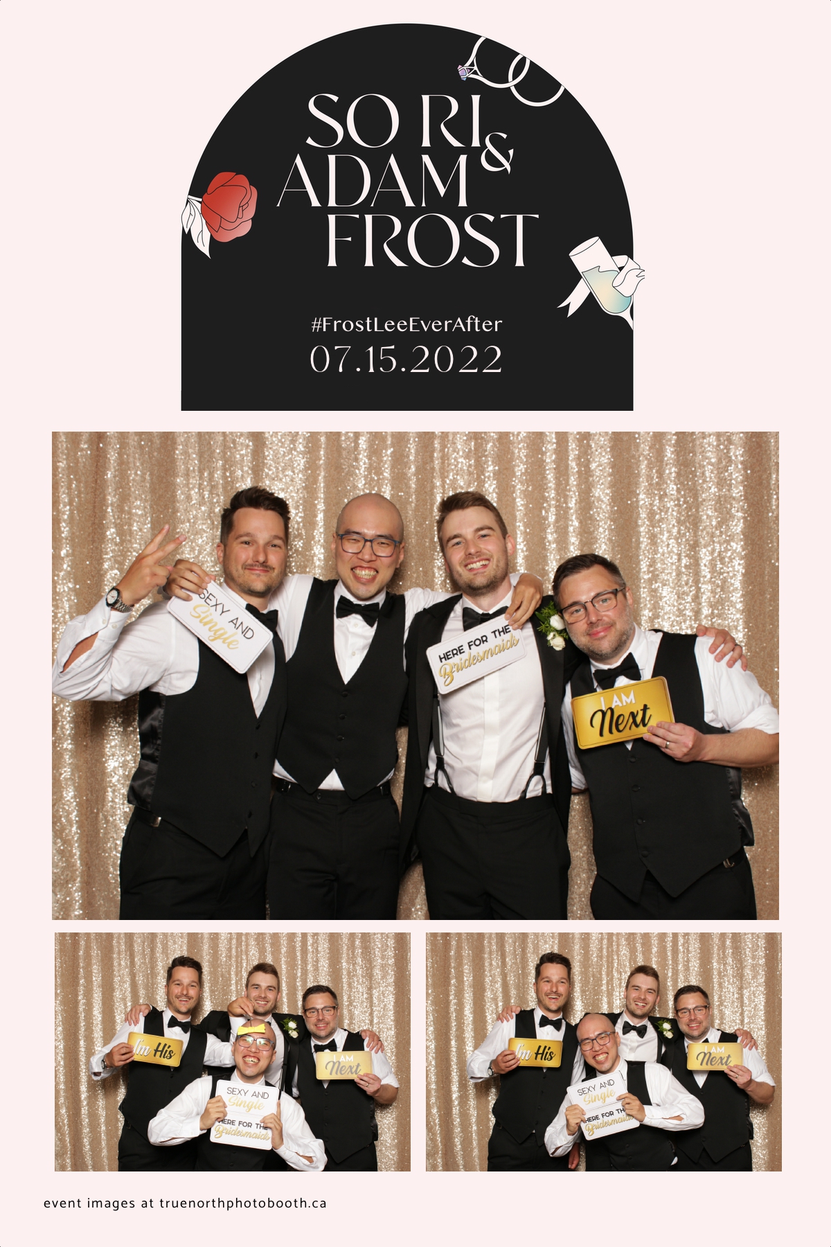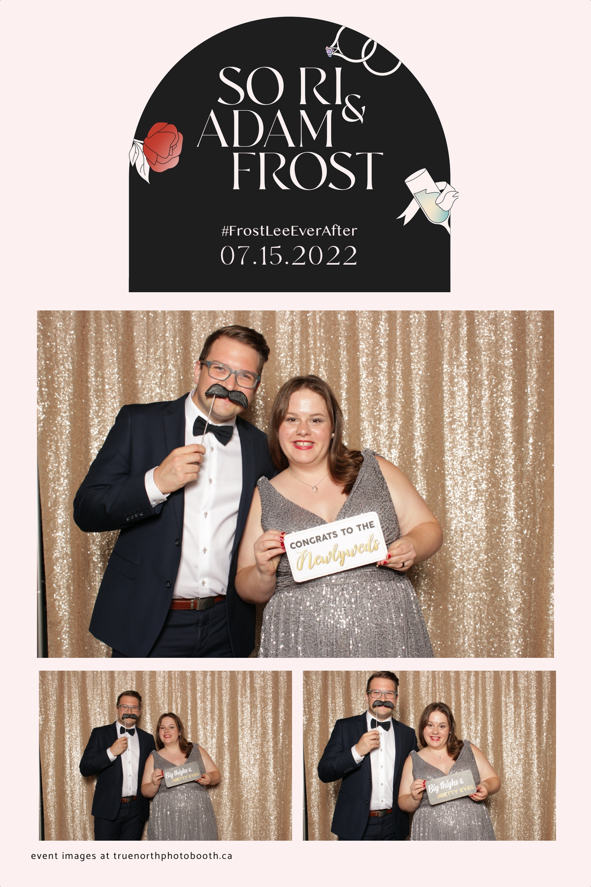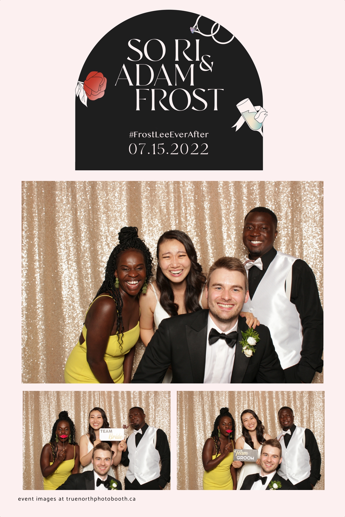 Adam and Sonia’s wedding was as classy as the Remai Modern where the event was hosted. With poise, elegance & class, this couple and their guests enjoyed an evening of delicious food, laughter and storytelling that was unmatched. It was incredibly evident that this couple is well loved and appreciated. They opted for our vertical 4X6 custom photo strip with an incredibly unique & chic design. Our champagne sequin backdrop sparkled throughout the night. The only things brighter in the room were the smiles of everyone who attended. Adam and Sonia, we sincerely wish all the best and blessings this marriage journey can bring to you.
