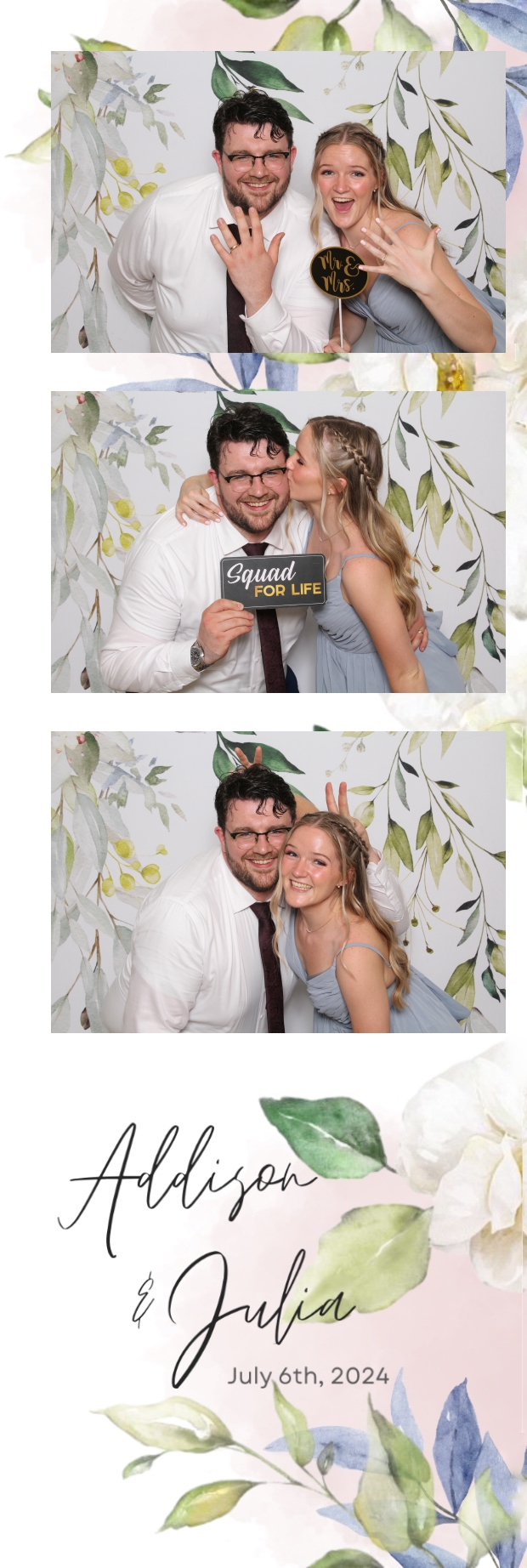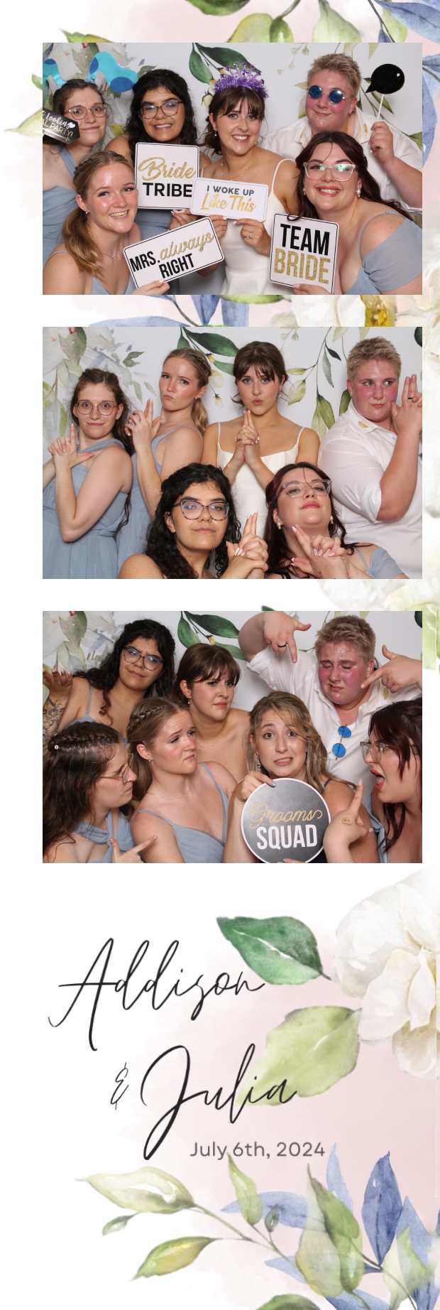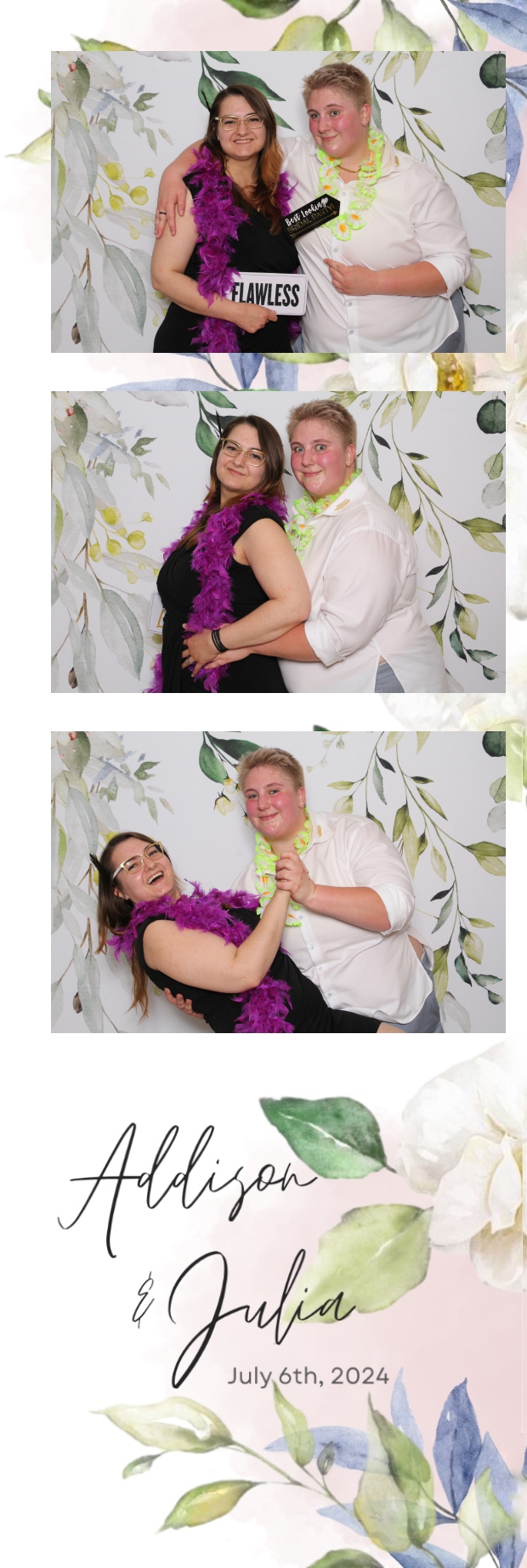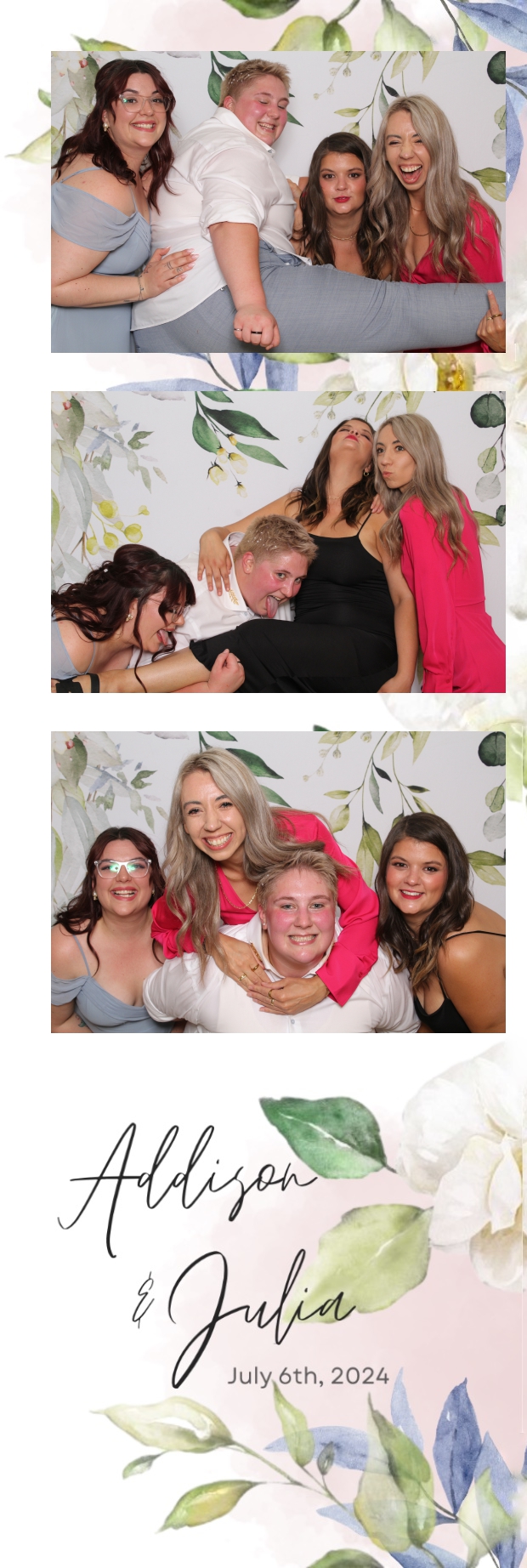 Featuring a whimsical greenery pillow backdrop and custom 2X6 photo strips, the photo booth was an instant hit with guests. Everyone enjoyed capturing memories and creating keepsakes of Addison and Julia’s special day. True North Photo Booth’s service and creative touch ensured that every snapshot was a perfect memento of the celebration. Their presence made the event not only memorable but also delightfully documented, leaving everyone with cherished reminders of a truly enchanting wedding.