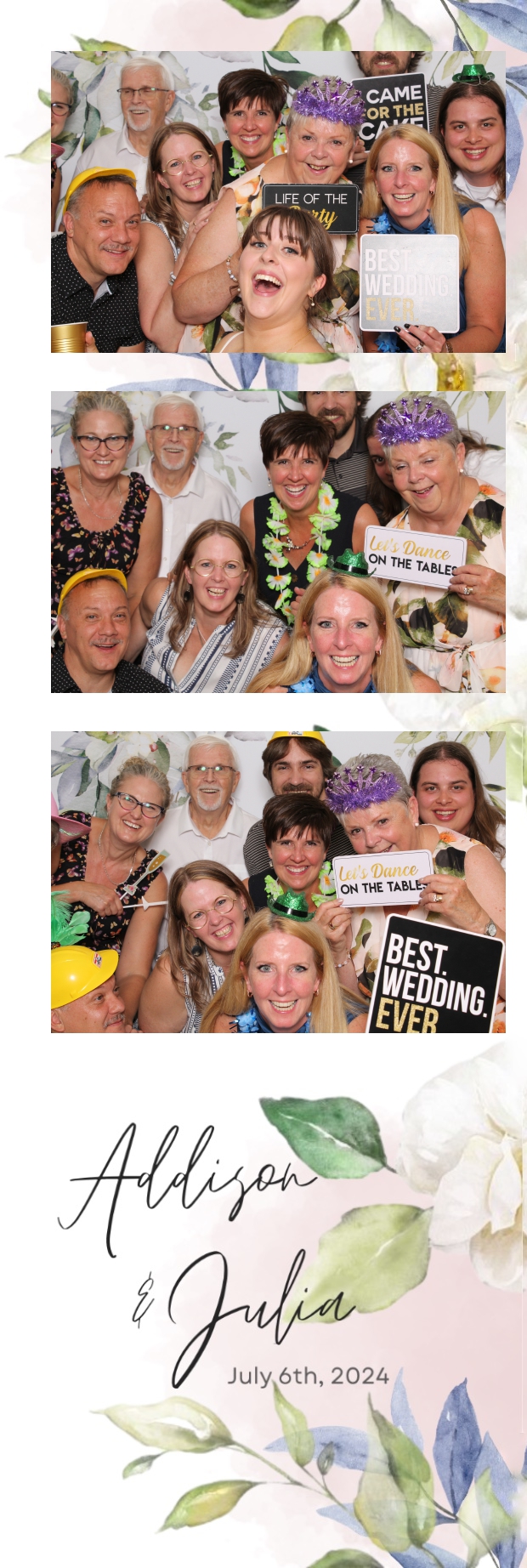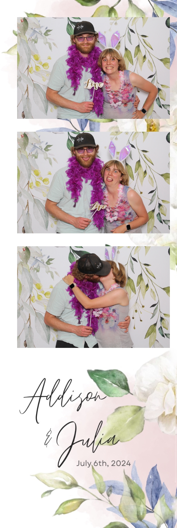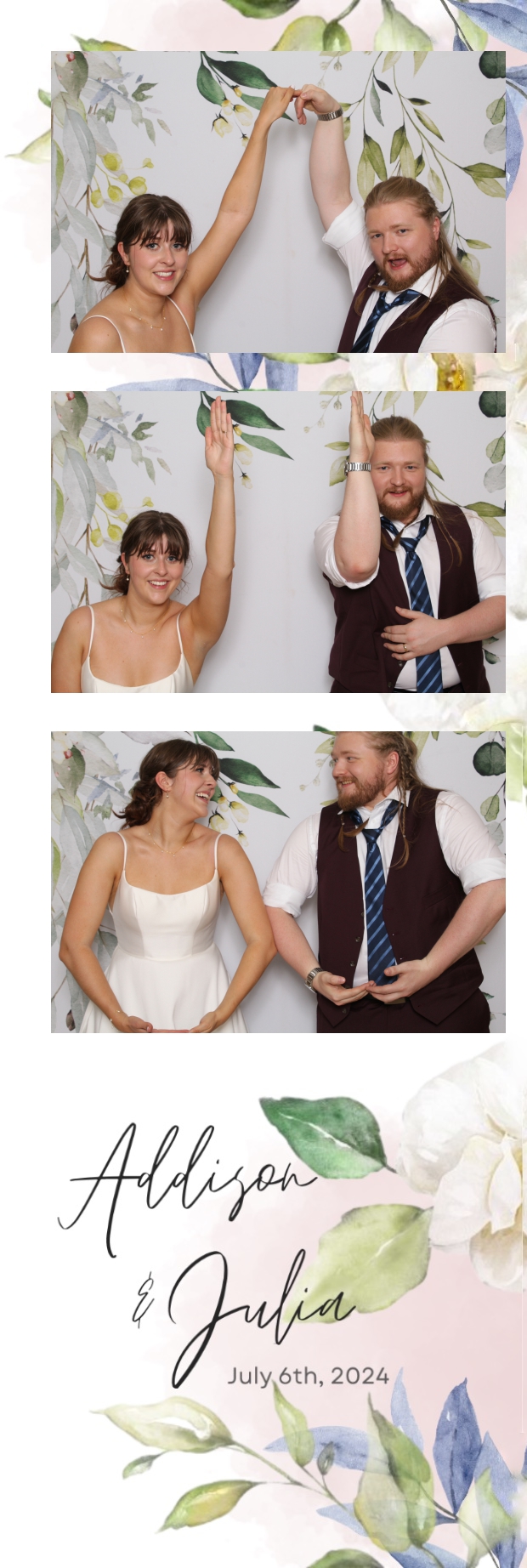 Featuring a whimsical greenery pillow backdrop and custom 2X6 photo strips, the photo booth was an instant hit with guests. Everyone enjoyed capturing memories and creating keepsakes of Addison and Julia’s special day. True North Photo Booth’s service and creative touch ensured that every snapshot was a perfect memento of the celebration. Their presence made the event not only memorable but also delightfully documented, leaving everyone with cherished reminders of a truly enchanting wedding.