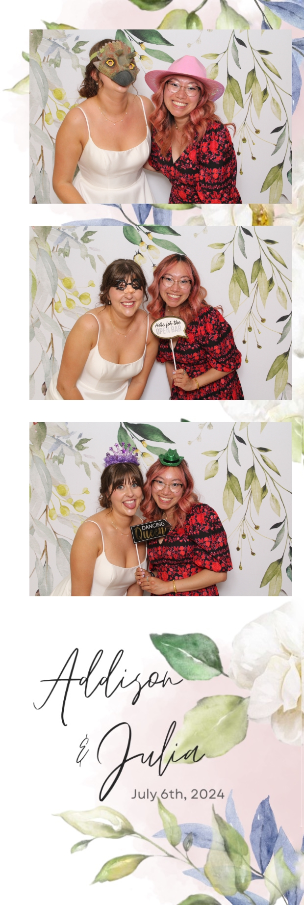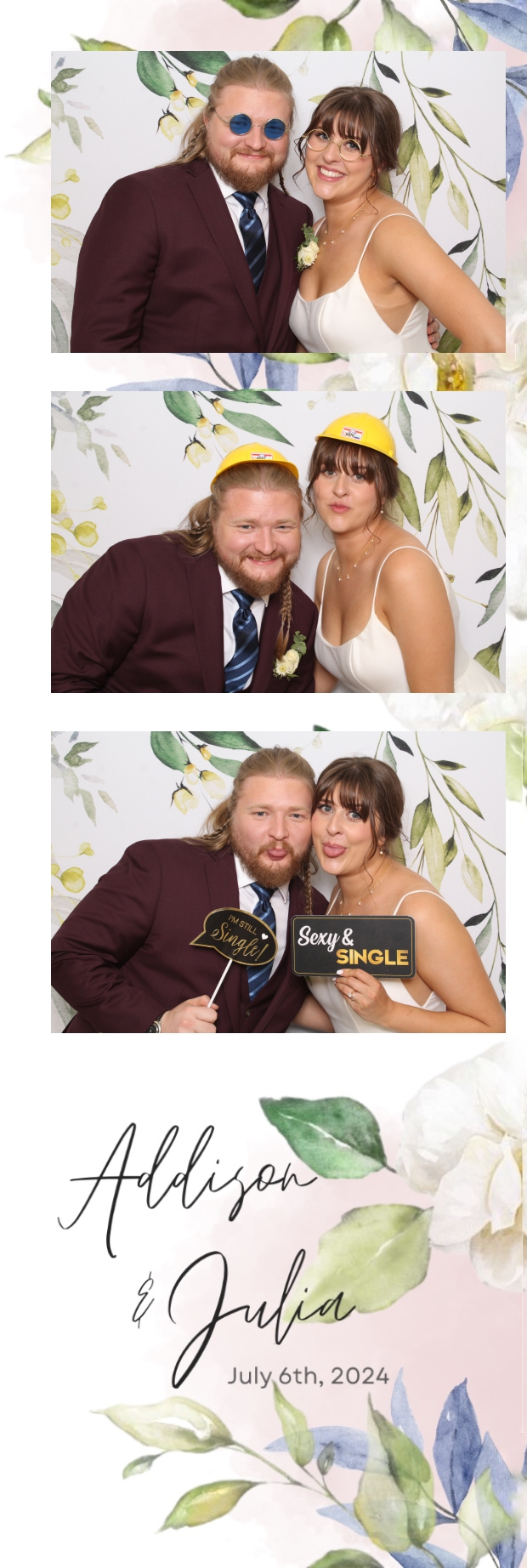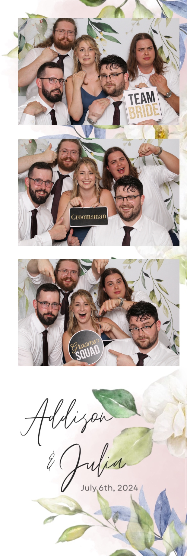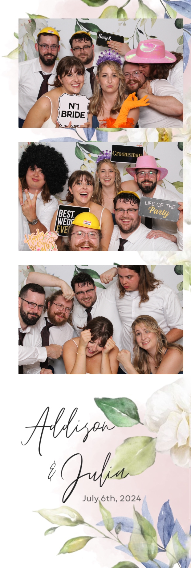 Featuring a whimsical greenery pillow backdrop and custom 2X6 photo strips, the photo booth was an instant hit with guests. Everyone enjoyed capturing memories and creating keepsakes of Addison and Julia’s special day. True North Photo Booth’s service and creative touch ensured that every snapshot was a perfect memento of the celebration. Their presence made the event not only memorable but also delightfully documented, leaving everyone with cherished reminders of a truly enchanting wedding.