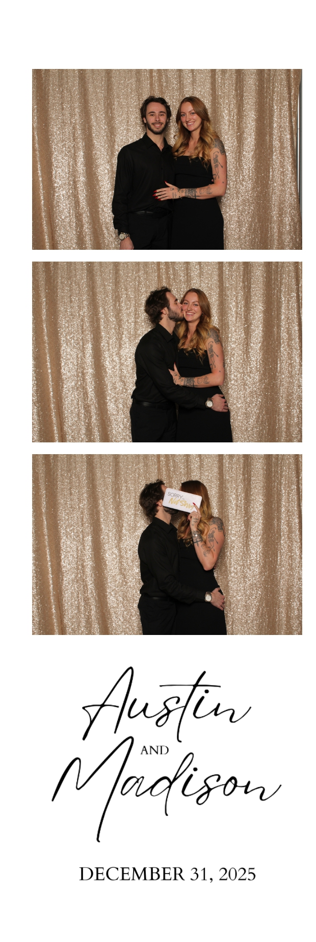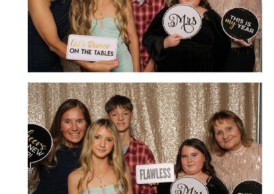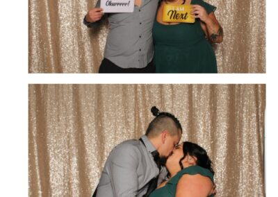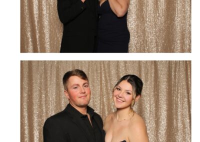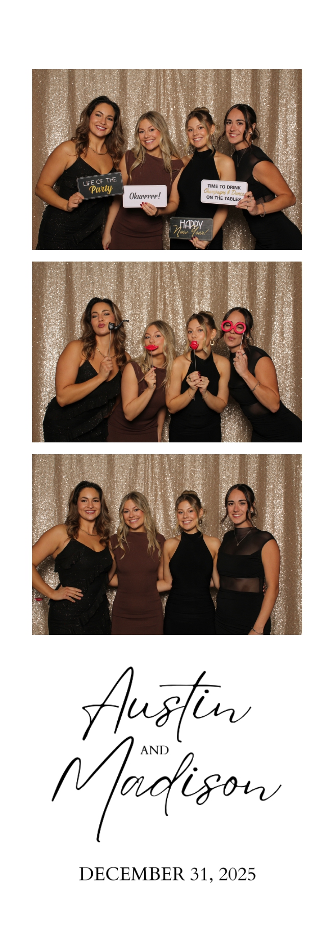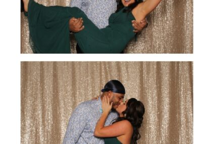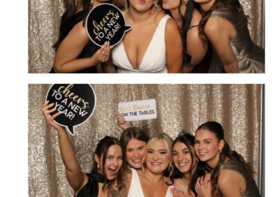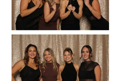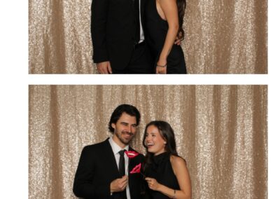 Guests enjoyed capturing memories at the interactive photo booth, featuring 2X6 custom photo strips and a stunning champagne sequin backdrop that added a soft, elegant glow to every photo. The photo experience became a highlight of the night, giving everyone beautiful keepsakes from a celebration filled with romance, joy, and new beginnings.