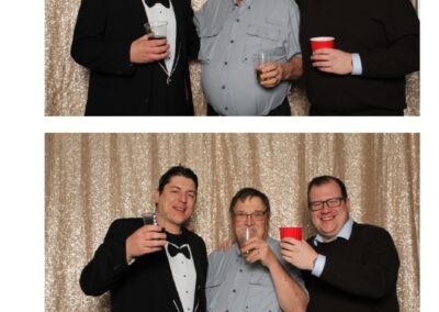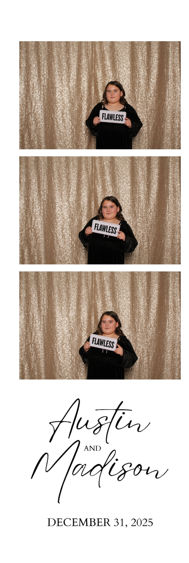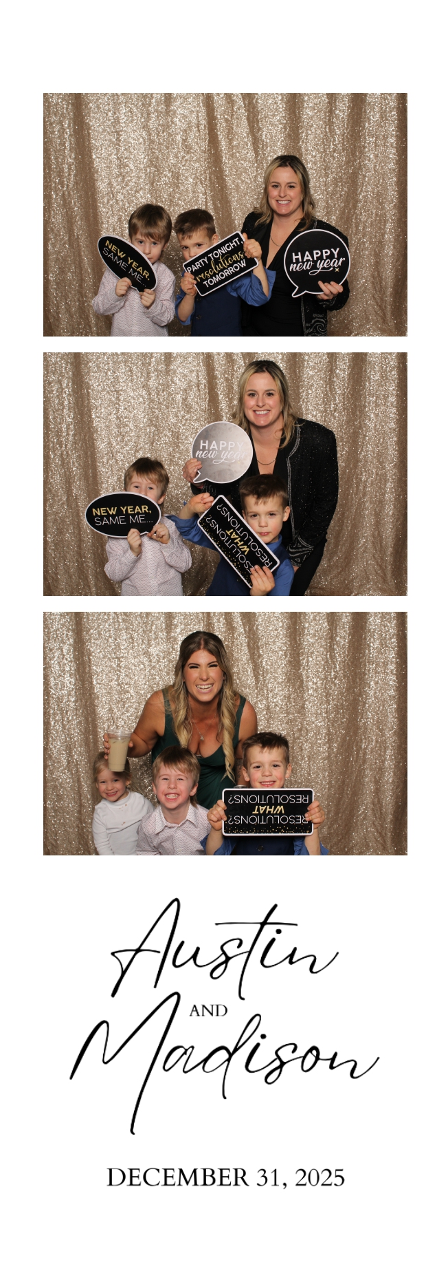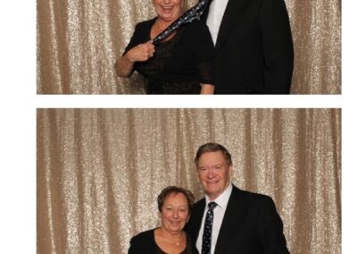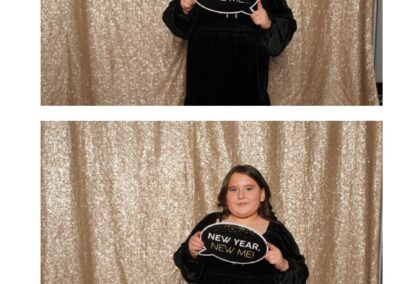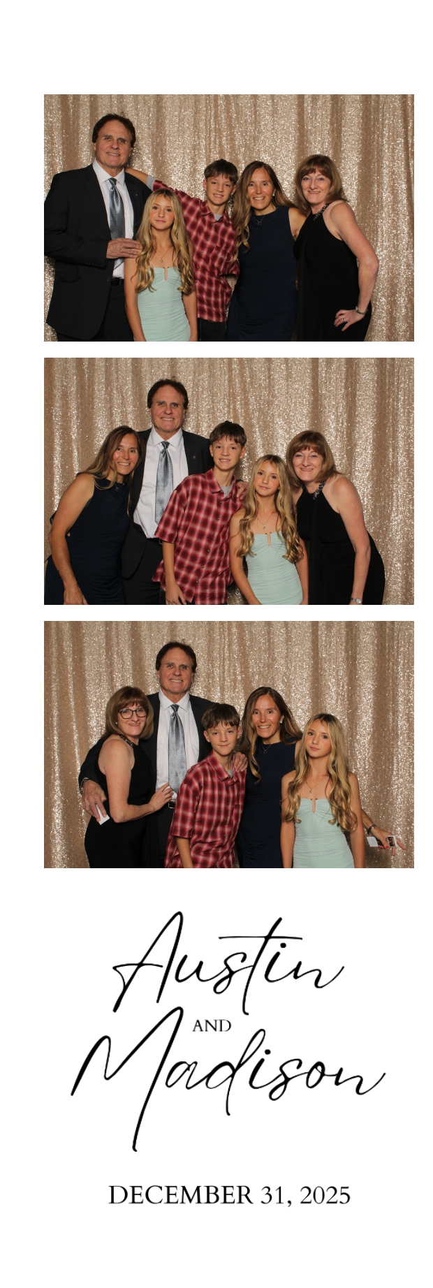 Guests enjoyed capturing memories at the interactive photo booth, featuring 2X6 custom photo strips and a stunning champagne sequin backdrop that added a soft, elegant glow to every photo. The photo experience became a highlight of the night, giving everyone beautiful keepsakes from a celebration filled with romance, joy, and new beginnings.