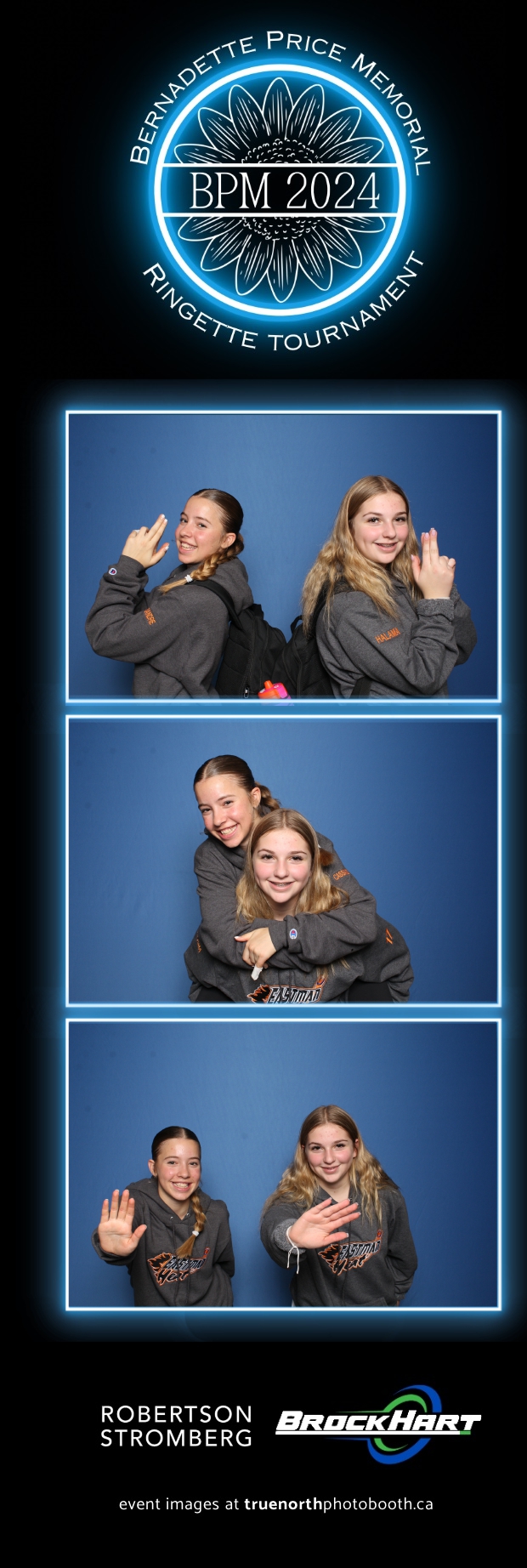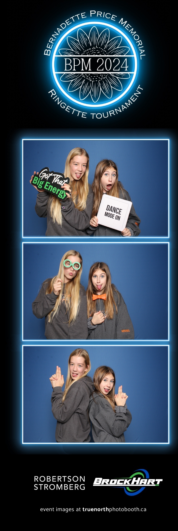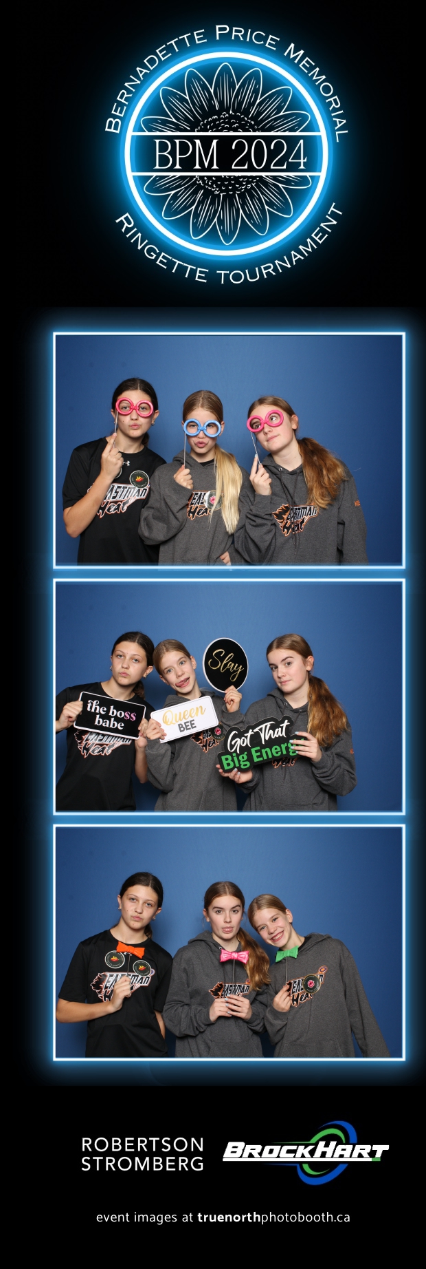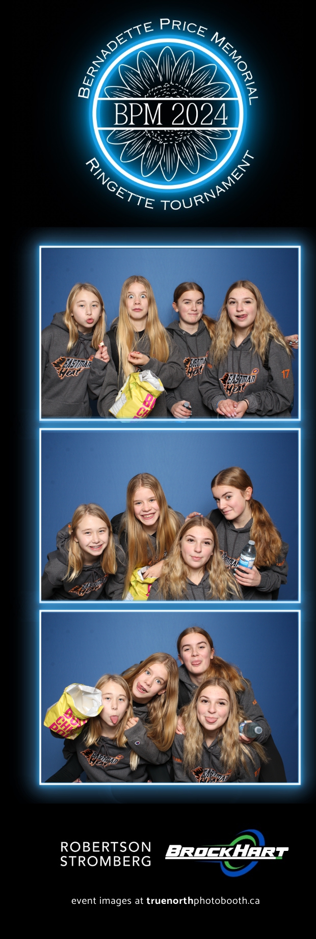 True North Photo Booth was ecstatic to be part of the action, providing a fun way for players and attendees to capture the moment with our 2X6 custom photo strip featuring a sleek blue pillow backdrop. The booth was a hit as everyone took turns capturing smiles, team pride, and tournament memories to bring home. It was fantastic to see participants and their families create lasting keepsakes while honoring Bernadette’s legacy. We’re so proud to have been part of this amazing tournament, adding a bit of extra excitement and joy to an already incredible event!