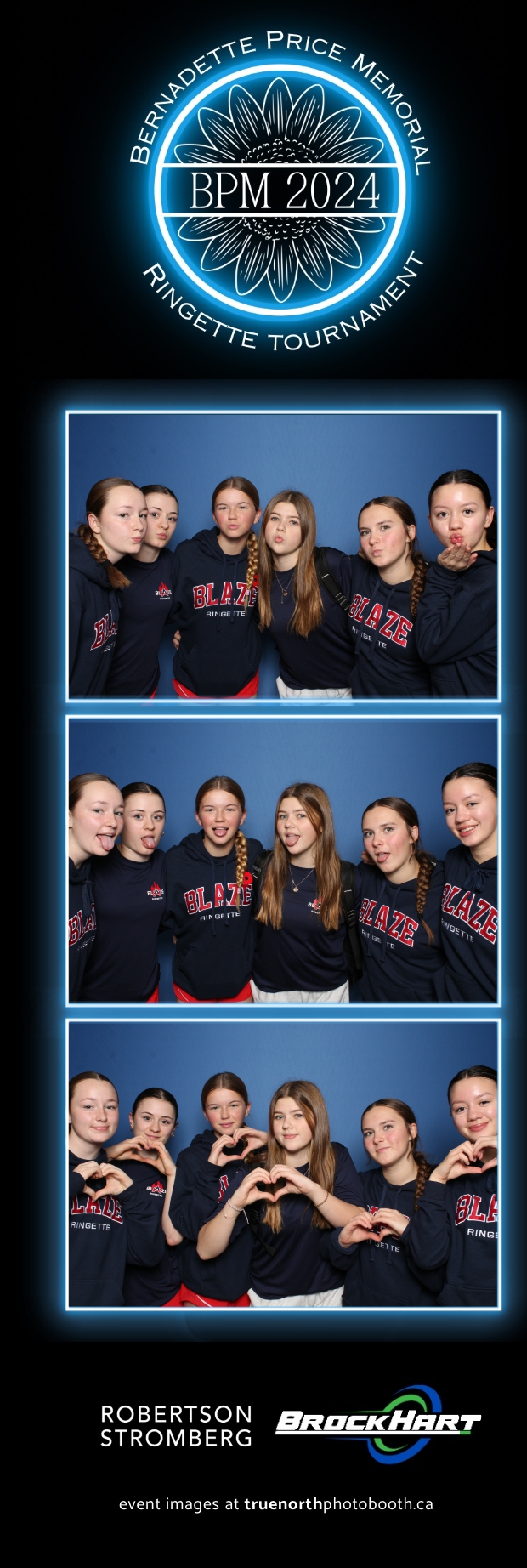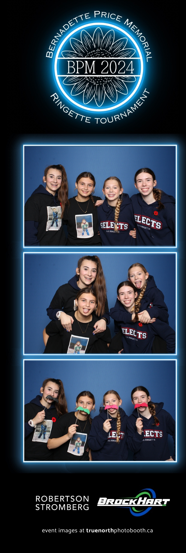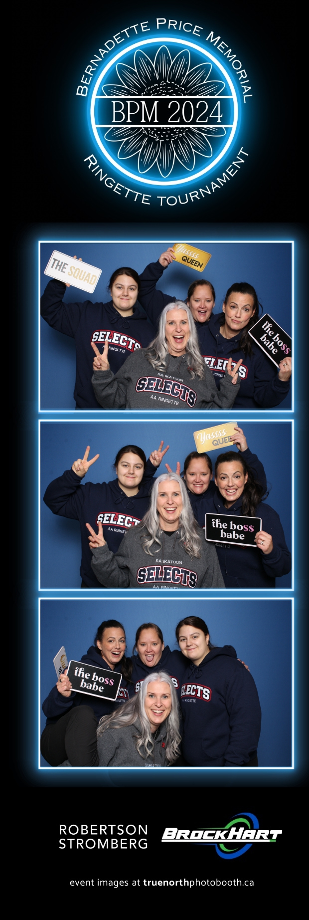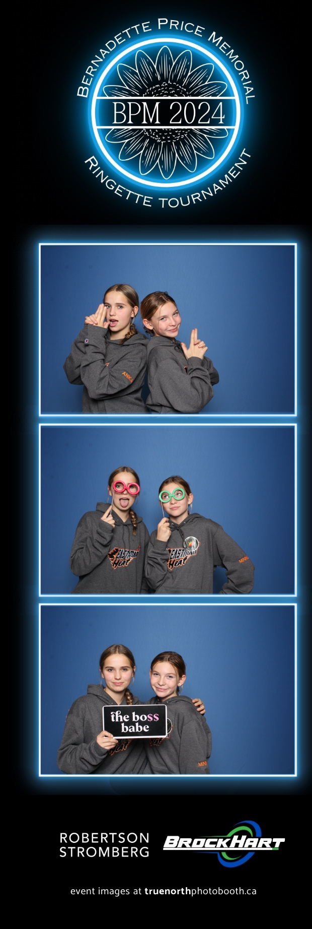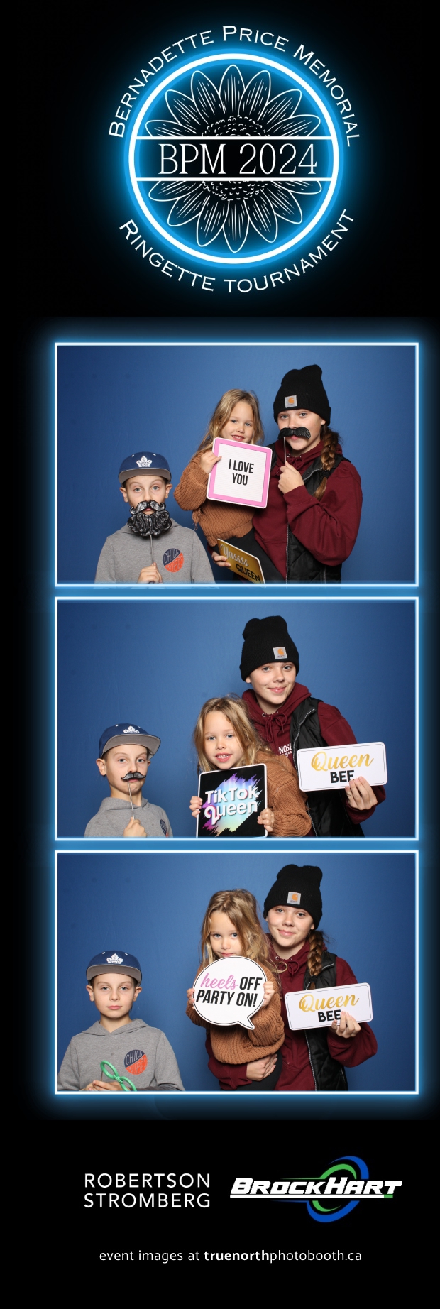 True North Photo Booth was ecstatic to be part of the action, providing a fun way for players and attendees to capture the moment with our 2X6 custom photo strip featuring a sleek blue pillow backdrop. The booth was a hit as everyone took turns capturing smiles, team pride, and tournament memories to bring home. It was fantastic to see participants and their families create lasting keepsakes while honoring Bernadette’s legacy. We’re so proud to have been part of this amazing tournament, adding a bit of extra excitement and joy to an already incredible event!