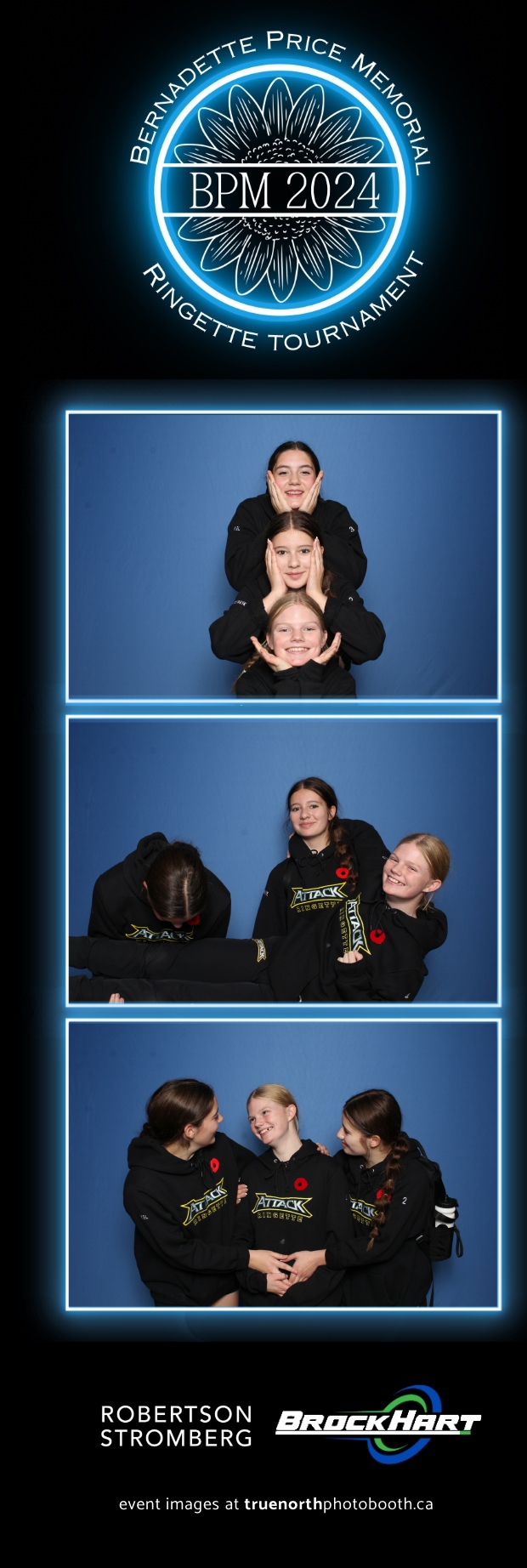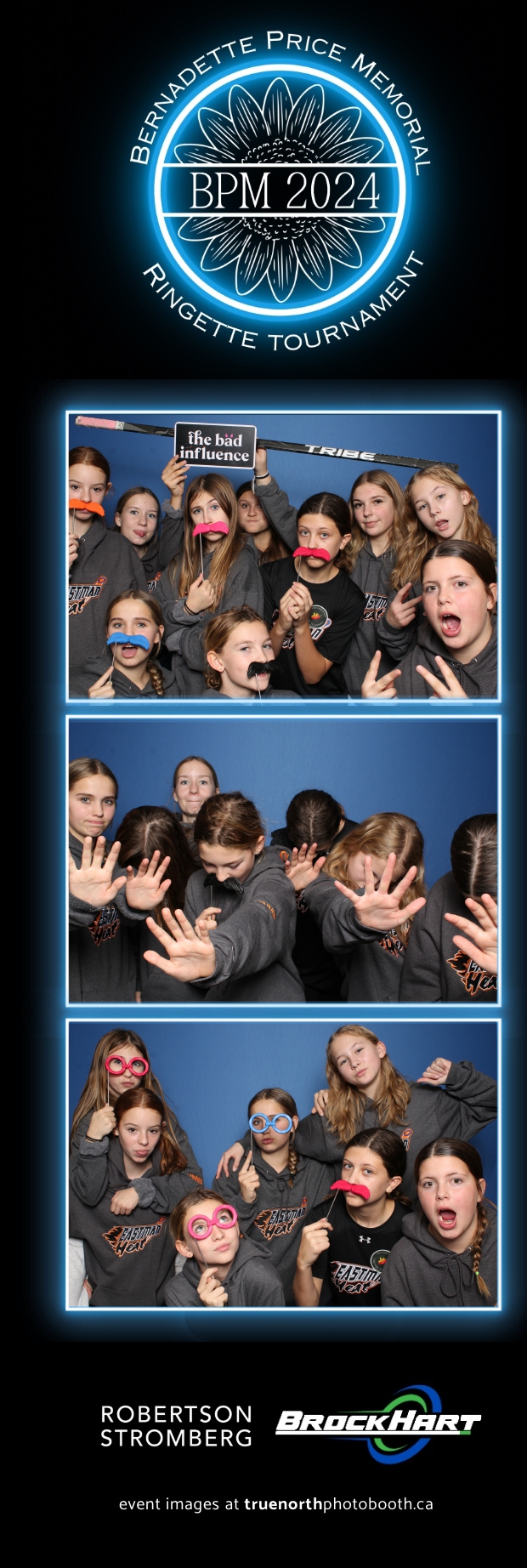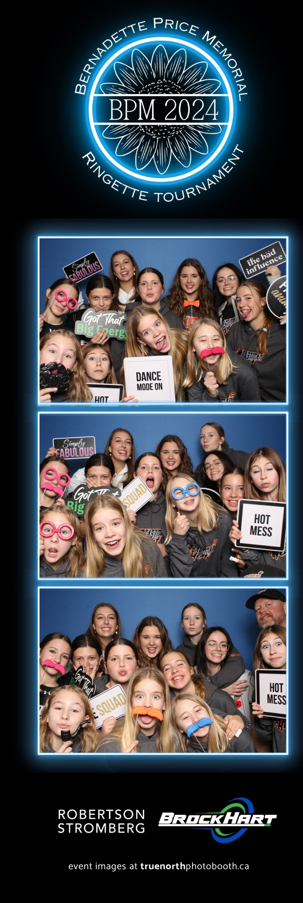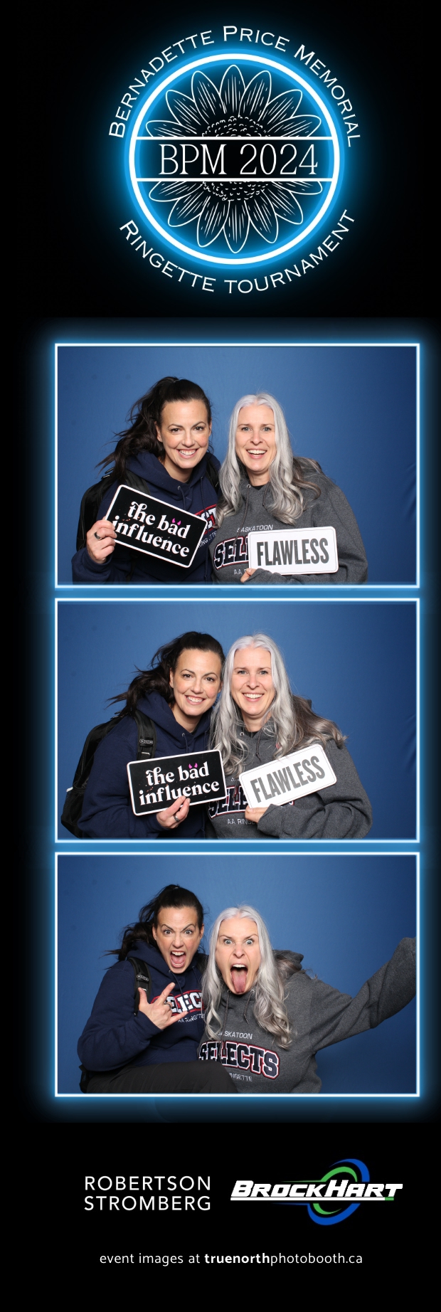True North Photo Booth was ecstatic to be part of the action, providing a fun way for players and attendees to capture the moment with our 2X6 custom photo strip featuring a sleek blue pillow backdrop. The booth was a hit as everyone took turns capturing smiles, team pride, and tournament memories to bring home. It was fantastic to see participants and their families create lasting keepsakes while honoring Bernadette’s legacy. We’re so proud to have been part of this amazing tournament, adding a bit of extra excitement and joy to an already incredible event!