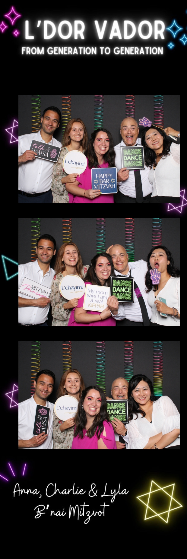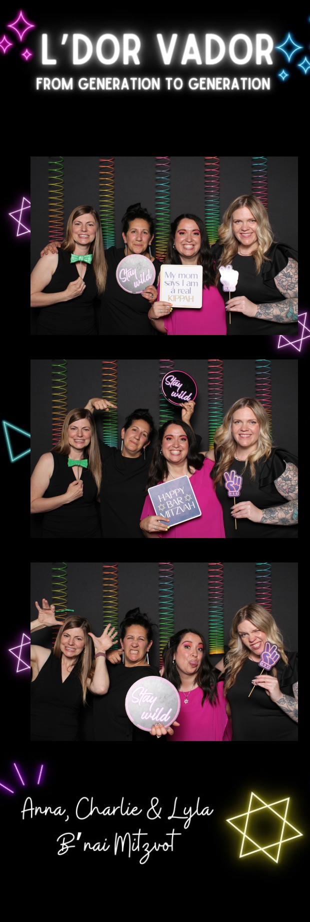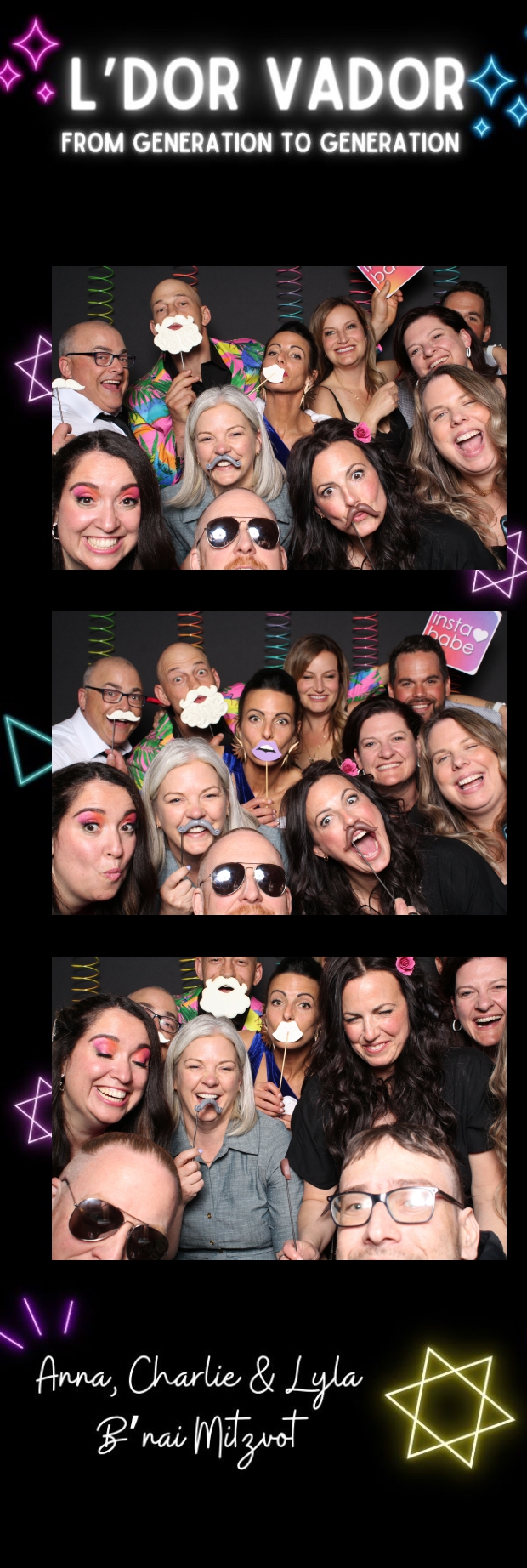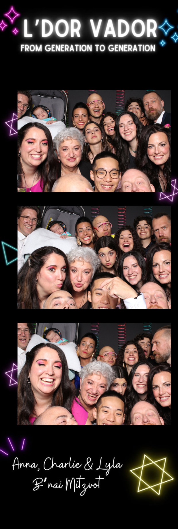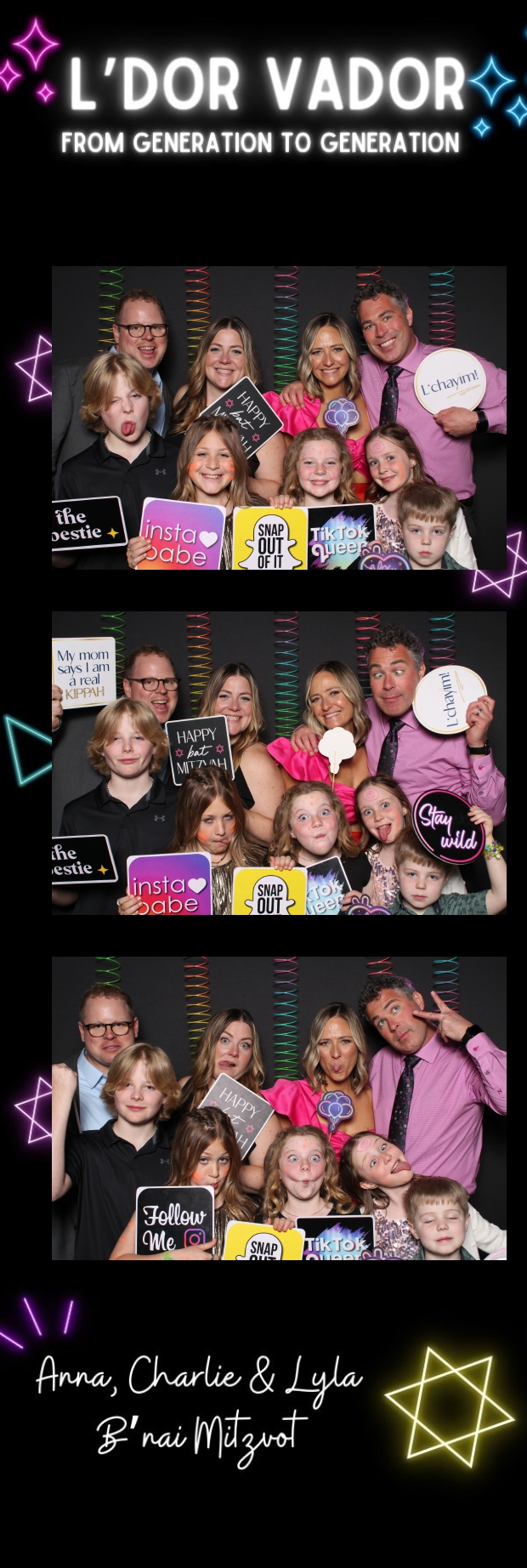 Guests couldn’t get enough of the photo booth experience, snapping countless photos and creating lasting memories. True North Photo Booth’s sleek and professional service ensured that everyone left with a personalized keepsake, adding a special touch to the celebration. The custom 2X6 photo strips were a huge hit, providing unique mementos that guests cherished. The combination of a lively atmosphere, excellent company, and the engaging photo booth made the Lyla, Charlie & Anna B’nai Mitzvot an unforgettable event. True North Photo Booth truly elevated the evening, making it a standout celebration for all attendees.