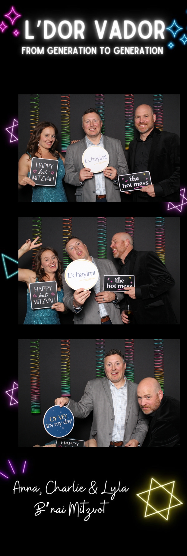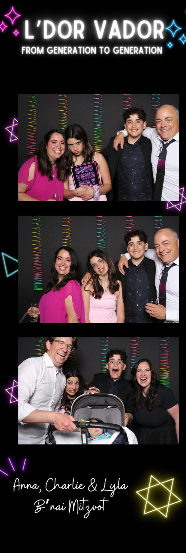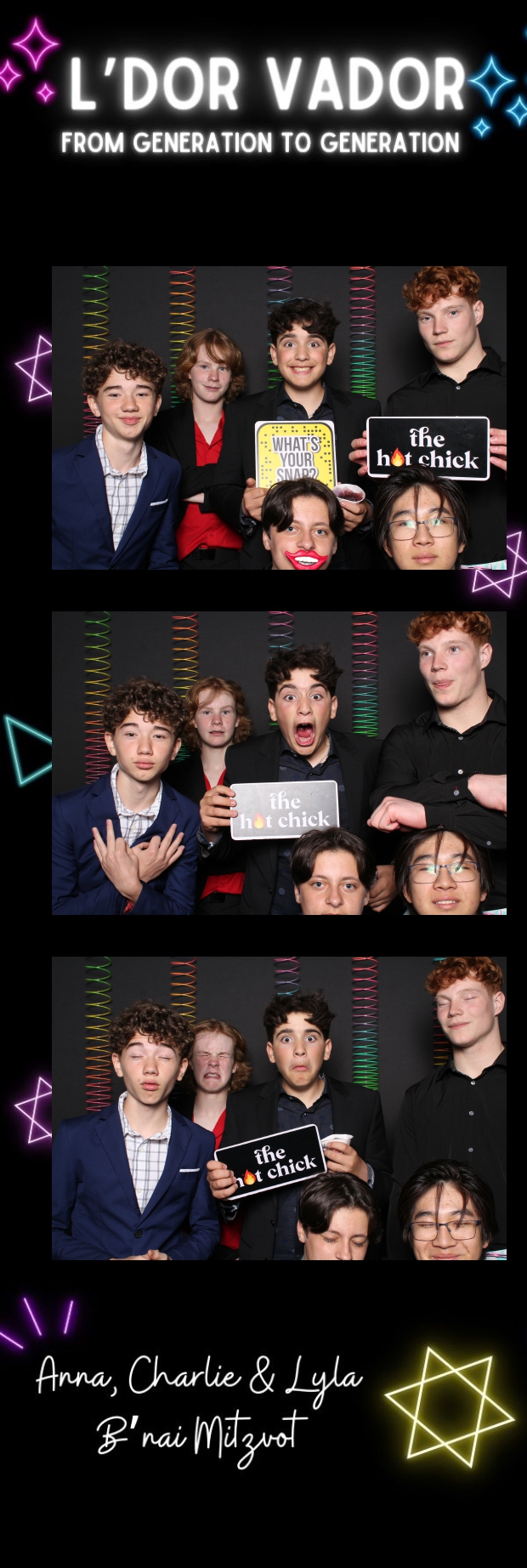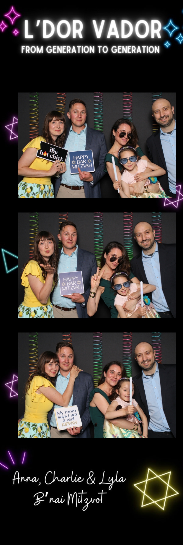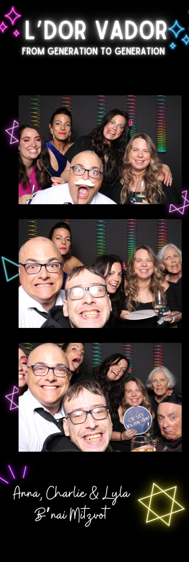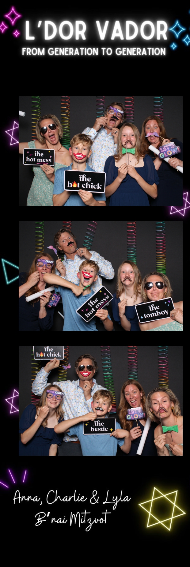 Guests couldn’t get enough of the photo booth experience, snapping countless photos and creating lasting memories. True North Photo Booth’s sleek and professional service ensured that everyone left with a personalized keepsake, adding a special touch to the celebration. The custom 2X6 photo strips were a huge hit, providing unique mementos that guests cherished. The combination of a lively atmosphere, excellent company, and the engaging photo booth made the Lyla, Charlie & Anna B’nai Mitzvot an unforgettable event. True North Photo Booth truly elevated the evening, making it a standout celebration for all attendees.