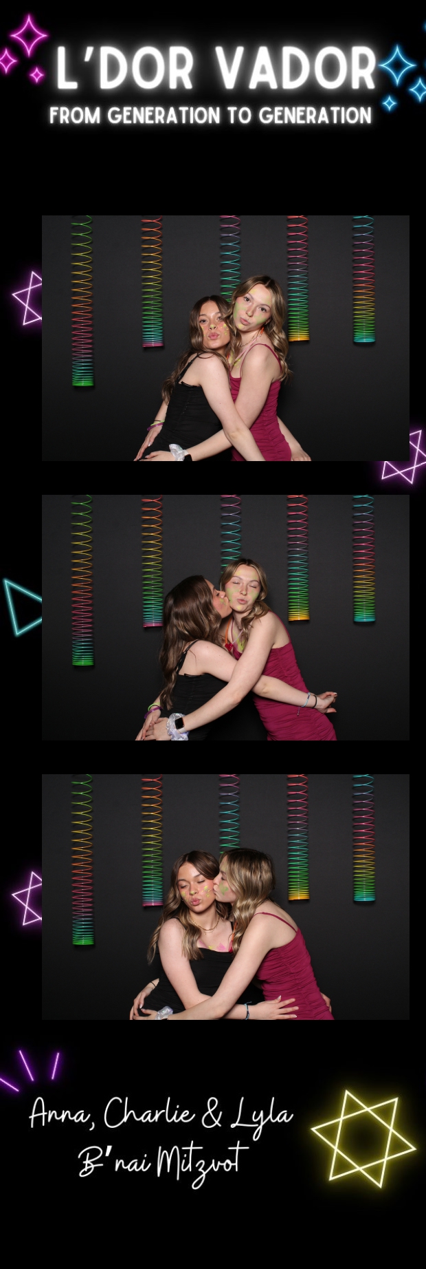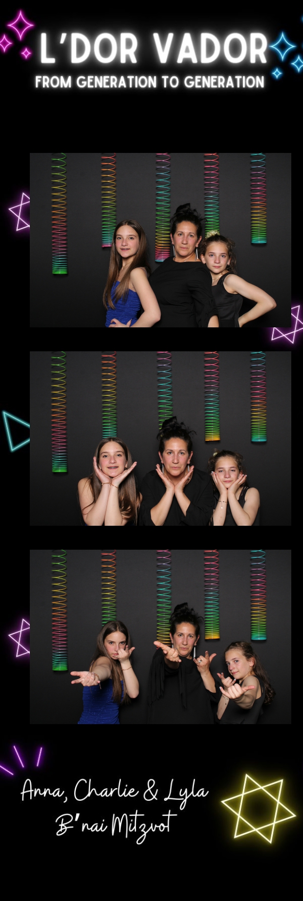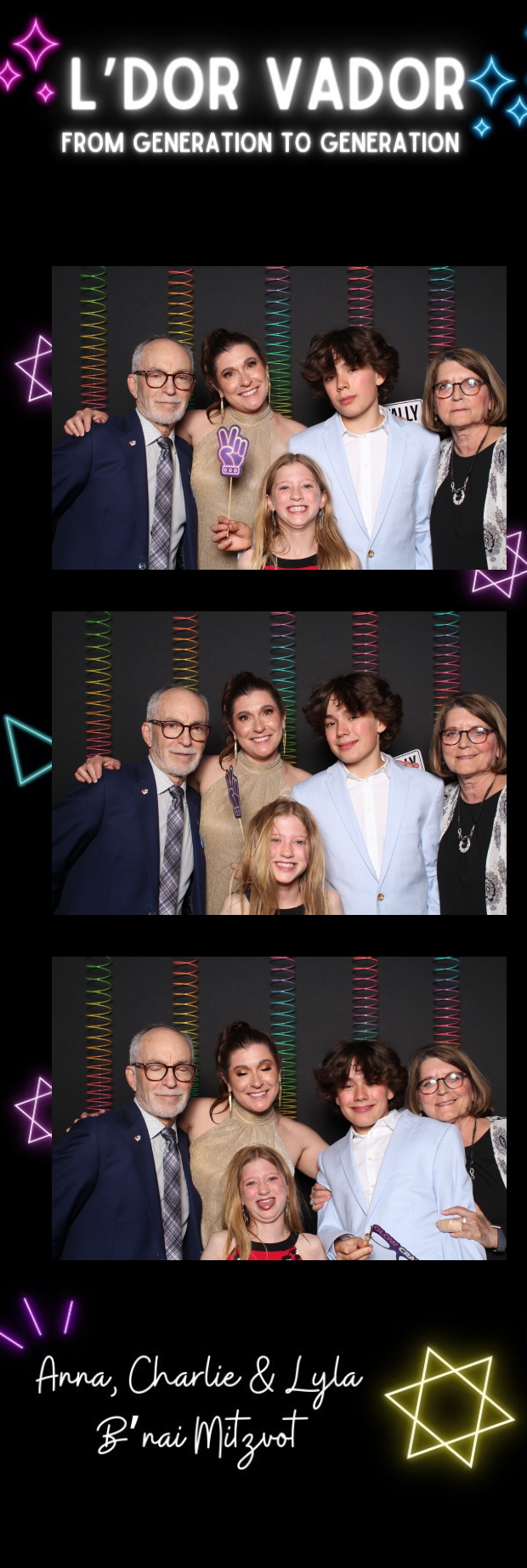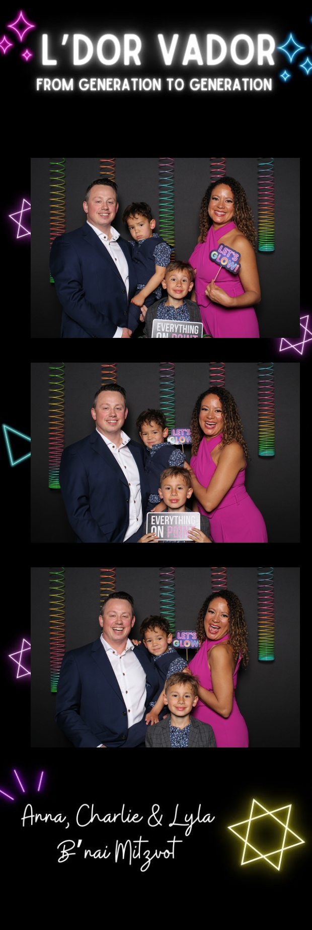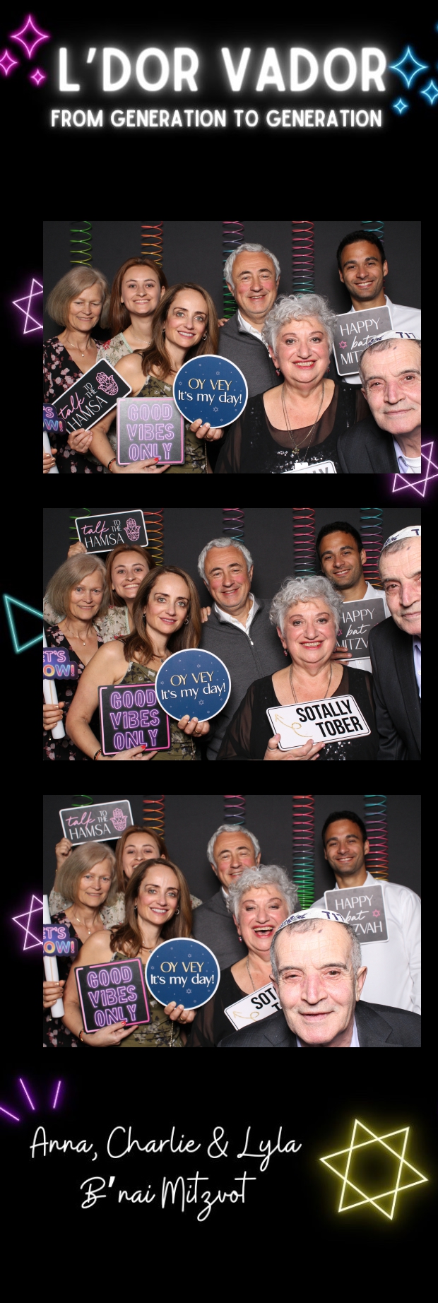 Guests couldn’t get enough of the photo booth experience, snapping countless photos and creating lasting memories. True North Photo Booth’s sleek and professional service ensured that everyone left with a personalized keepsake, adding a special touch to the celebration. The custom 2X6 photo strips were a huge hit, providing unique mementos that guests cherished. The combination of a lively atmosphere, excellent company, and the engaging photo booth made the Lyla, Charlie & Anna B’nai Mitzvot an unforgettable event. True North Photo Booth truly elevated the evening, making it a standout celebration for all attendees.