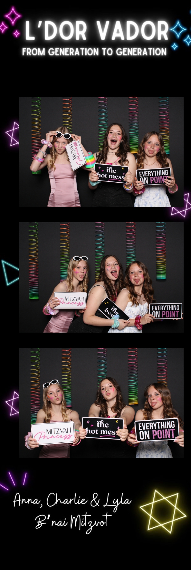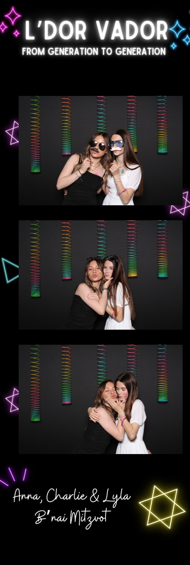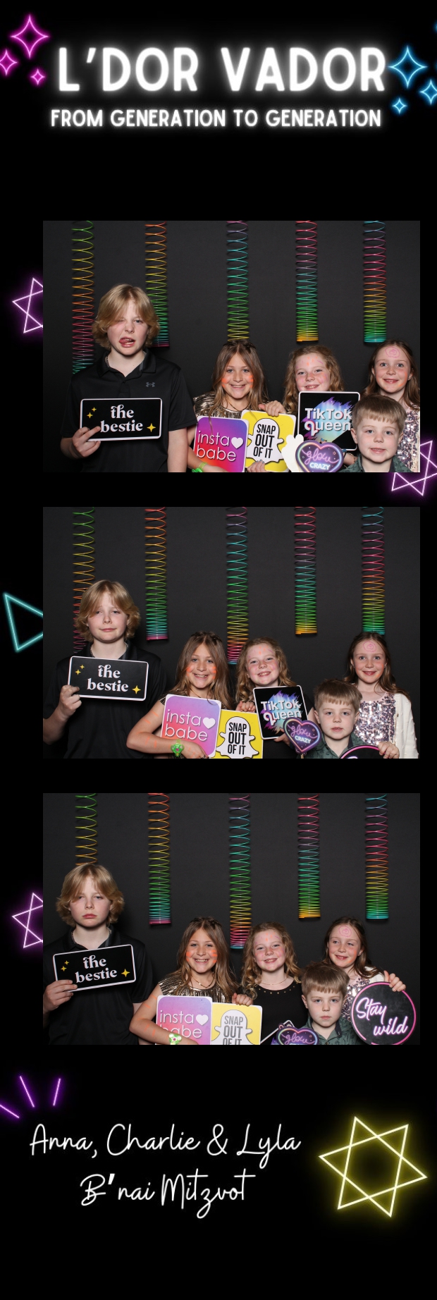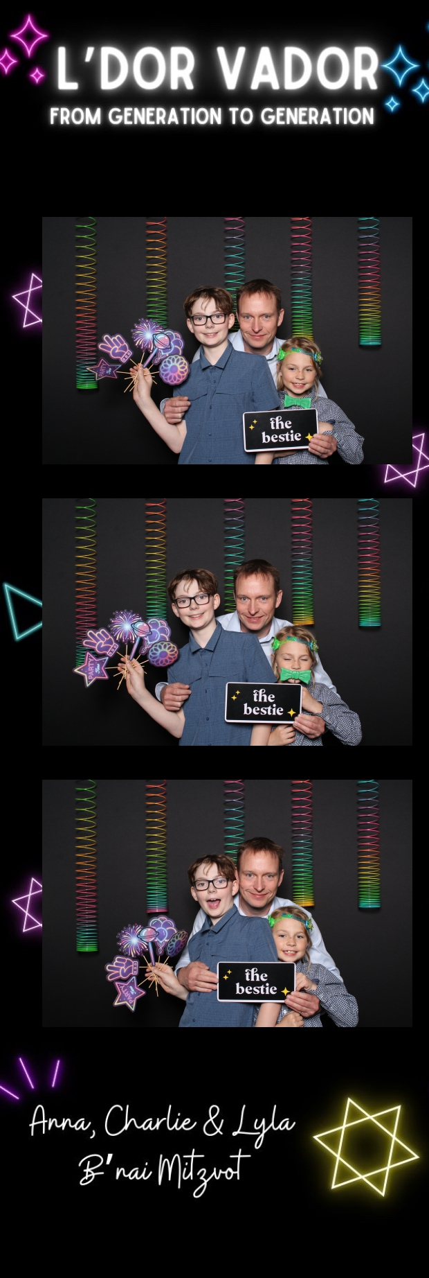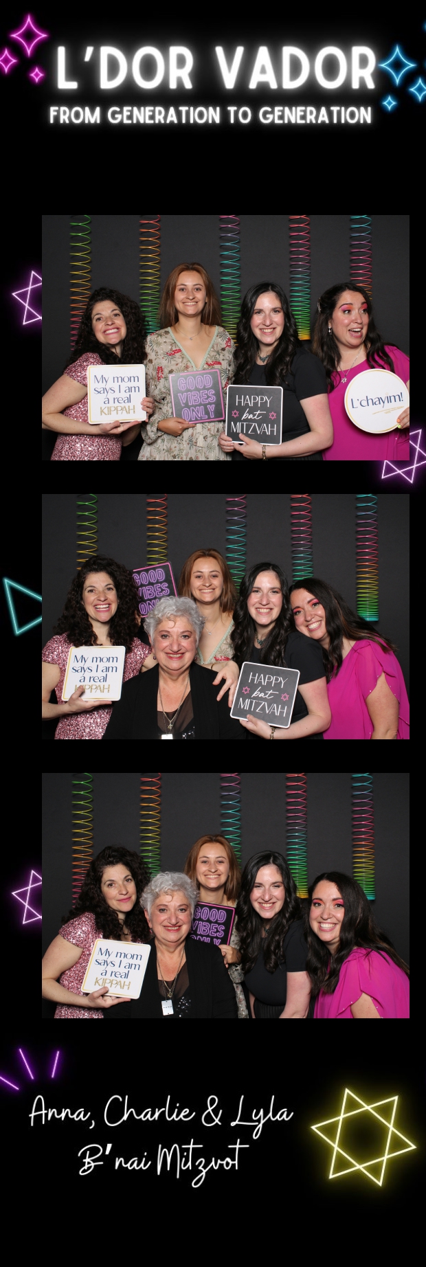 Guests couldn’t get enough of the photo booth experience, snapping countless photos and creating lasting memories. True North Photo Booth’s sleek and professional service ensured that everyone left with a personalized keepsake, adding a special touch to the celebration. The custom 2X6 photo strips were a huge hit, providing unique mementos that guests cherished. The combination of a lively atmosphere, excellent company, and the engaging photo booth made the Lyla, Charlie & Anna B’nai Mitzvot an unforgettable event. True North Photo Booth truly elevated the evening, making it a standout celebration for all attendees.