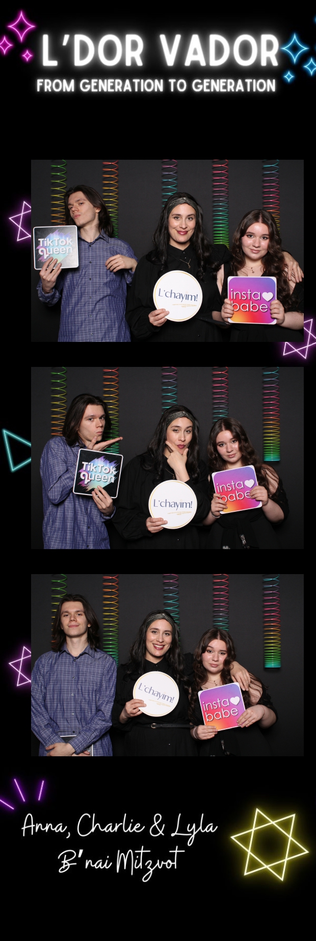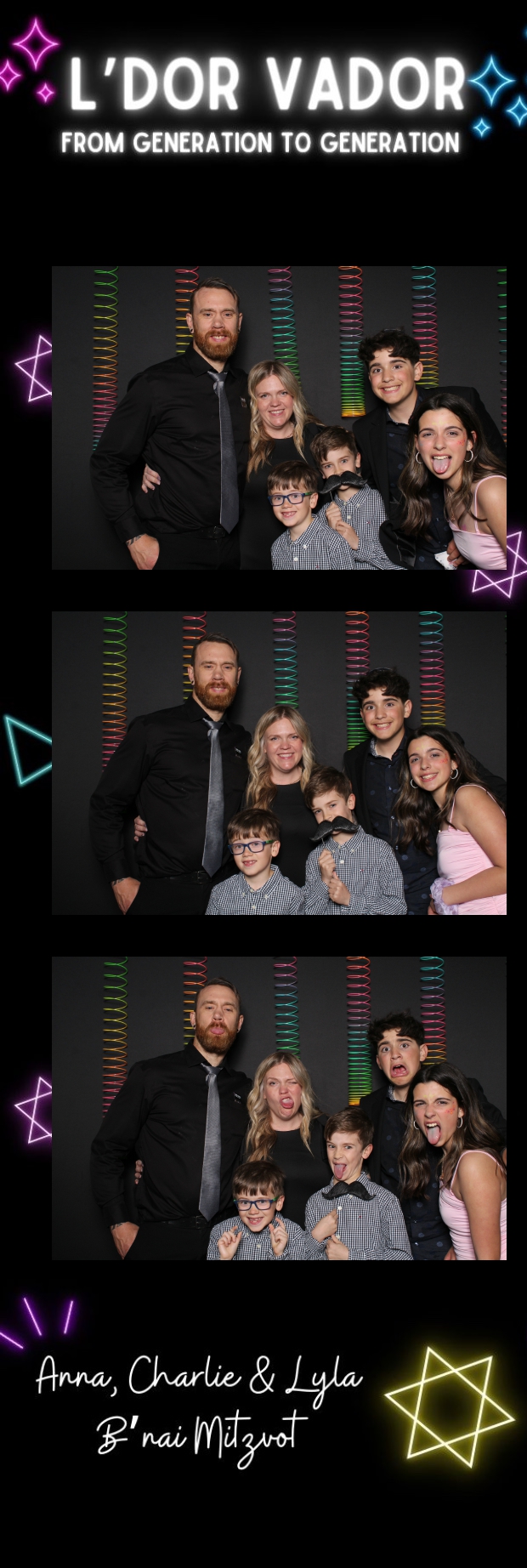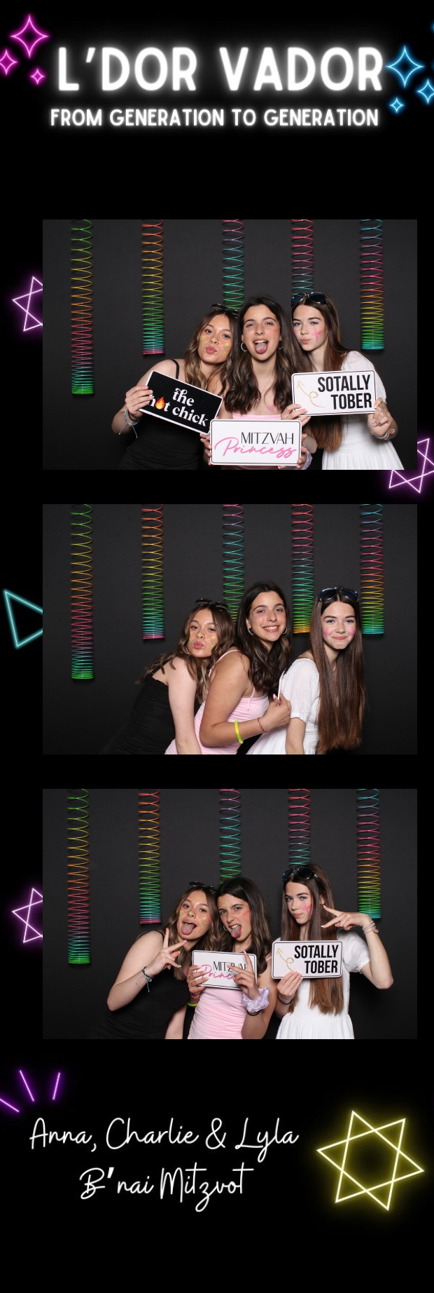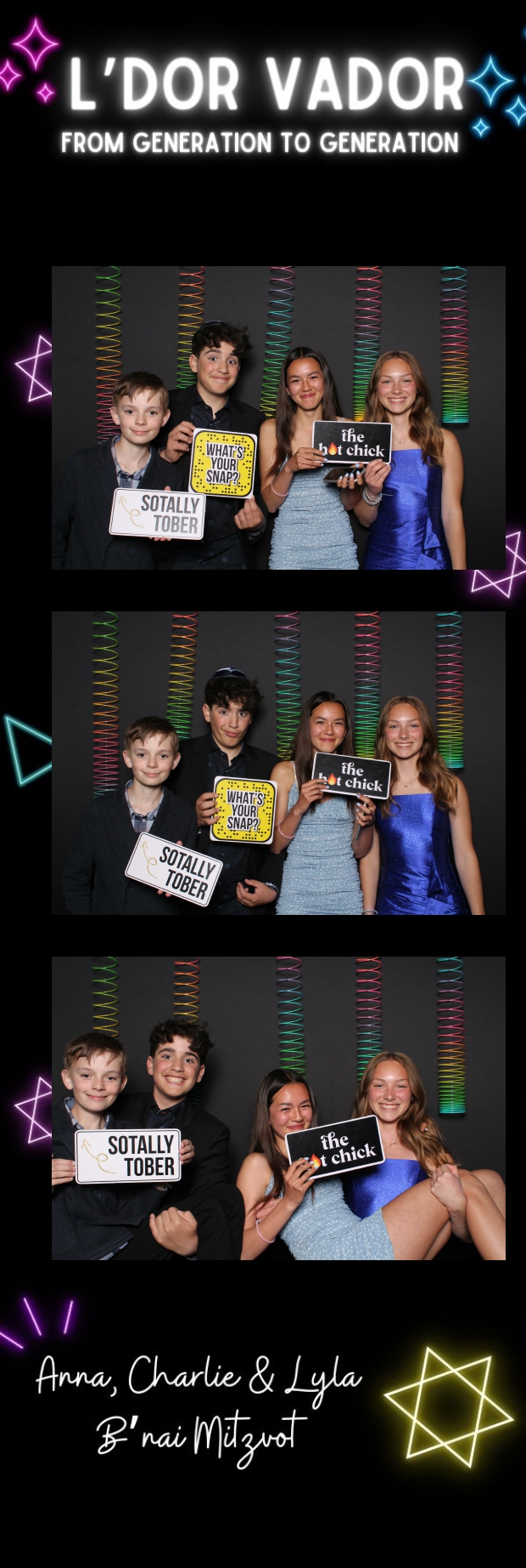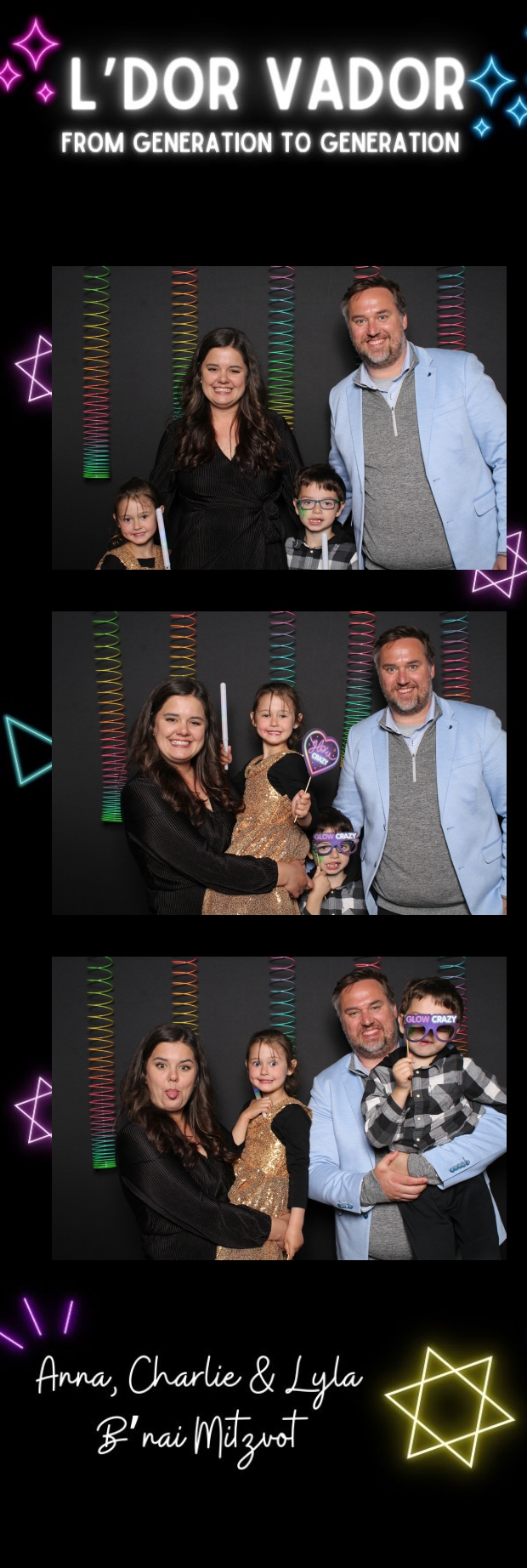 Guests couldn’t get enough of the photo booth experience, snapping countless photos and creating lasting memories. True North Photo Booth’s sleek and professional service ensured that everyone left with a personalized keepsake, adding a special touch to the celebration. The custom 2X6 photo strips were a huge hit, providing unique mementos that guests cherished. The combination of a lively atmosphere, excellent company, and the engaging photo booth made the Lyla, Charlie & Anna B’nai Mitzvot an unforgettable event. True North Photo Booth truly elevated the evening, making it a standout celebration for all attendees.