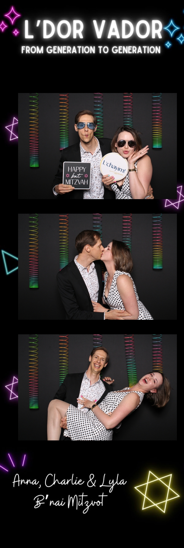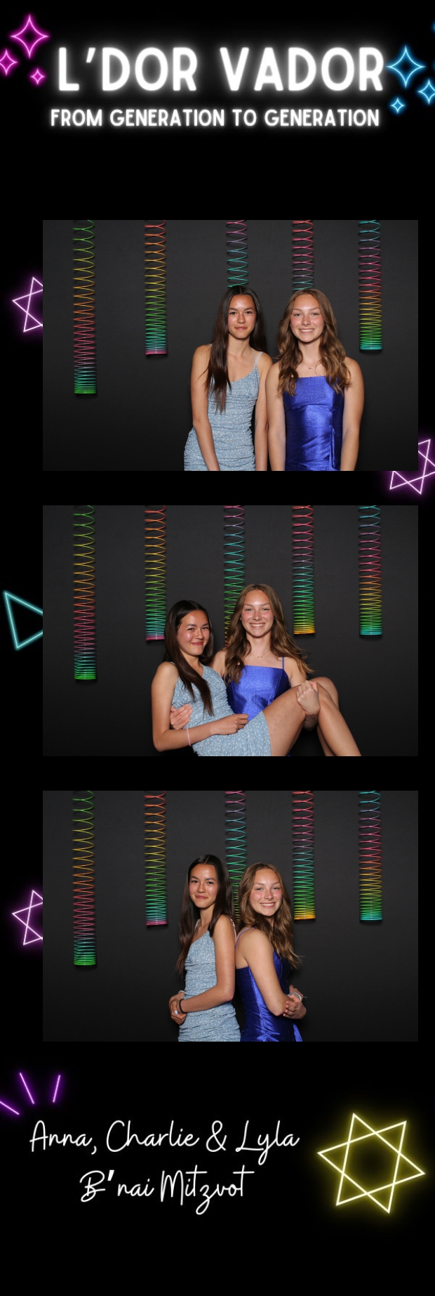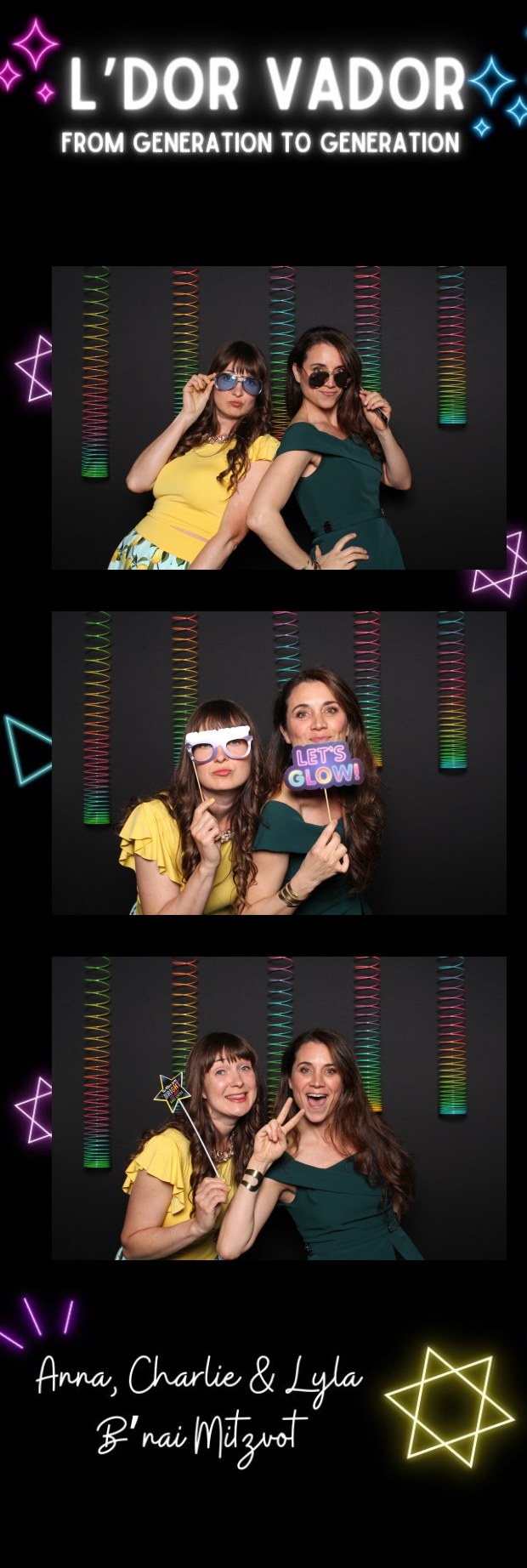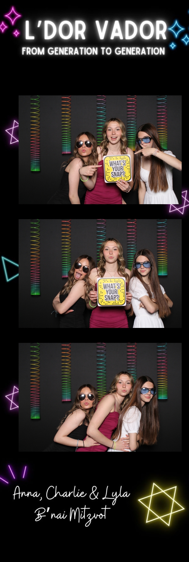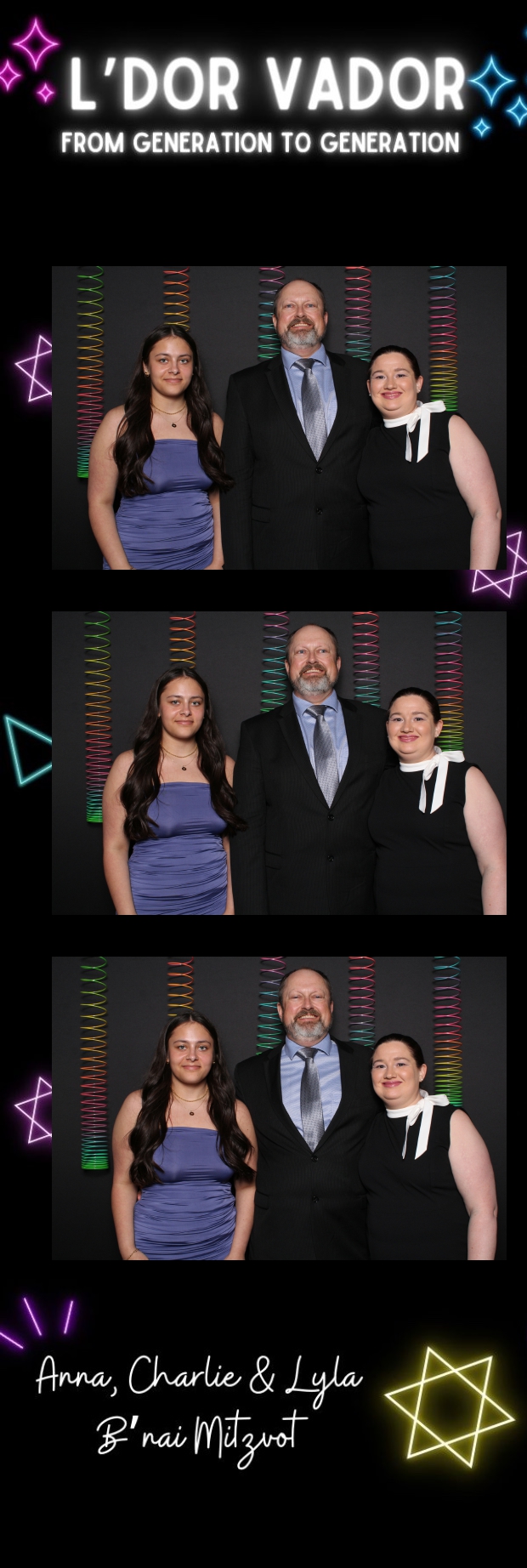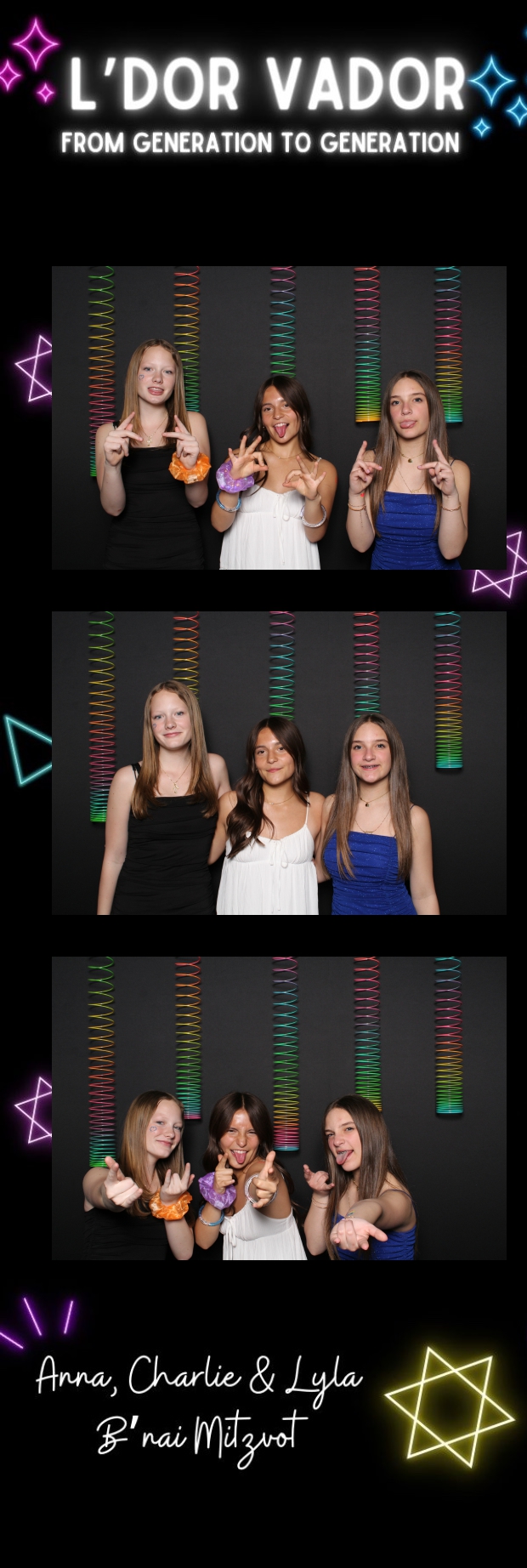 Guests couldn’t get enough of the photo booth experience, snapping countless photos and creating lasting memories. True North Photo Booth’s sleek and professional service ensured that everyone left with a personalized keepsake, adding a special touch to the celebration. The custom 2X6 photo strips were a huge hit, providing unique mementos that guests cherished. The combination of a lively atmosphere, excellent company, and the engaging photo booth made the Lyla, Charlie & Anna B’nai Mitzvot an unforgettable event. True North Photo Booth truly elevated the evening, making it a standout celebration for all attendees.