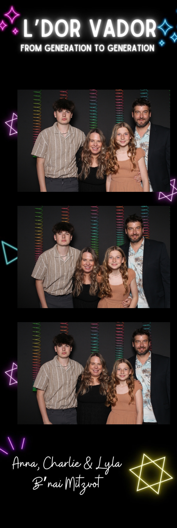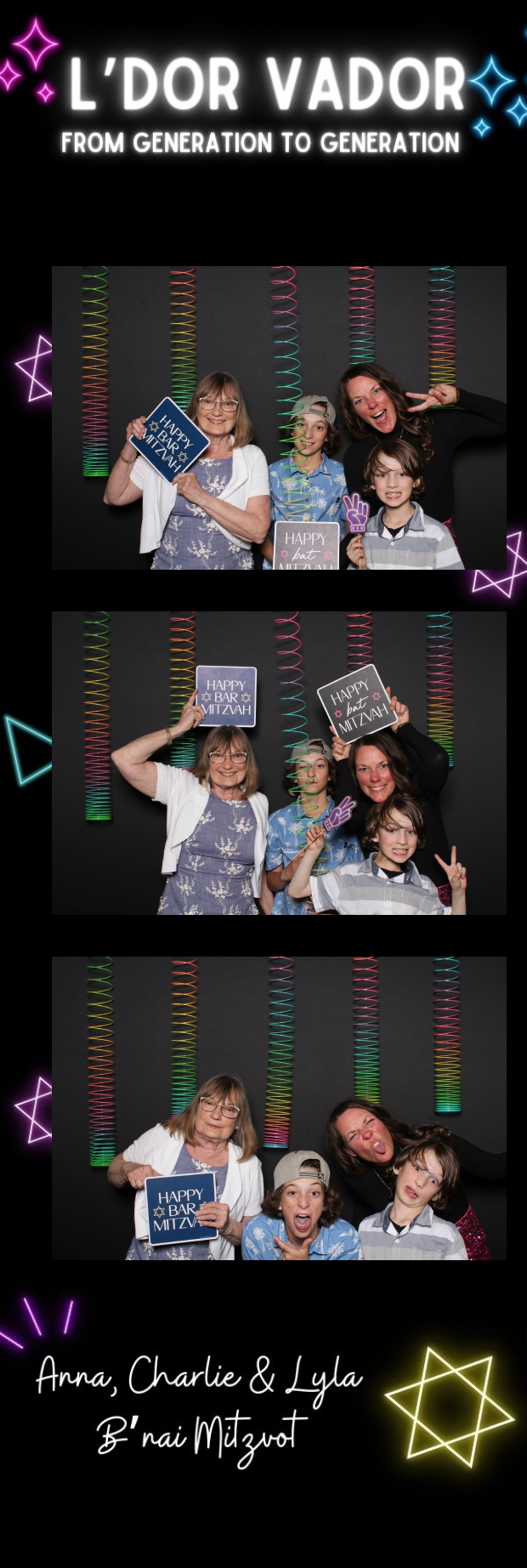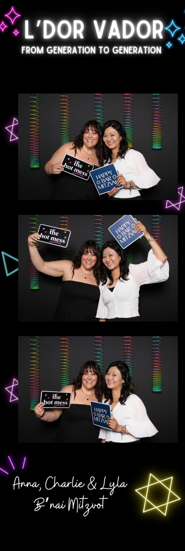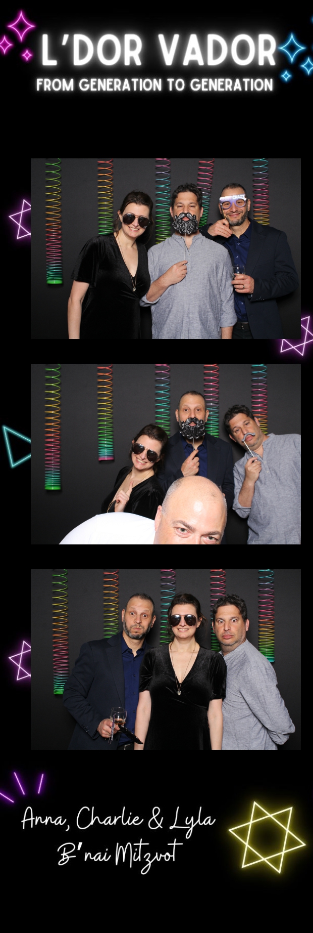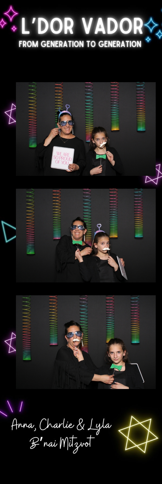 Guests couldn’t get enough of the photo booth experience, snapping countless photos and creating lasting memories. True North Photo Booth’s sleek and professional service ensured that everyone left with a personalized keepsake, adding a special touch to the celebration. The custom 2X6 photo strips were a huge hit, providing unique mementos that guests cherished. The combination of a lively atmosphere, excellent company, and the engaging photo booth made the Lyla, Charlie & Anna B’nai Mitzvot an unforgettable event. True North Photo Booth truly elevated the evening, making it a standout celebration for all attendees.