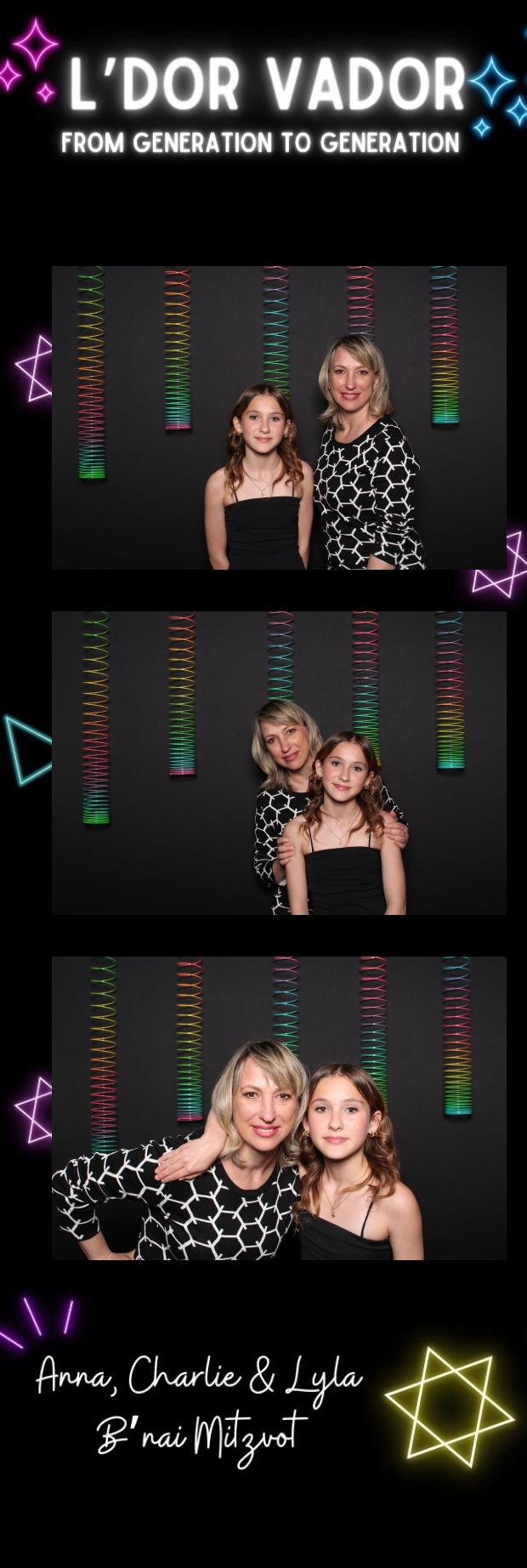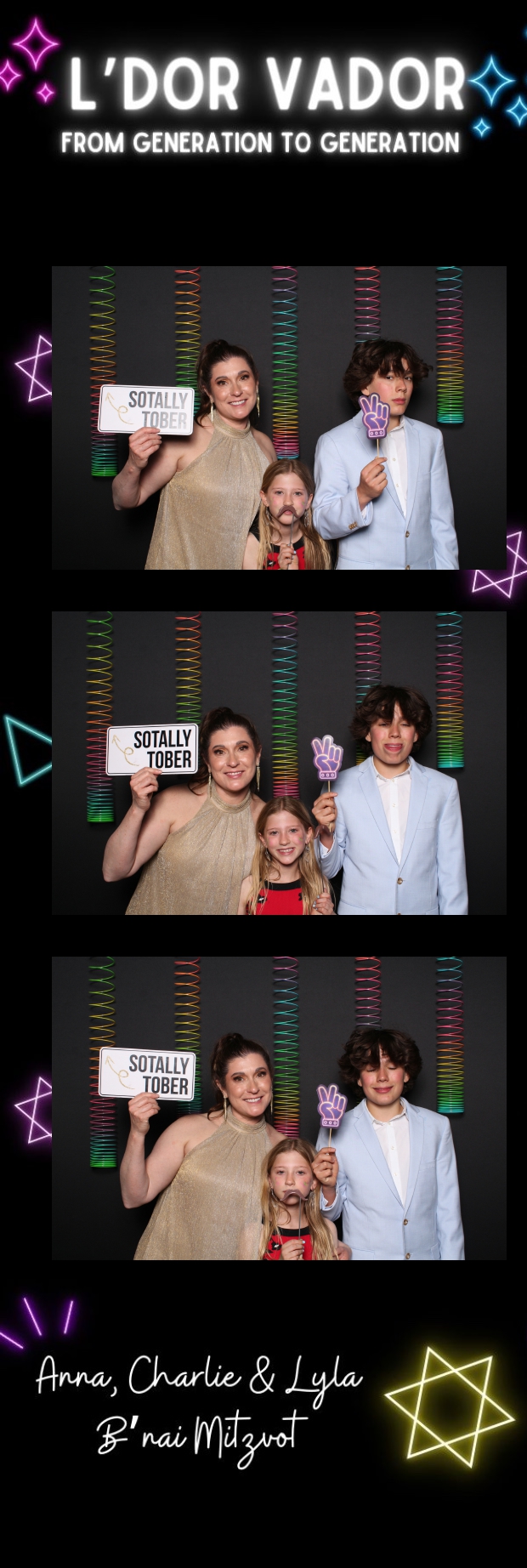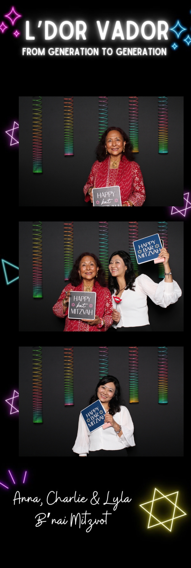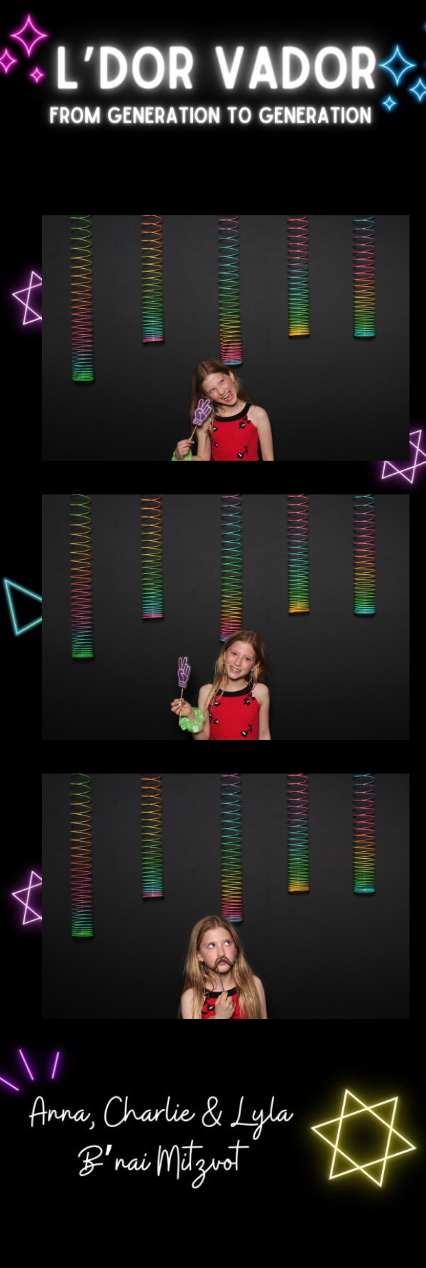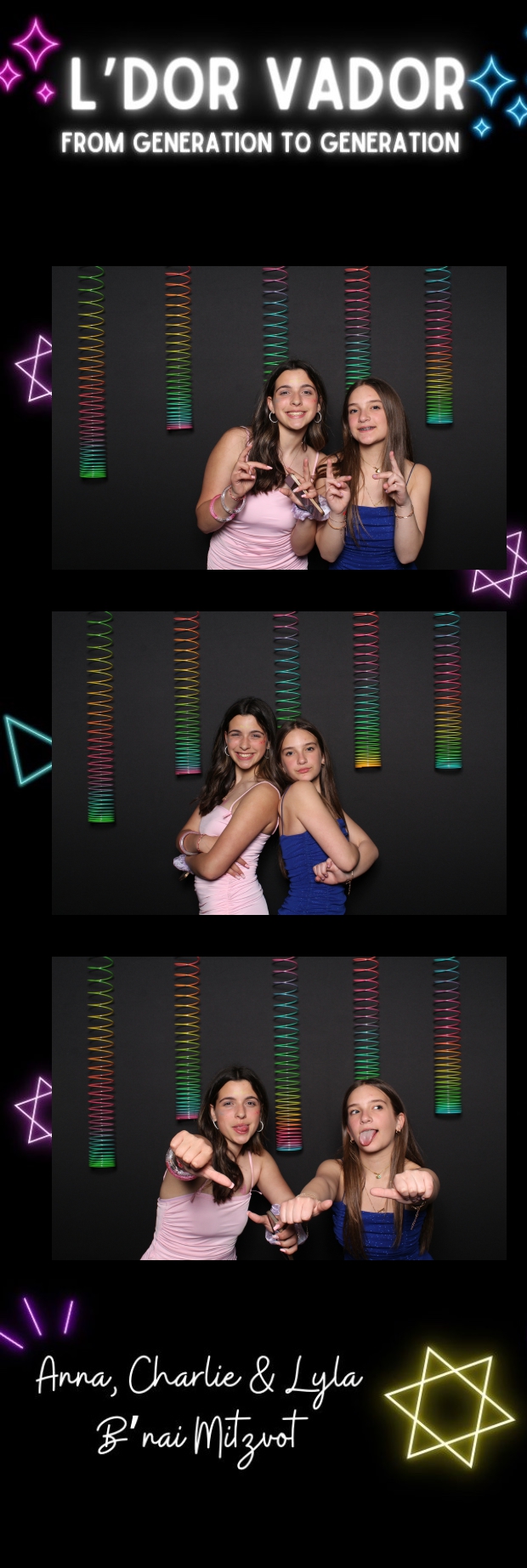 Guests couldn’t get enough of the photo booth experience, snapping countless photos and creating lasting memories. True North Photo Booth’s sleek and professional service ensured that everyone left with a personalized keepsake, adding a special touch to the celebration. The custom 2X6 photo strips were a huge hit, providing unique mementos that guests cherished. The combination of a lively atmosphere, excellent company, and the engaging photo booth made the Lyla, Charlie & Anna B’nai Mitzvot an unforgettable event. True North Photo Booth truly elevated the evening, making it a standout celebration for all attendees.