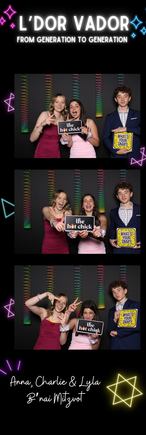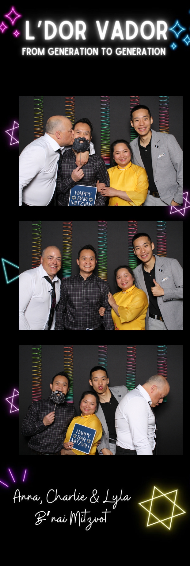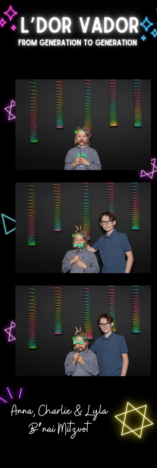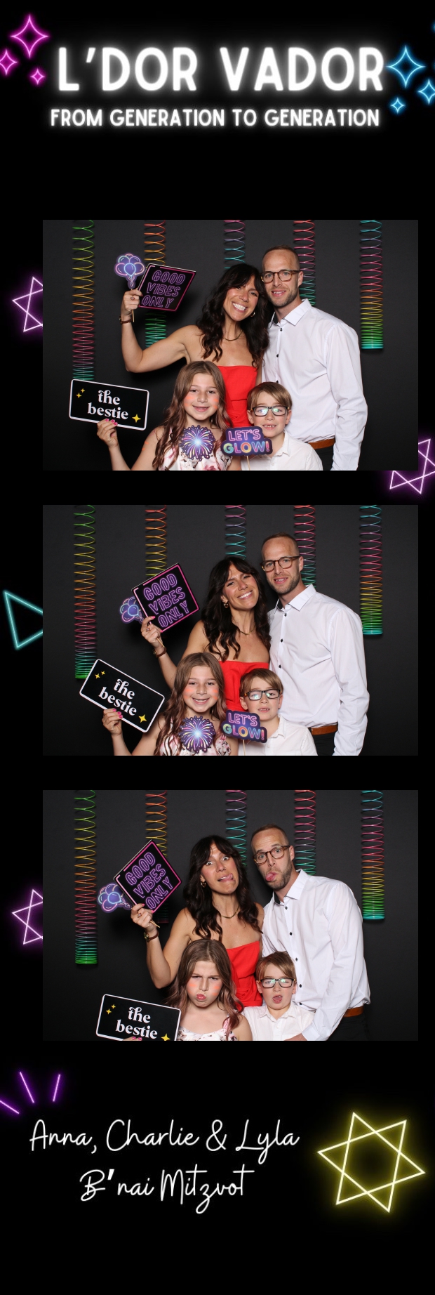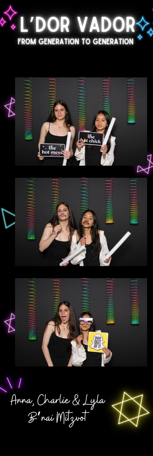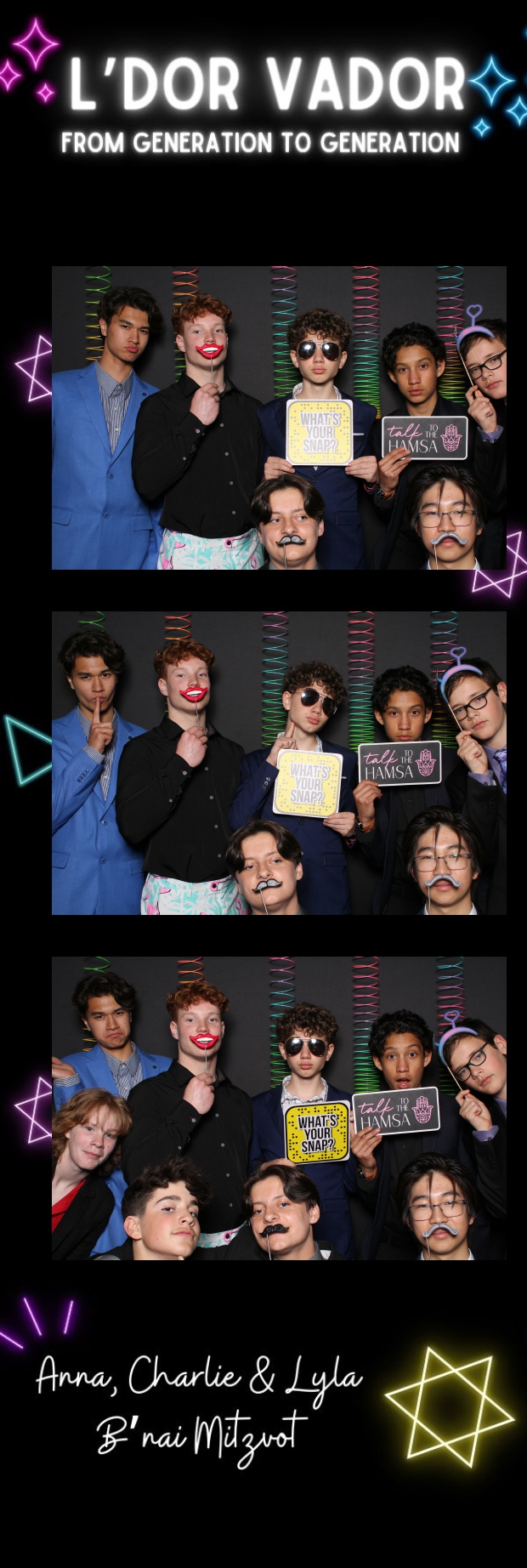 Guests couldn’t get enough of the photo booth experience, snapping countless photos and creating lasting memories. True North Photo Booth’s sleek and professional service ensured that everyone left with a personalized keepsake, adding a special touch to the celebration. The custom 2X6 photo strips were a huge hit, providing unique mementos that guests cherished. The combination of a lively atmosphere, excellent company, and the engaging photo booth made the Lyla, Charlie & Anna B’nai Mitzvot an unforgettable event. True North Photo Booth truly elevated the evening, making it a standout celebration for all attendees.
