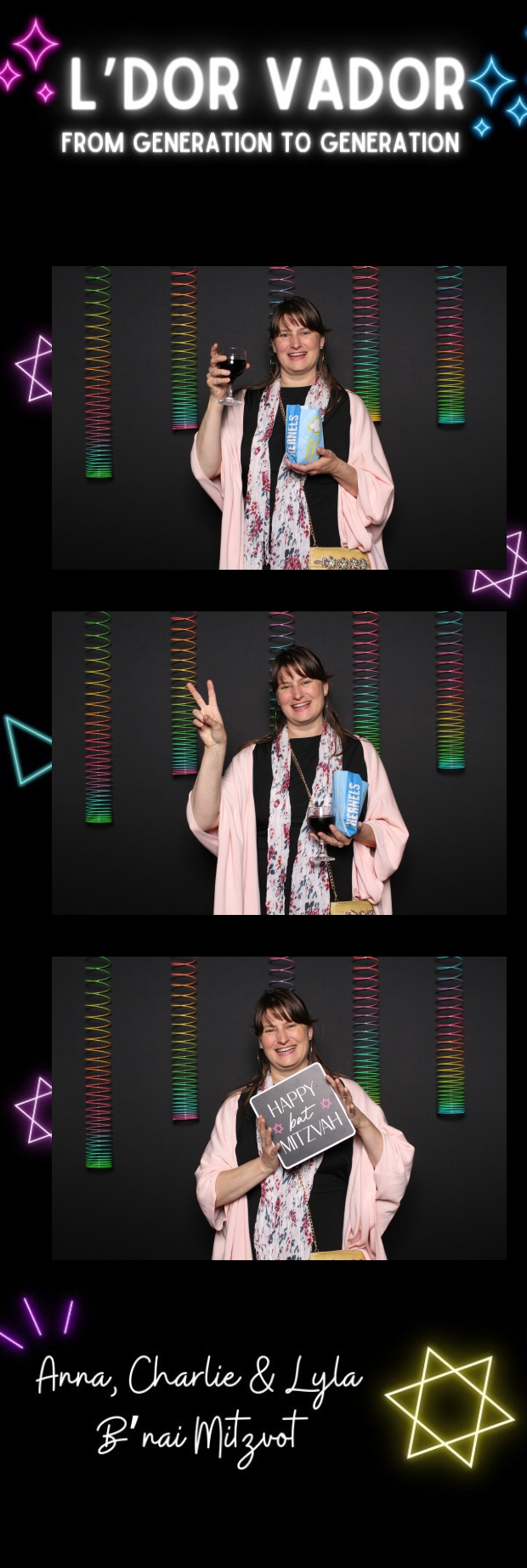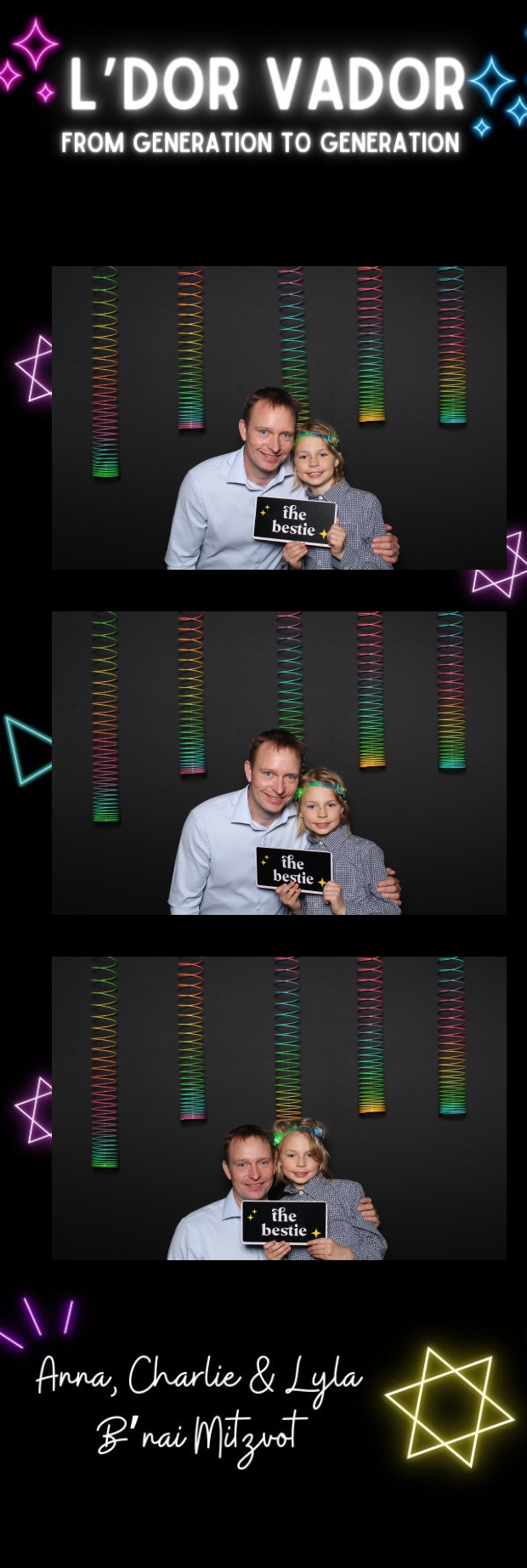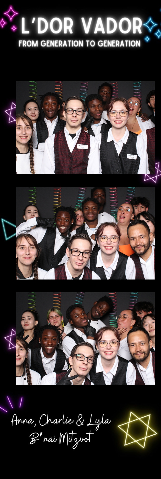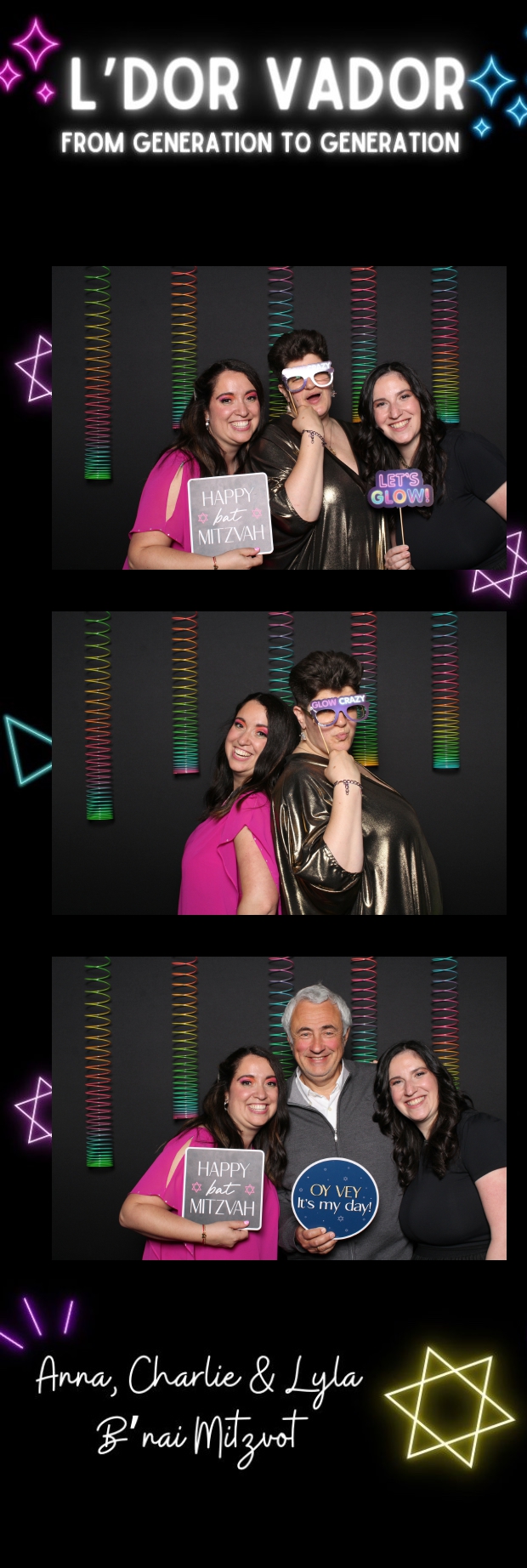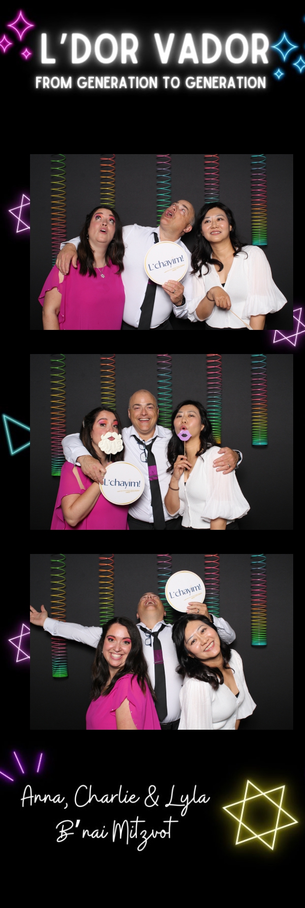 Guests couldn’t get enough of the photo booth experience, snapping countless photos and creating lasting memories. True North Photo Booth’s sleek and professional service ensured that everyone left with a personalized keepsake, adding a special touch to the celebration. The custom 2X6 photo strips were a huge hit, providing unique mementos that guests cherished. The combination of a lively atmosphere, excellent company, and the engaging photo booth made the Lyla, Charlie & Anna B’nai Mitzvot an unforgettable event. True North Photo Booth truly elevated the evening, making it a standout celebration for all attendees.