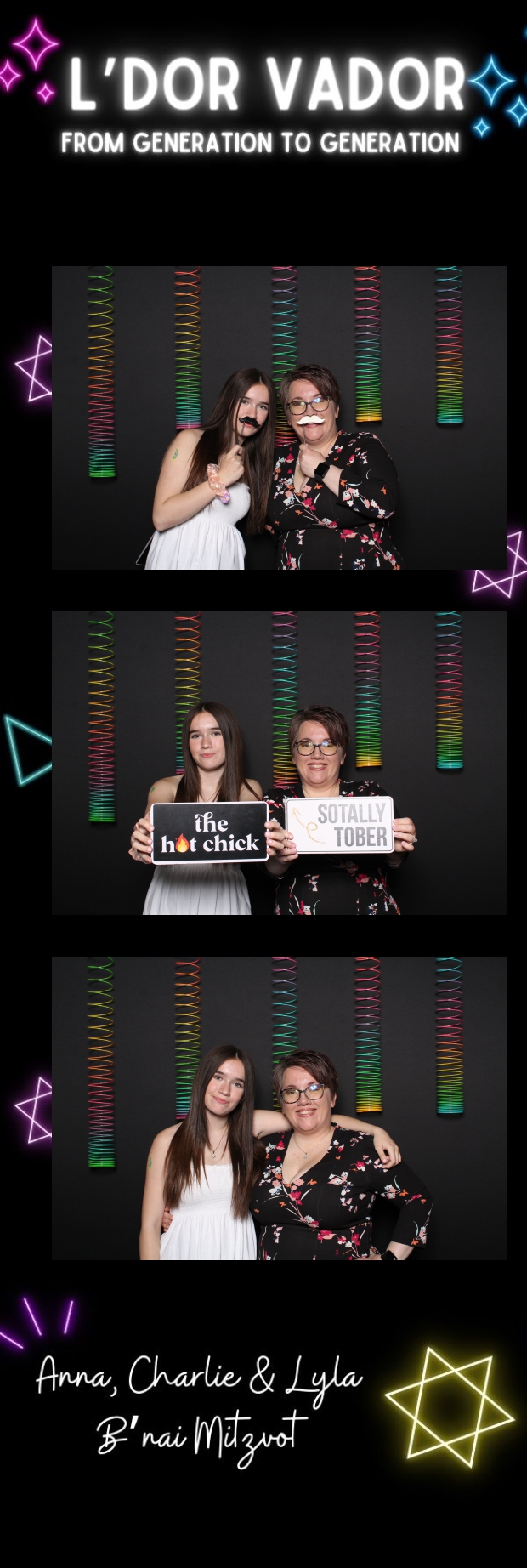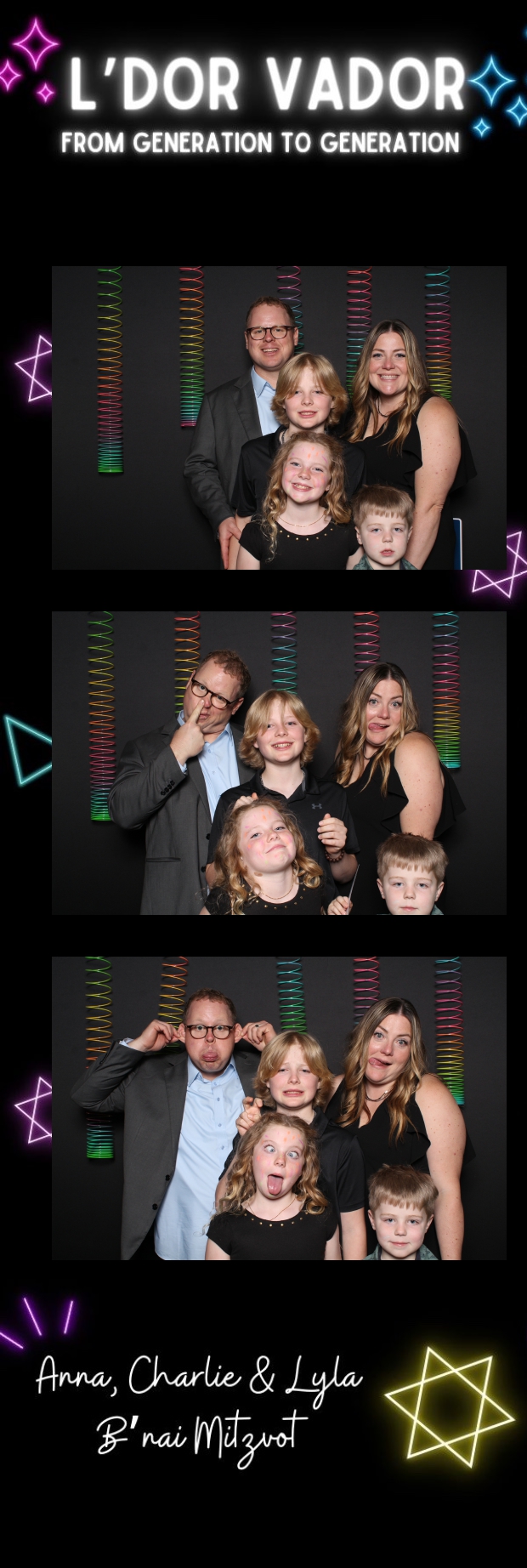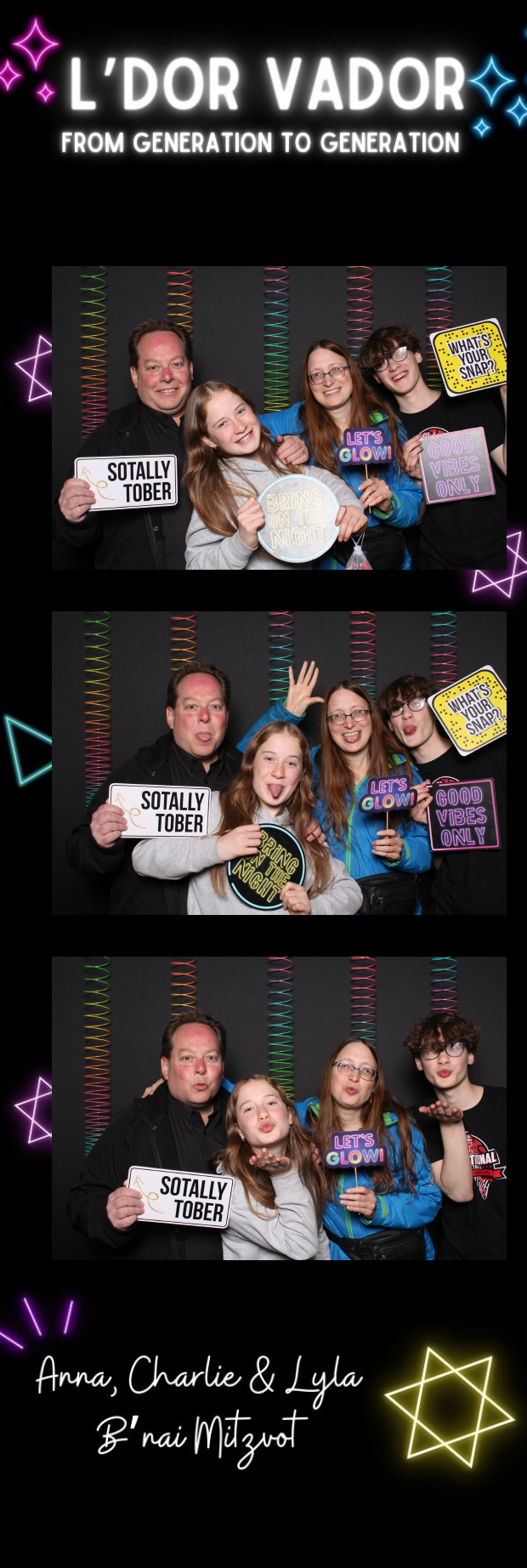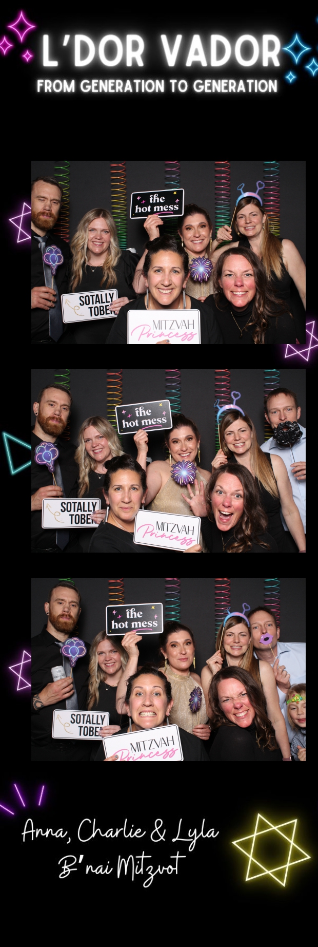 The Lyla, Charlie & Anna B’nai Mitzvot celebration at Prairieland Park in Saskatoon was an extraordinary event, brimming with joy and festivity. This landmark occasion was made even more memorable with the presence of True North Photo Booth, who delighted guests with their state-of-the-art photo booth setup. The event featured a 2X6 custom photo strip and a striking custom black & neon backdrop that perfectly captured the vibrant spirit of the night.