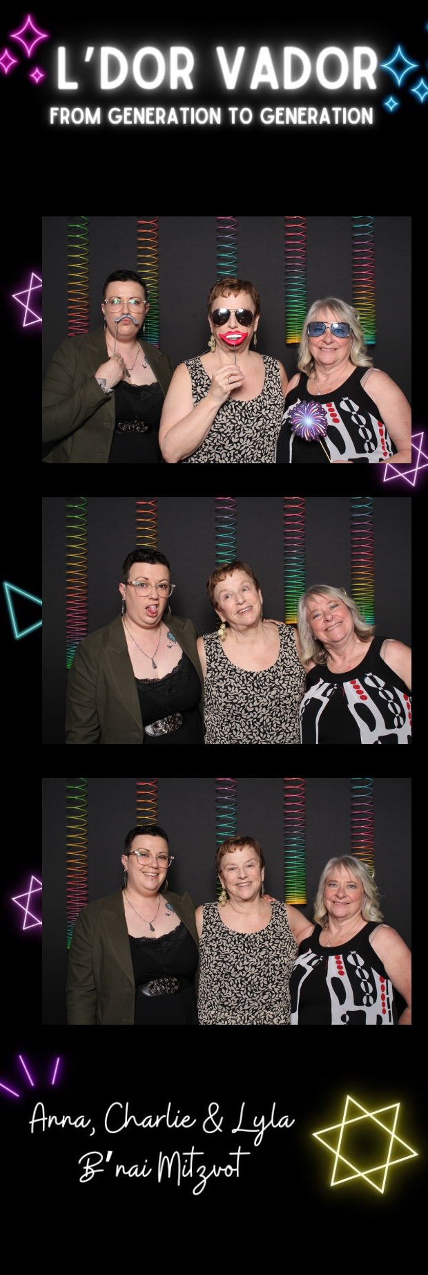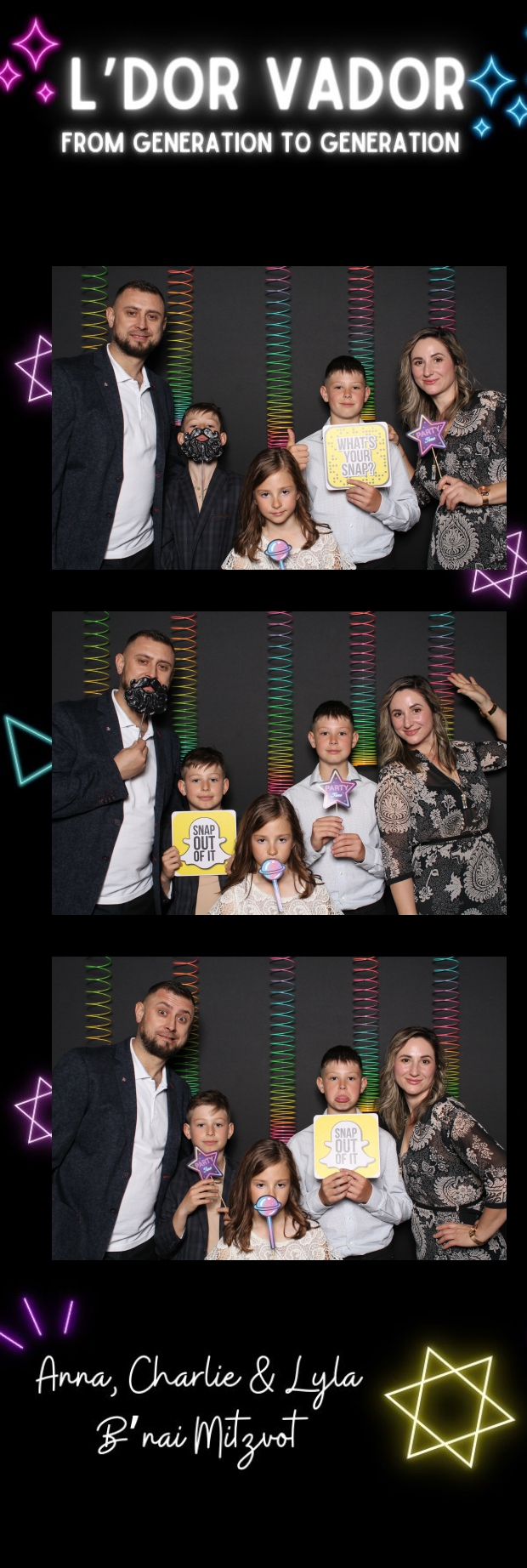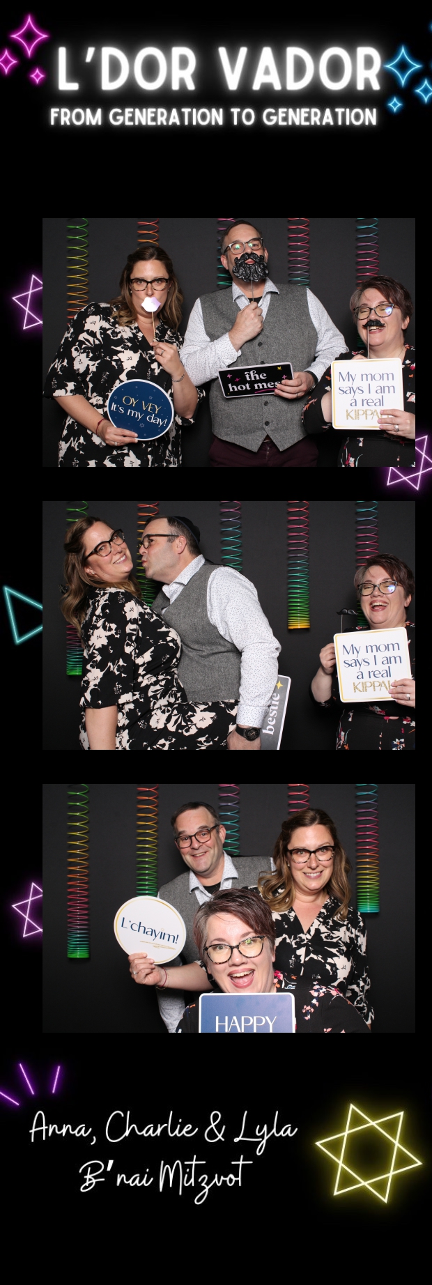 The Lyla, Charlie & Anna B’nai Mitzvot celebration at Prairieland Park in Saskatoon was an extraordinary event, brimming with joy and festivity. This landmark occasion was made even more memorable with the presence of True North Photo Booth, who delighted guests with their state-of-the-art photo booth setup. The event featured a 2X6 custom photo strip and a striking custom black & neon backdrop that perfectly captured the vibrant spirit of the night.
