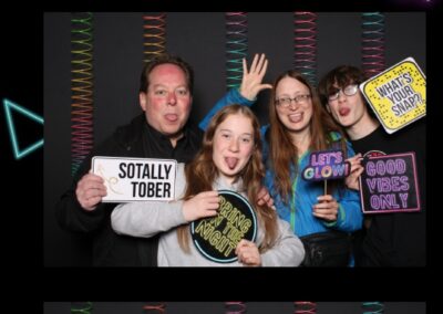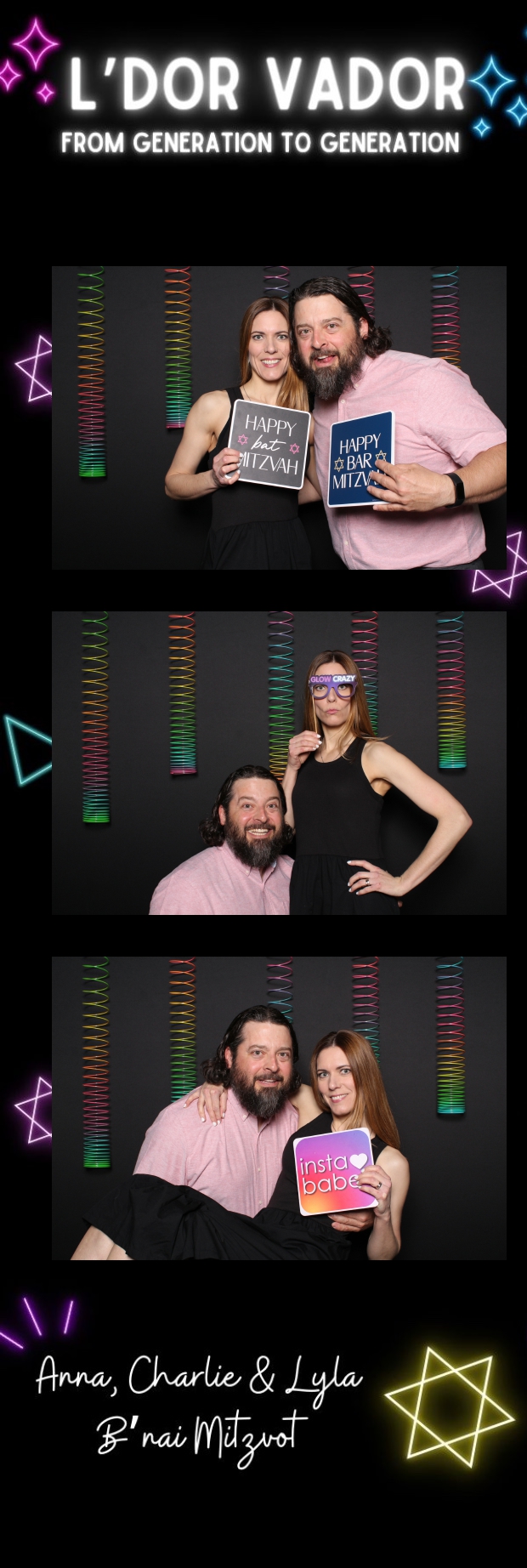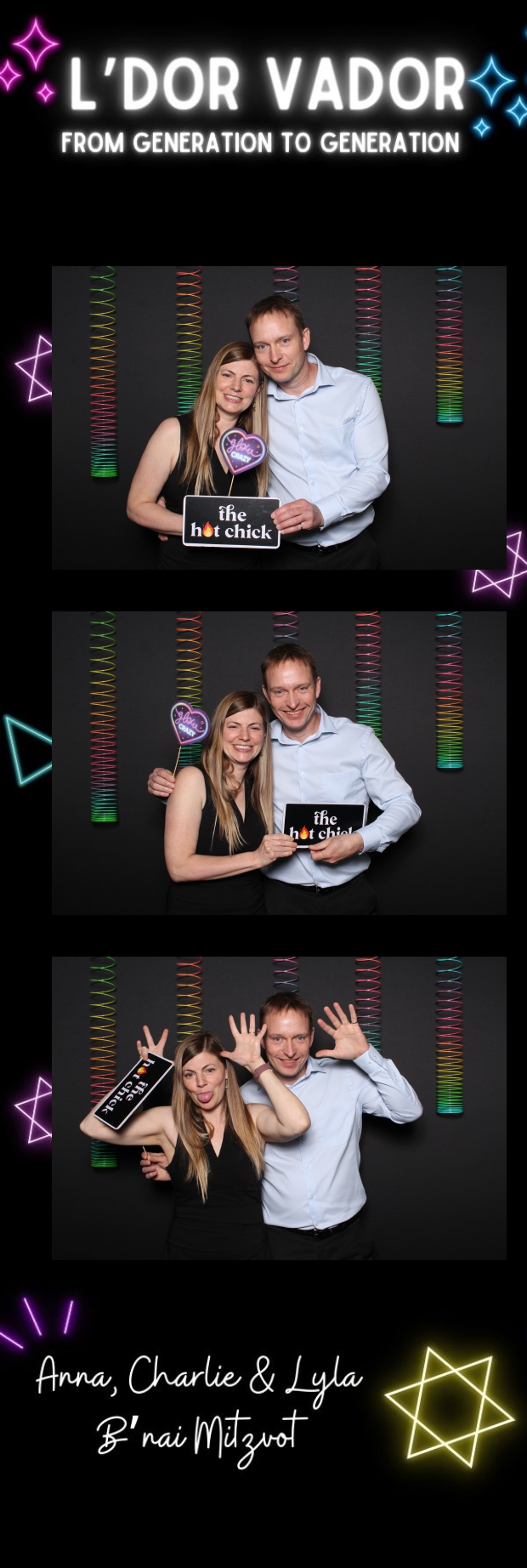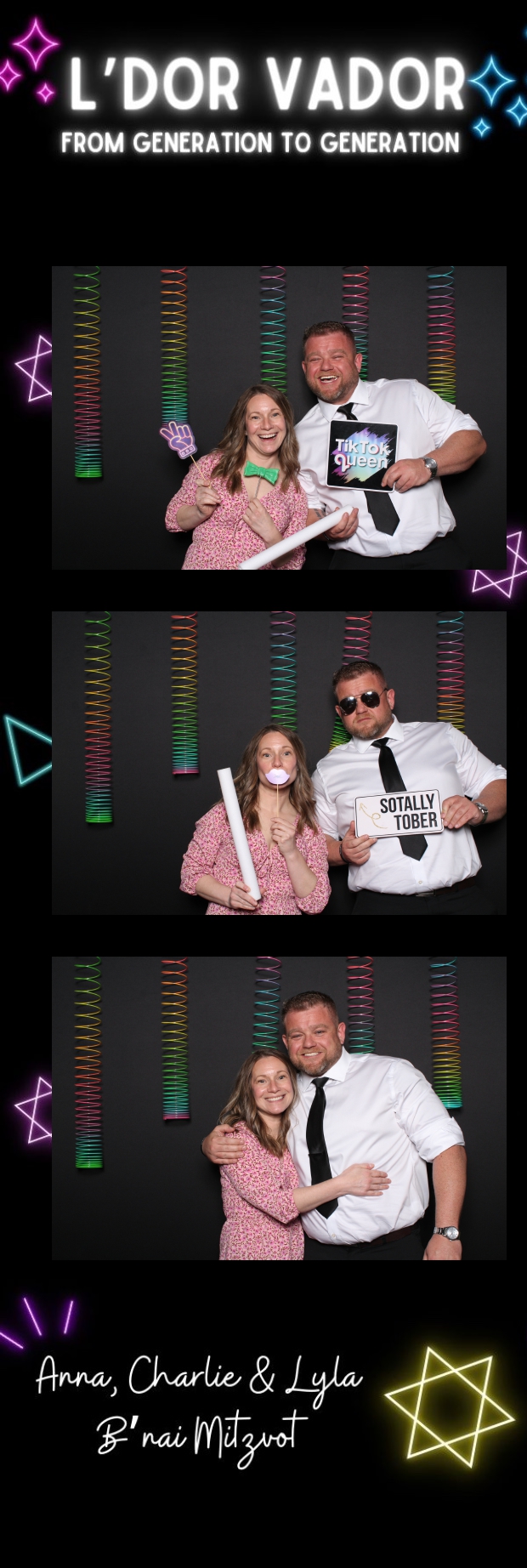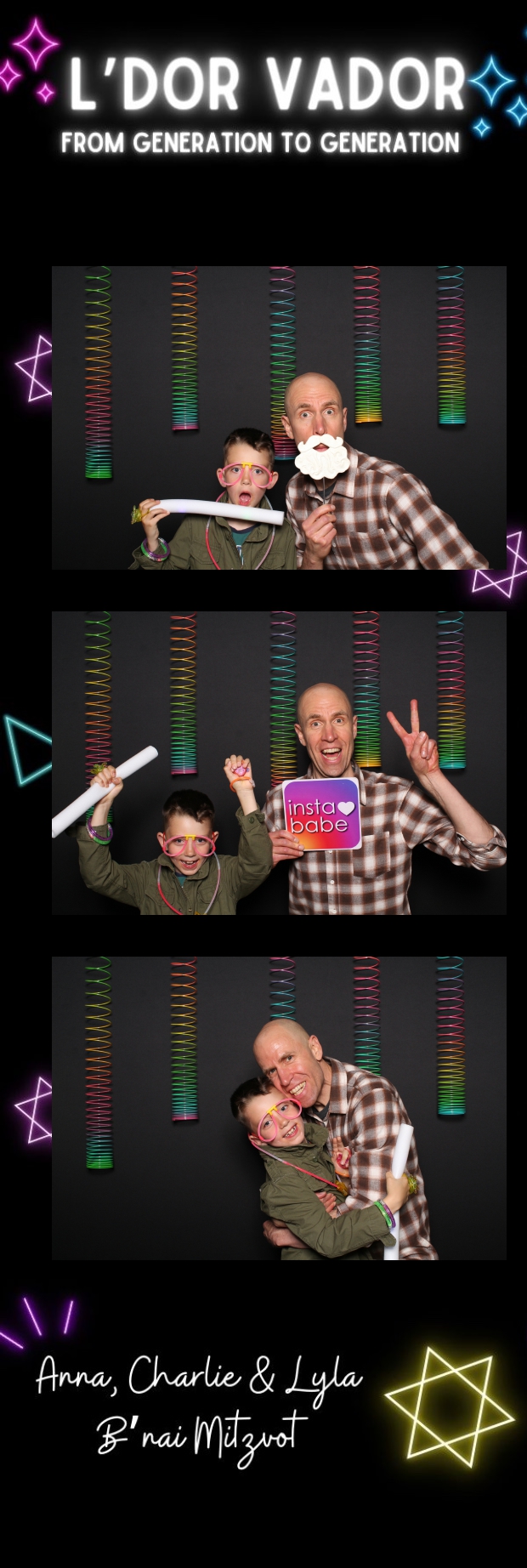 The Lyla, Charlie & Anna B’nai Mitzvot celebration at Prairieland Park in Saskatoon was an extraordinary event, brimming with joy and festivity. This landmark occasion was made even more memorable with the presence of True North Photo Booth, who delighted guests with their state-of-the-art photo booth setup. The event featured a 2X6 custom photo strip and a striking custom black & neon backdrop that perfectly captured the vibrant spirit of the night.