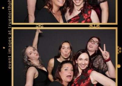 Guests enjoyed capturing memories at the interactive photo booth, featuring 2X6 custom photo strips and a sleek black pillow backdrop. The modern setup added a stylish touch to the celebration, giving attendees fun keepsake photos to remember a memorable holiday night spent together.