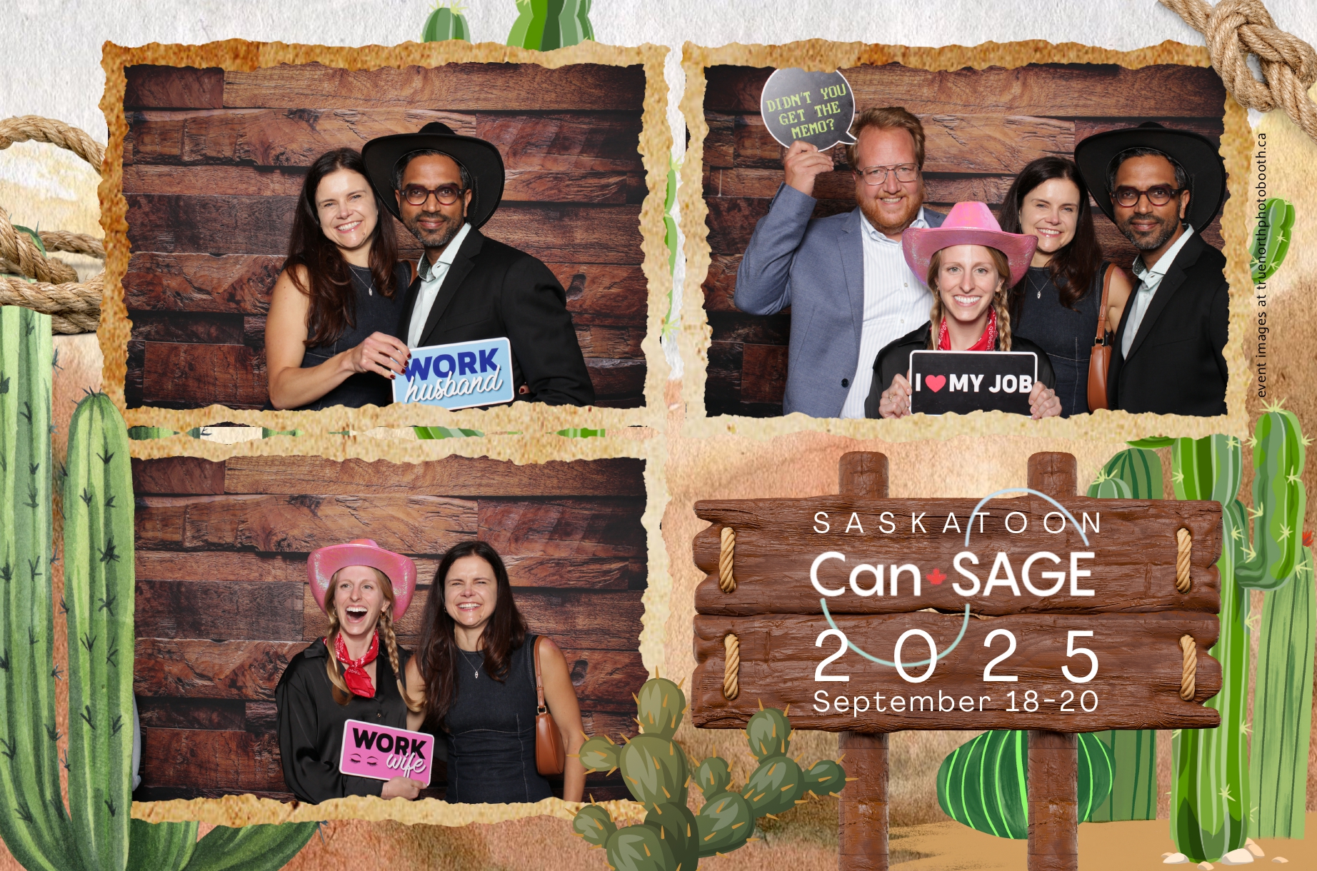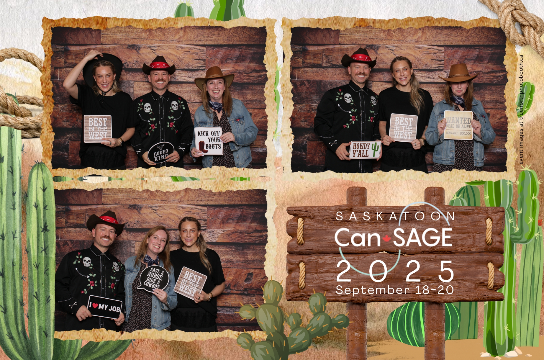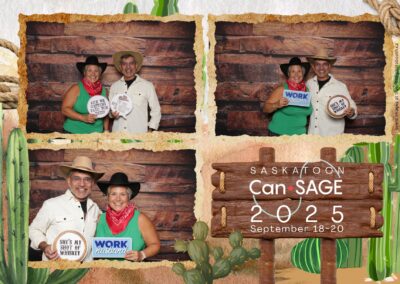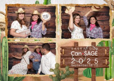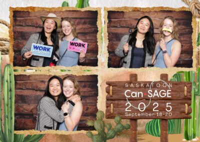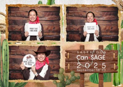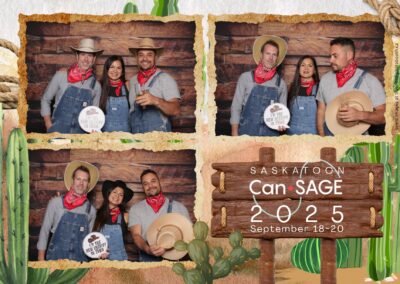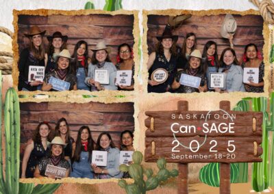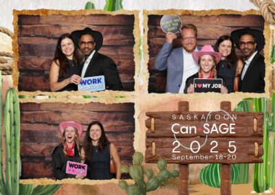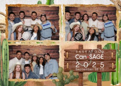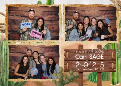 Guests were thrilled to capture memorable moments with our photo booth set up in front of a rustic 4X6 Barnboard pillow backdrop—a unique contrast to the modern venue. The backdrop added warmth and character to the shots, creating keepsakes that attendees would proudly take home. It was a treat to see colleagues and friends posing with smiles and cheers, and we were proud to contribute to the unforgettable atmosphere of CanSAGE 2025.
