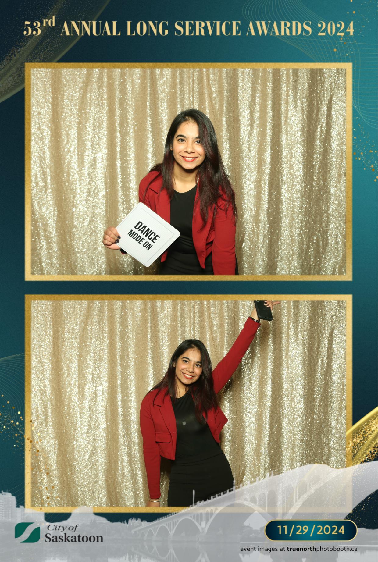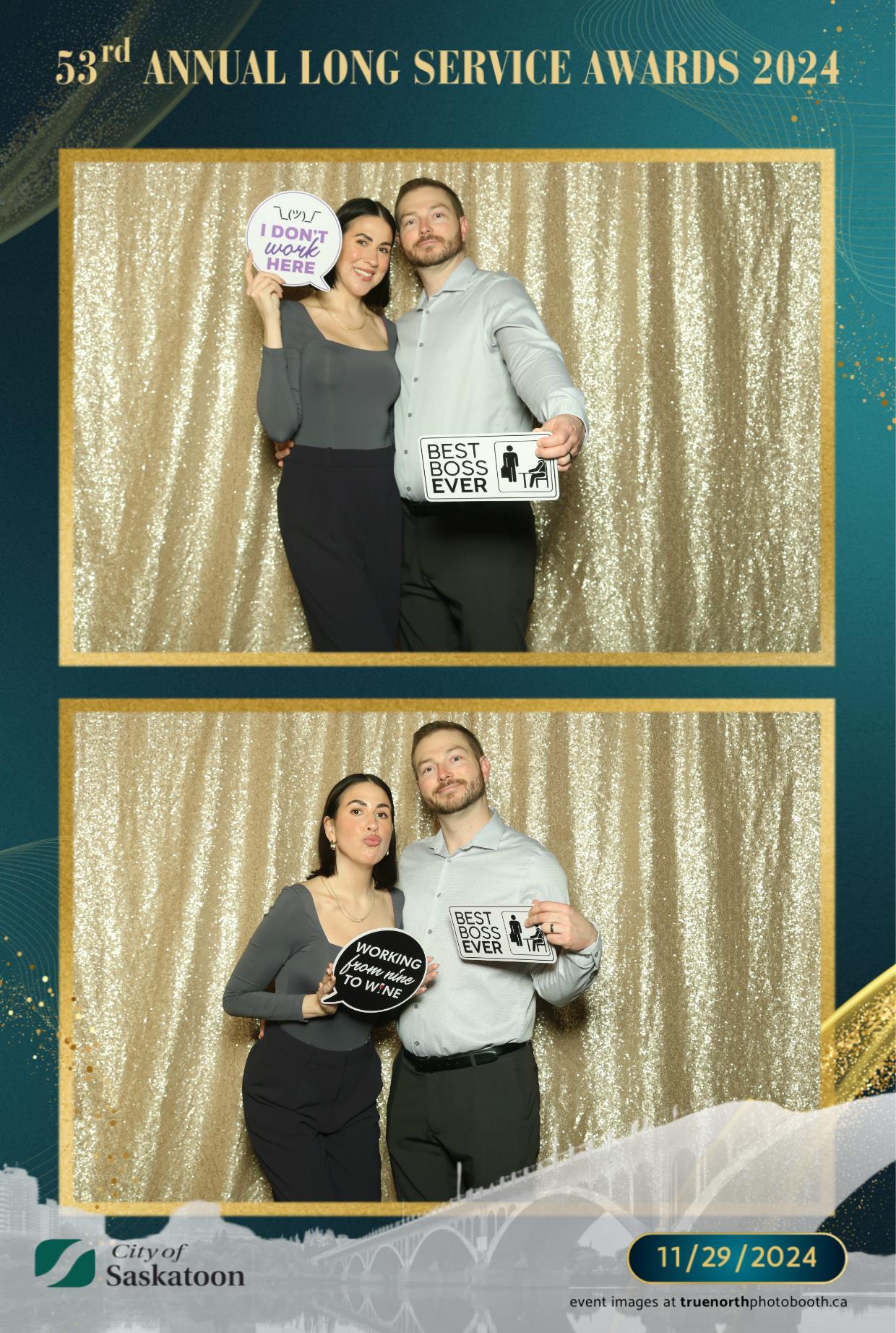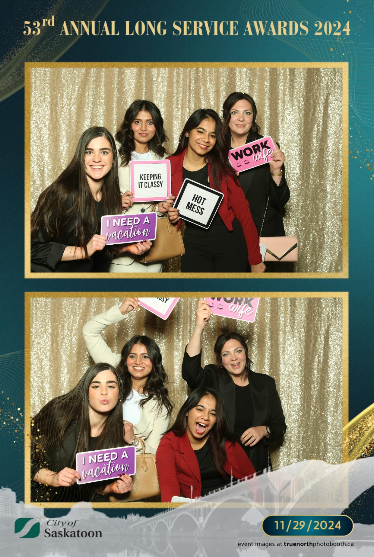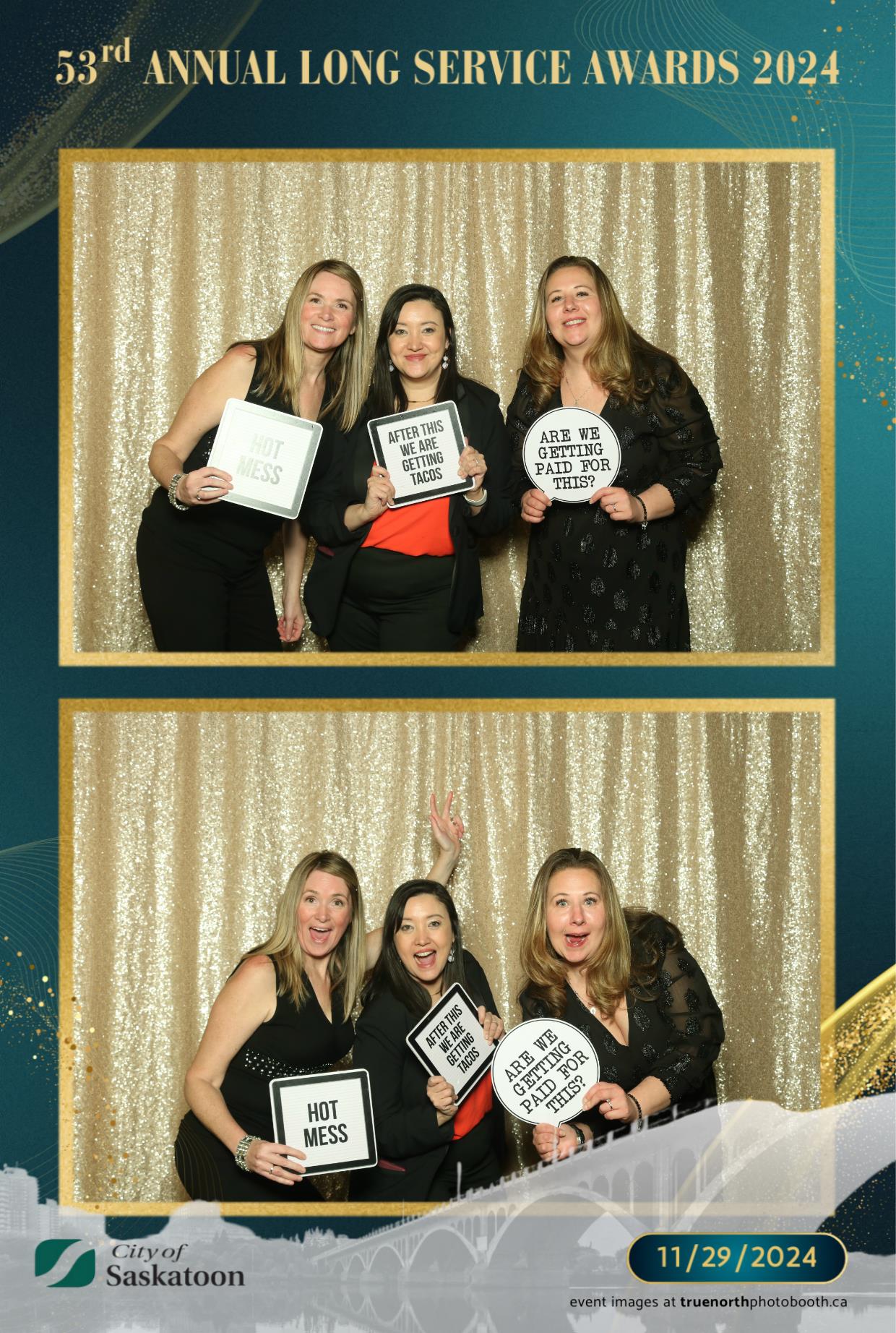 True North Photo Booth was thrilled to add a touch of fun to this prestigious occasion with their 4X6 custom photo strip featuring a champagne sequin backdrop. The shimmering backdrop set the perfect tone for capturing joyful memories, as award recipients and attendees struck their best poses. From candid smiles to playful group shots, the photo booth was a highlight of the evening, providing personalized keepsakes that attendees could treasure for years to come. True North Photo Booth was proud to be part of such a meaningful and celebratory night!