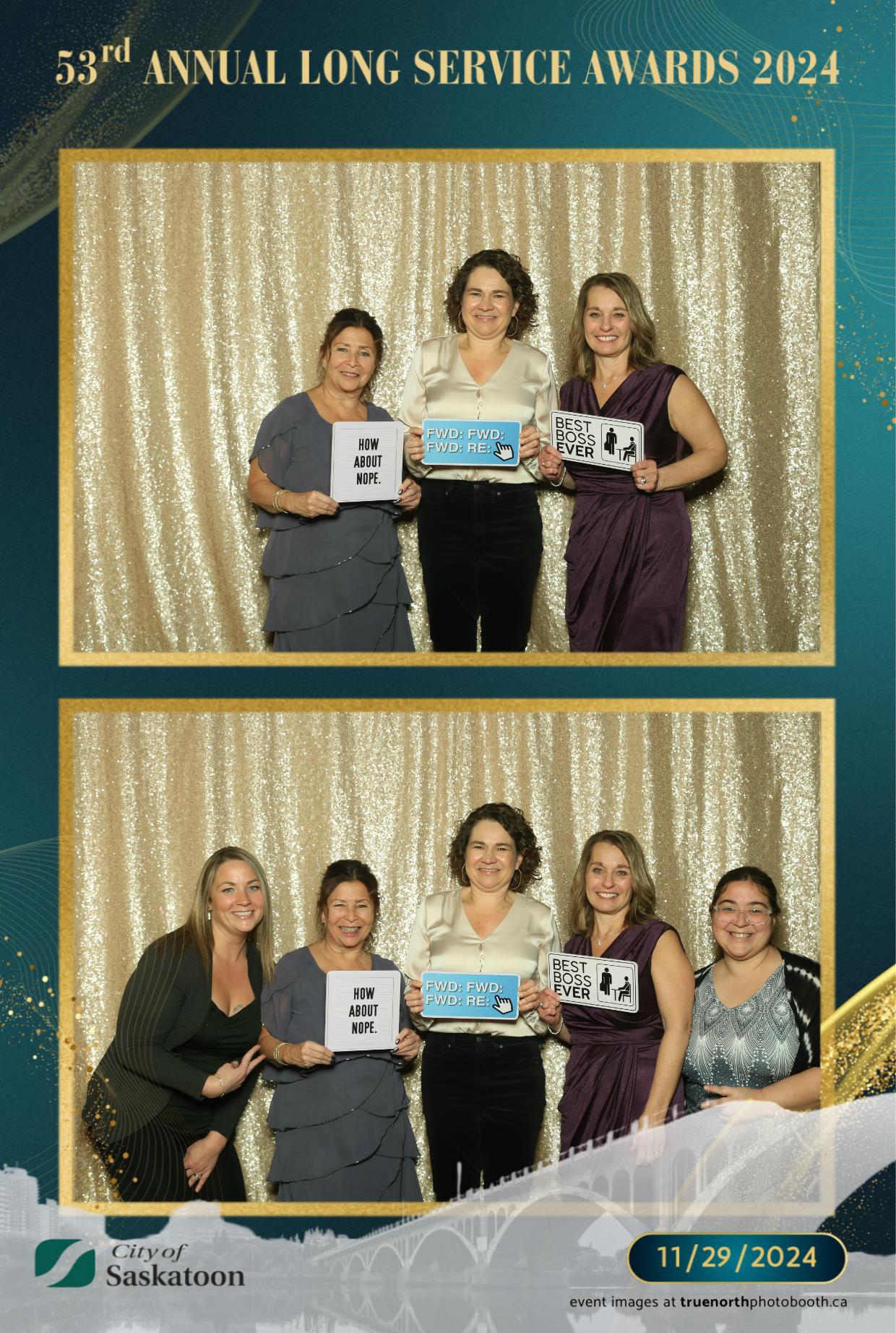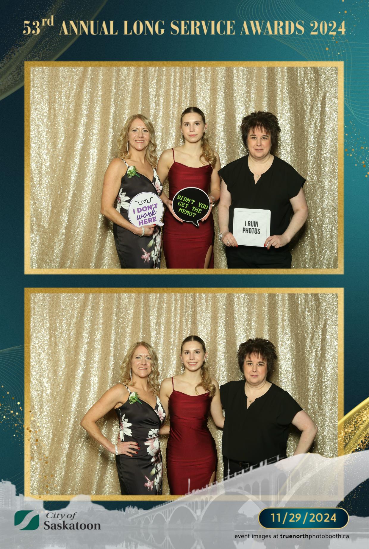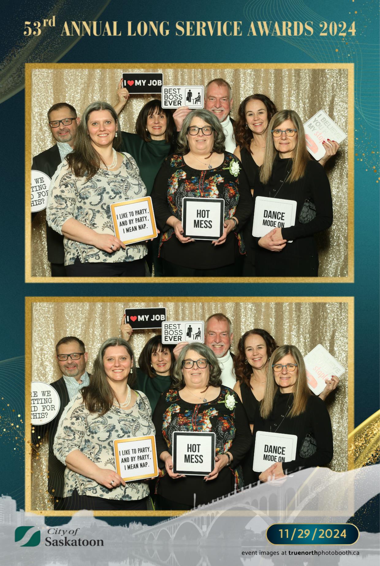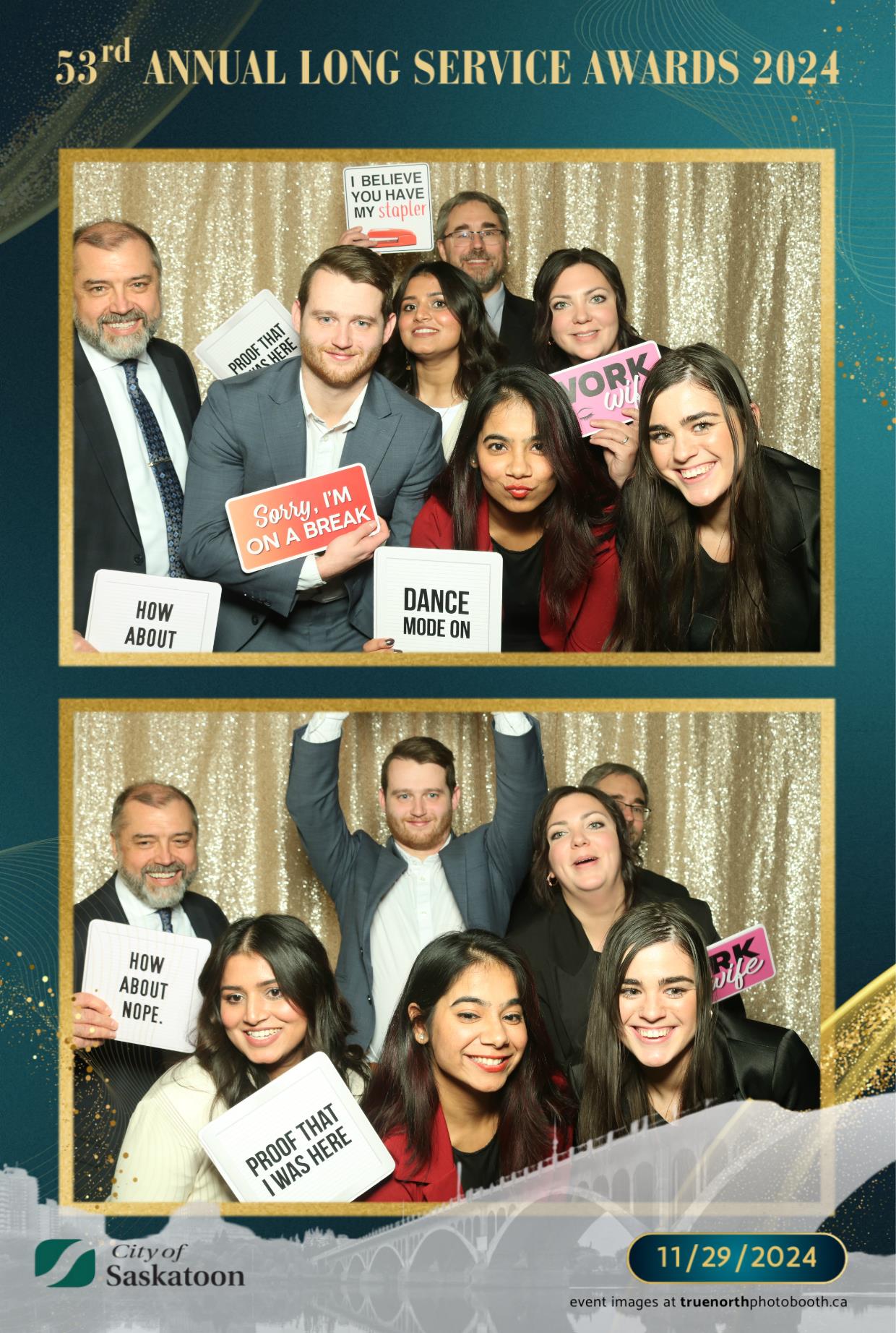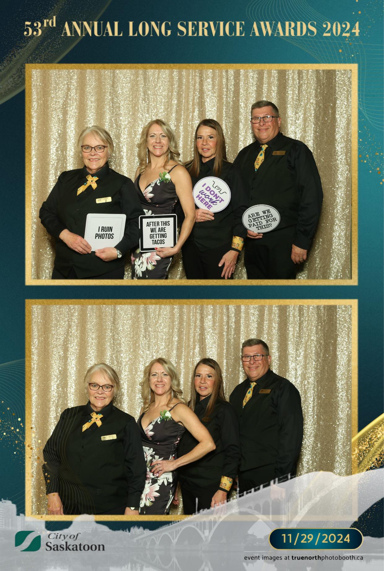 True North Photo Booth was thrilled to add a touch of fun to this prestigious occasion with their 4X6 custom photo strip featuring a champagne sequin backdrop. The shimmering backdrop set the perfect tone for capturing joyful memories, as award recipients and attendees struck their best poses. From candid smiles to playful group shots, the photo booth was a highlight of the evening, providing personalized keepsakes that attendees could treasure for years to come. True North Photo Booth was proud to be part of such a meaningful and celebratory night!