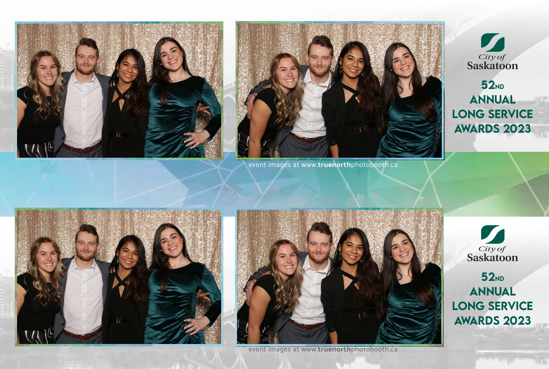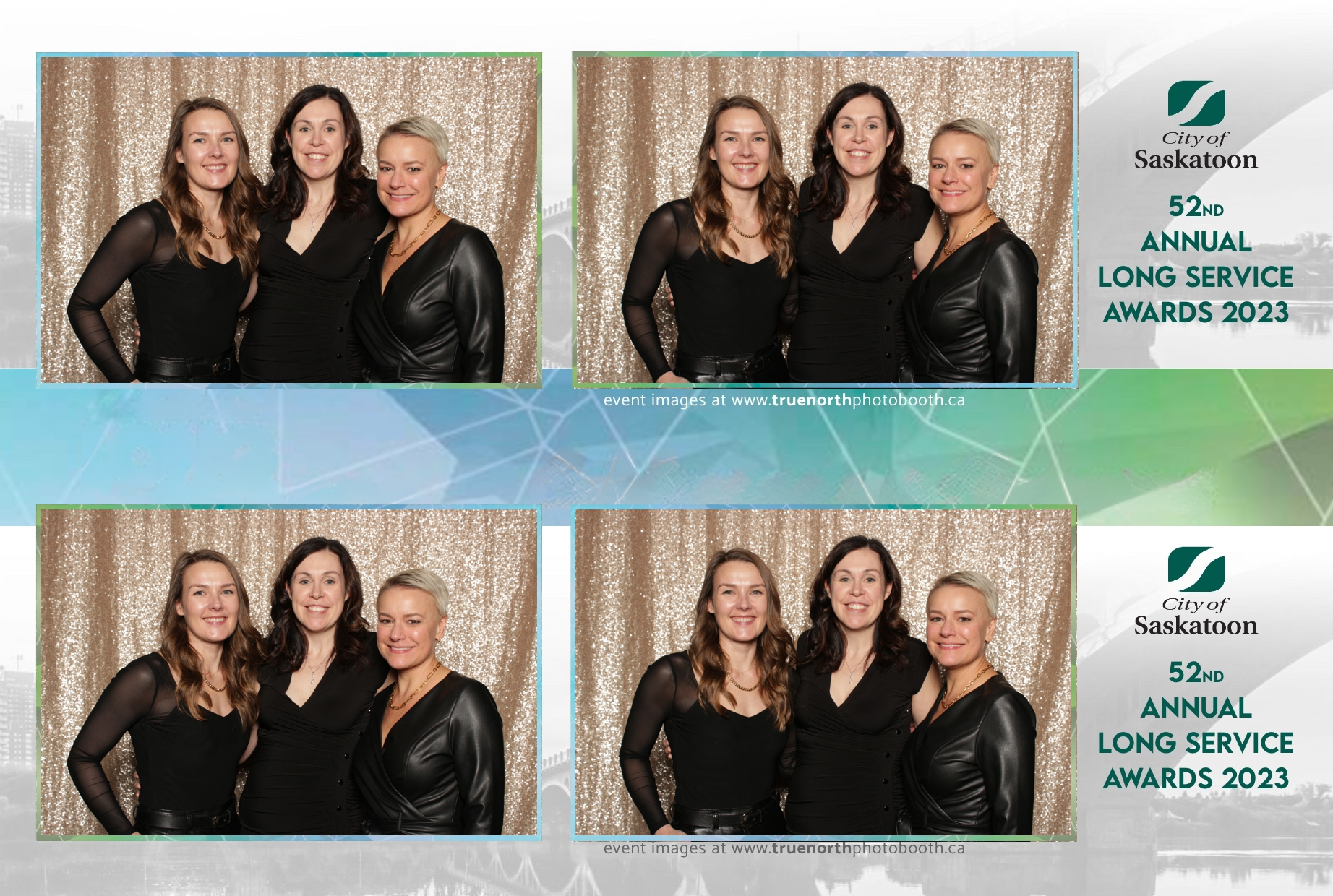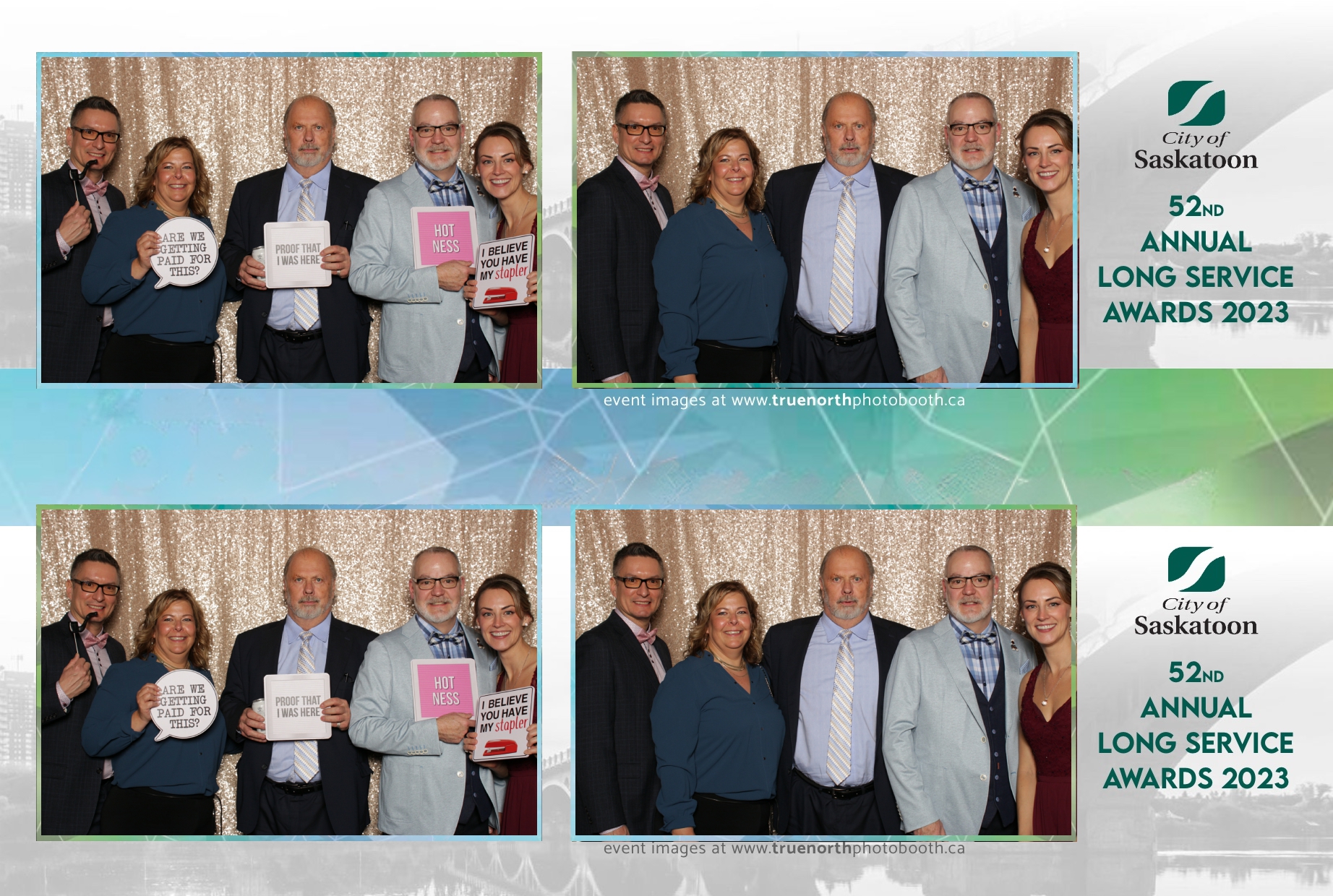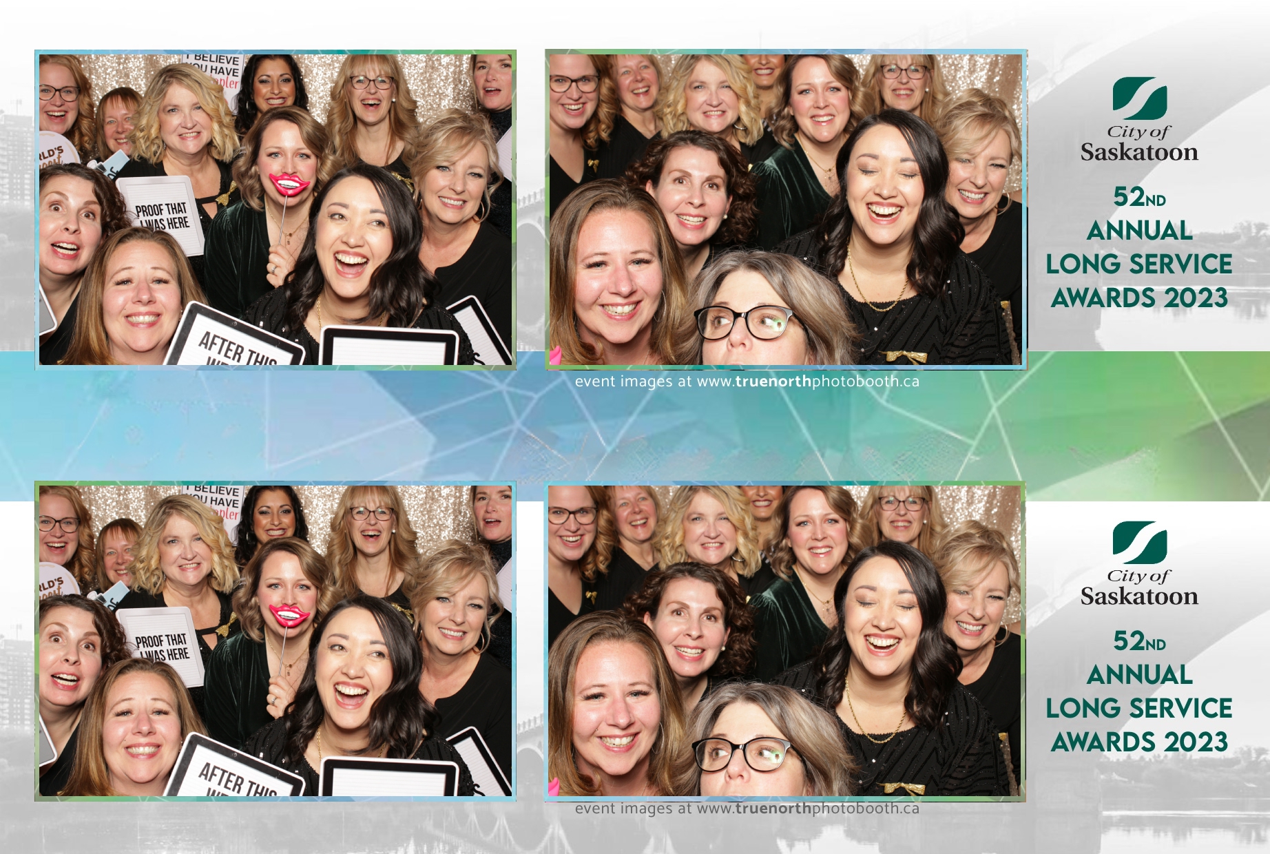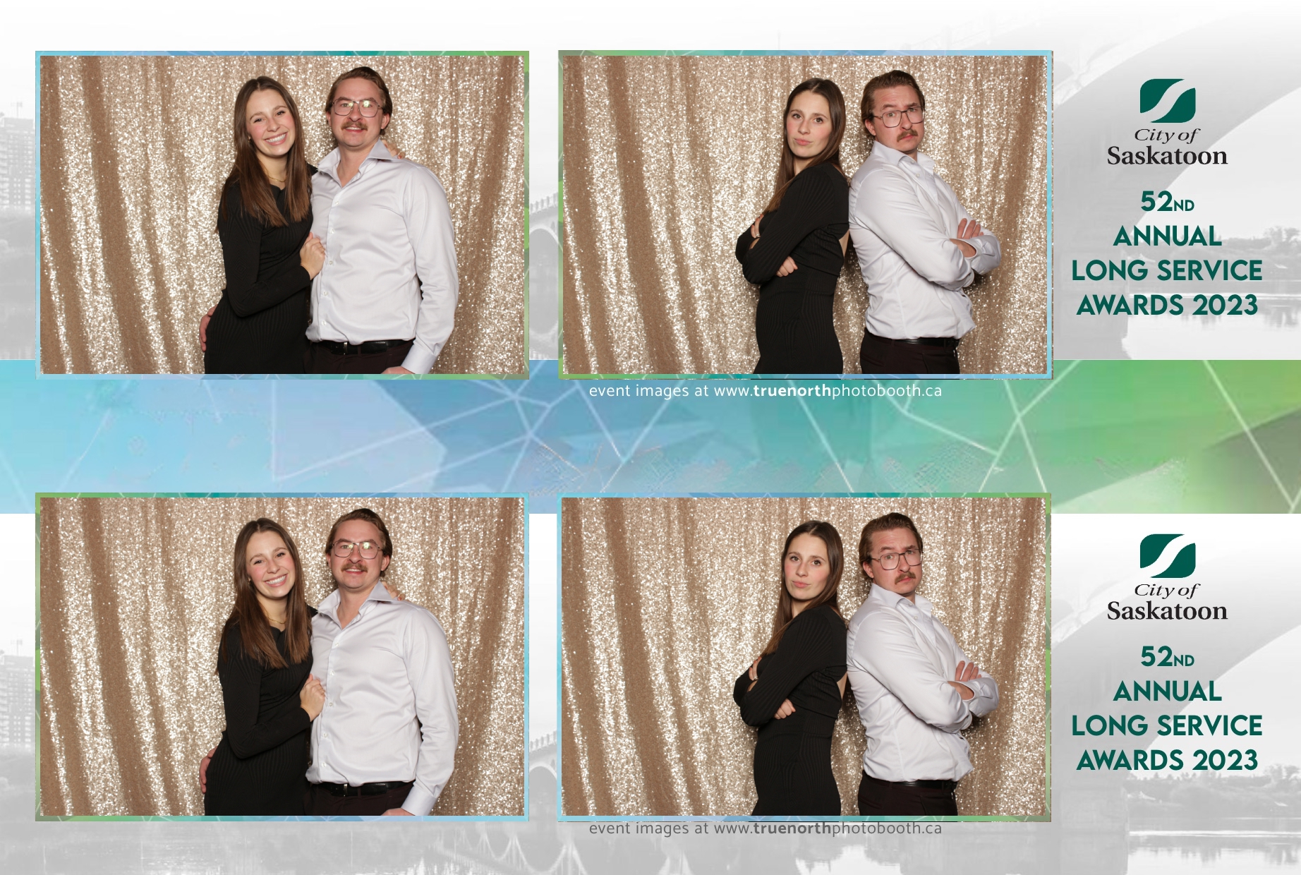 The City of Saskatoon’s Long Service Awards 2023, held at the prestigious TCU Place, was a night dedicated to honoring commitment and excellence. True North Photo Booth was privileged to be part of this remarkable event, injecting a dose of fun and glamour into the celebration. The 2X6 custom photo strips became personalized tokens of appreciation, capturing the smiles and jubilation of the dedicated employees celebrating their long-standing service.