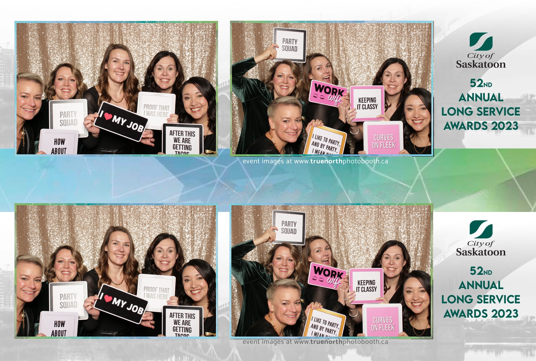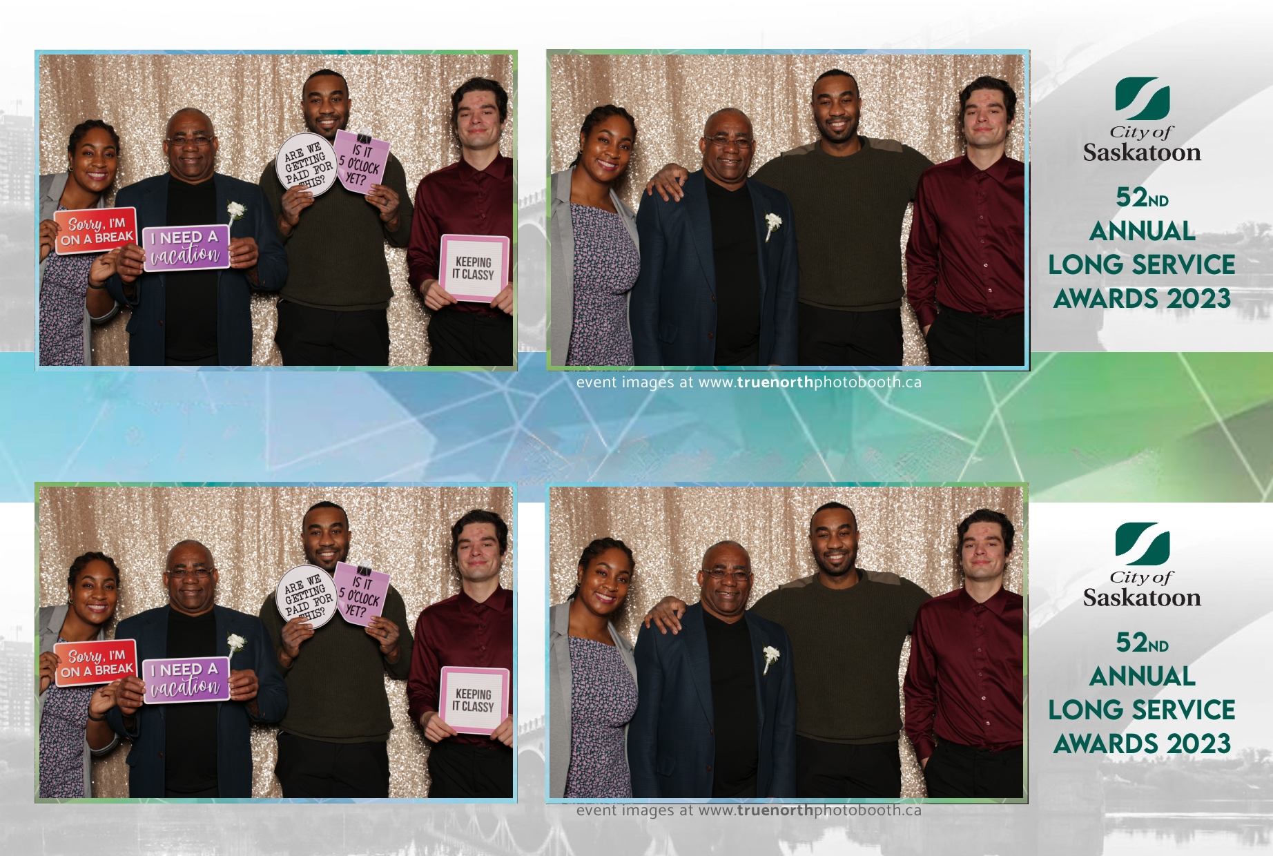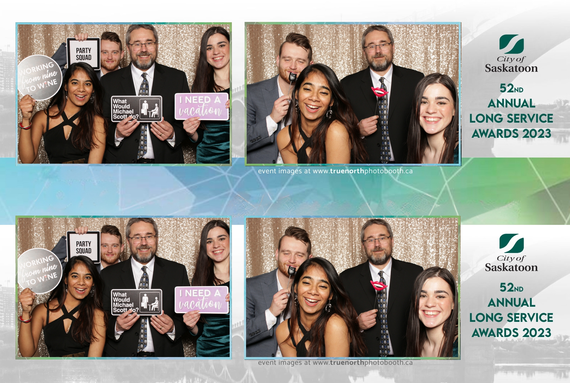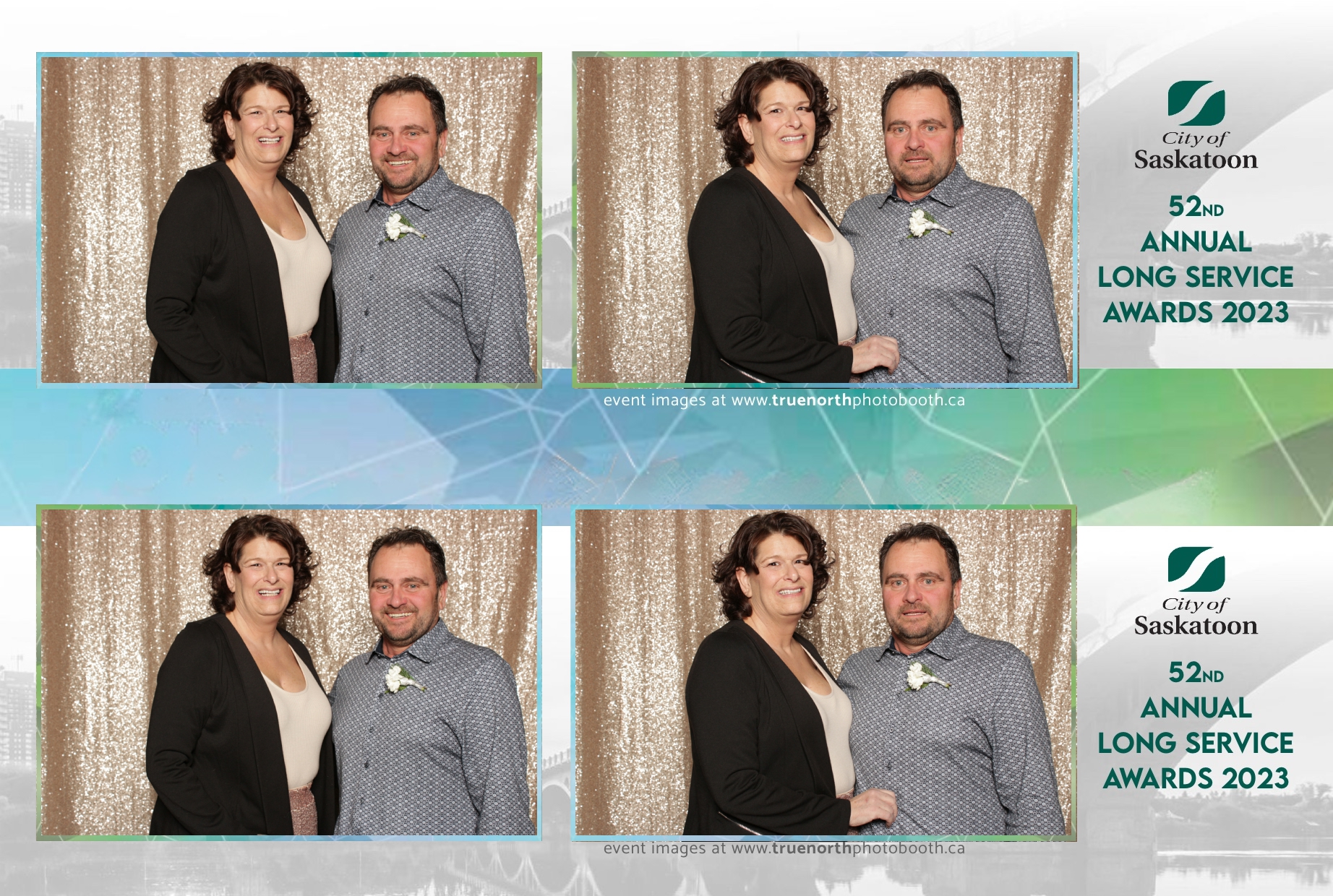 The City of Saskatoon’s Long Service Awards 2023, held at the prestigious TCU Place, was a night dedicated to honoring commitment and excellence. True North Photo Booth was privileged to be part of this remarkable event, injecting a dose of fun and glamour into the celebration. The 2X6 custom photo strips became personalized tokens of appreciation, capturing the smiles and jubilation of the dedicated employees celebrating their long-standing service.