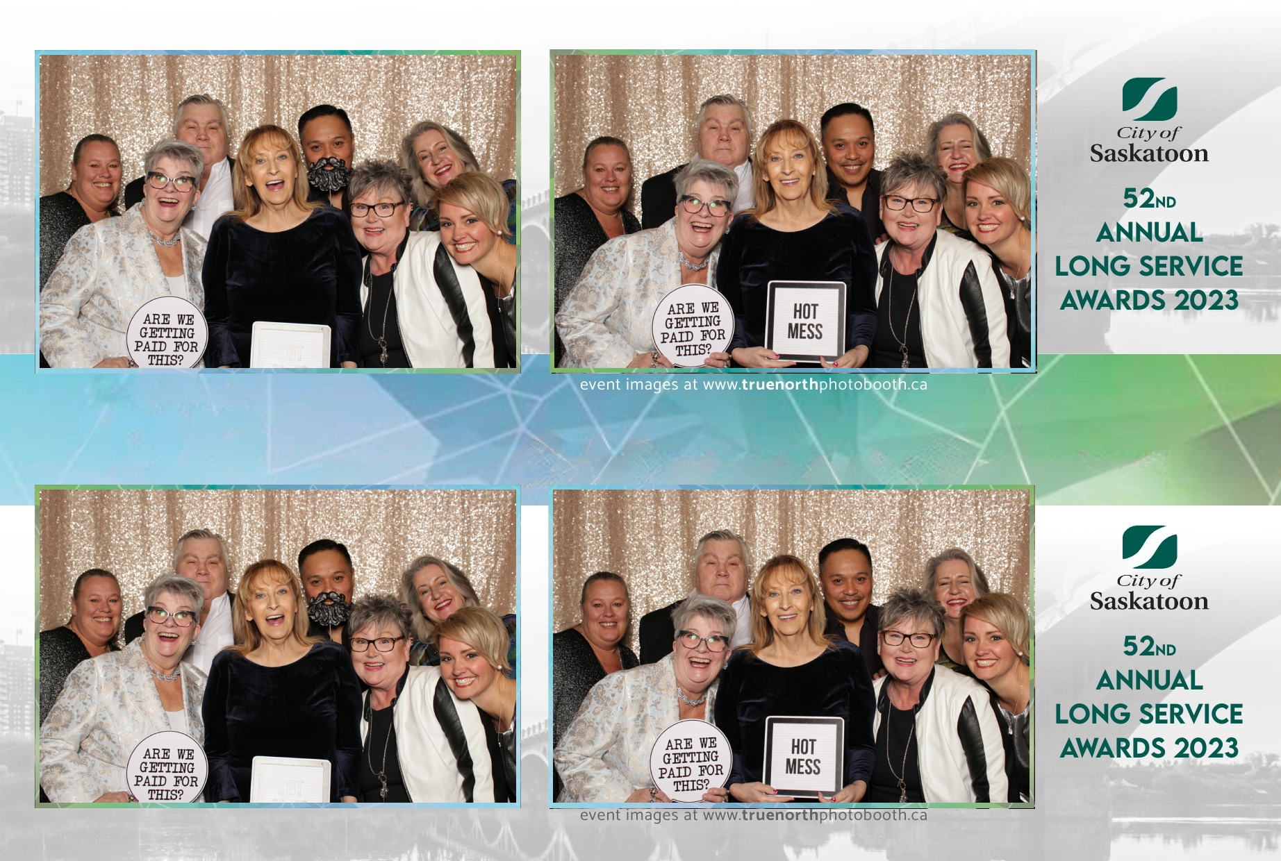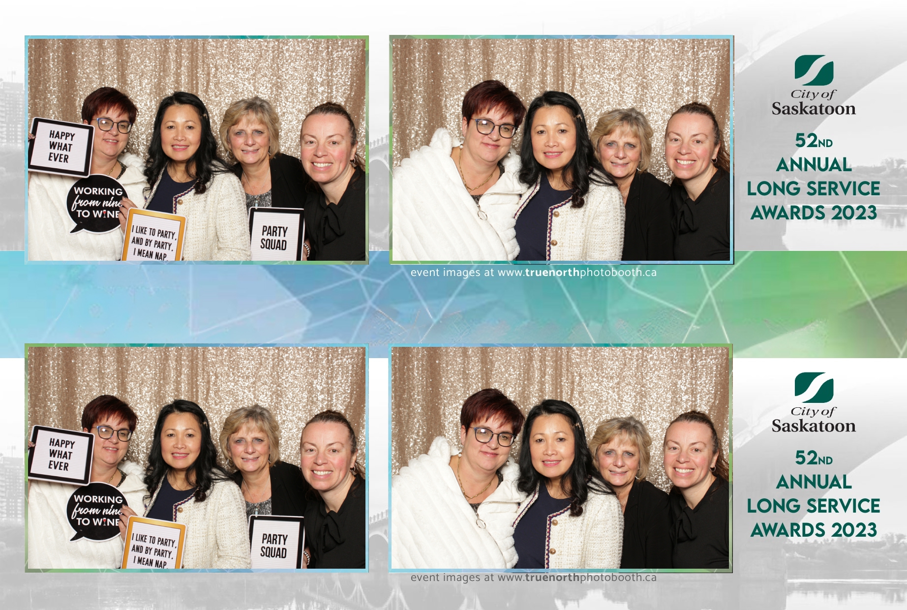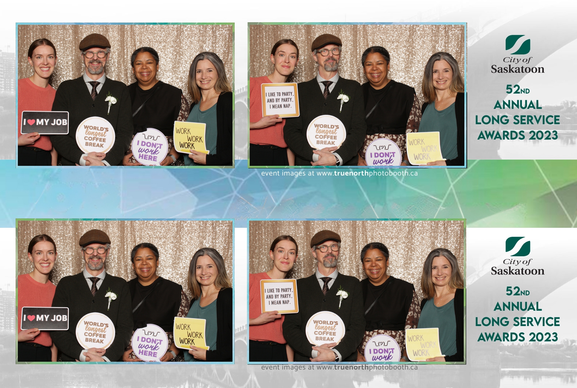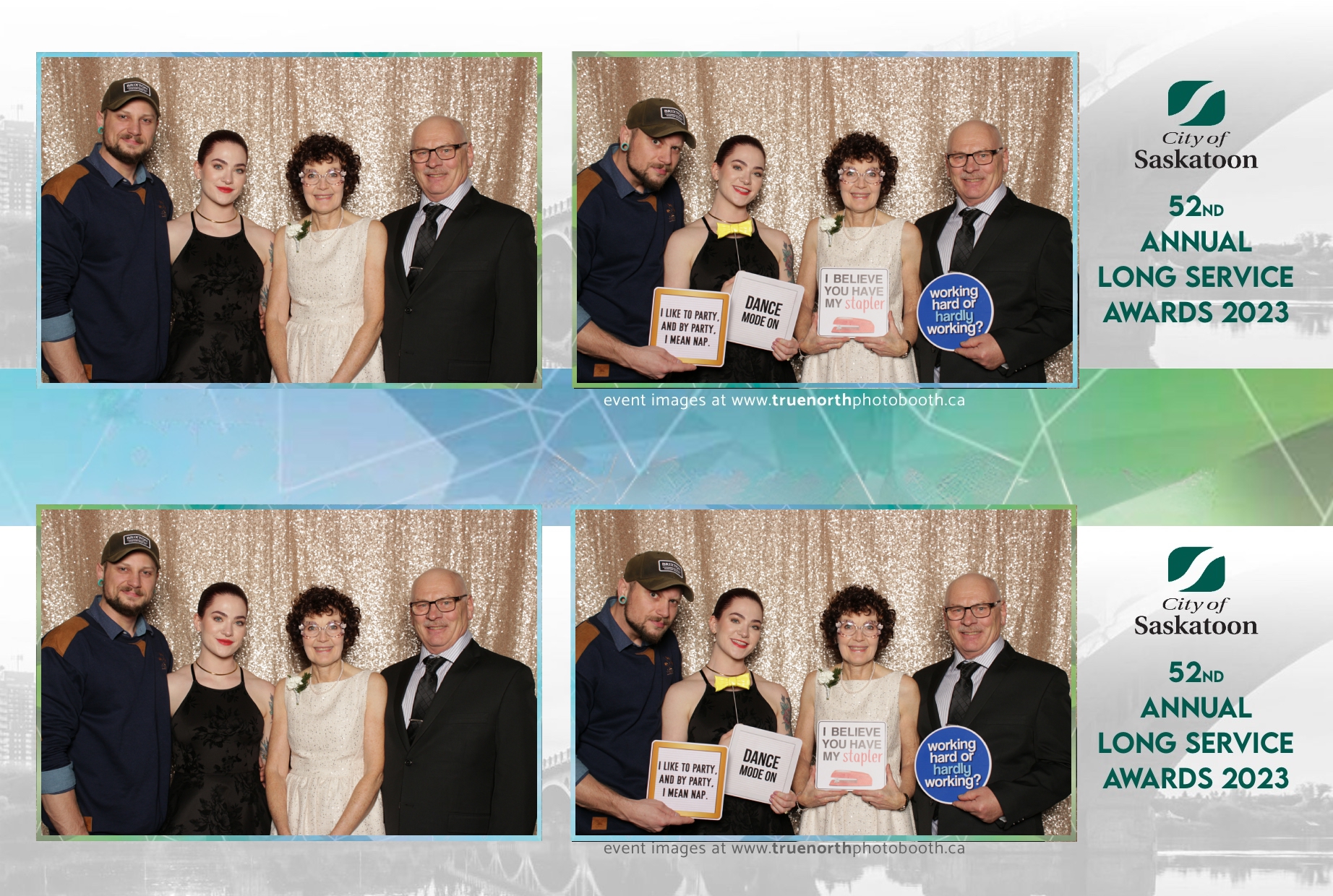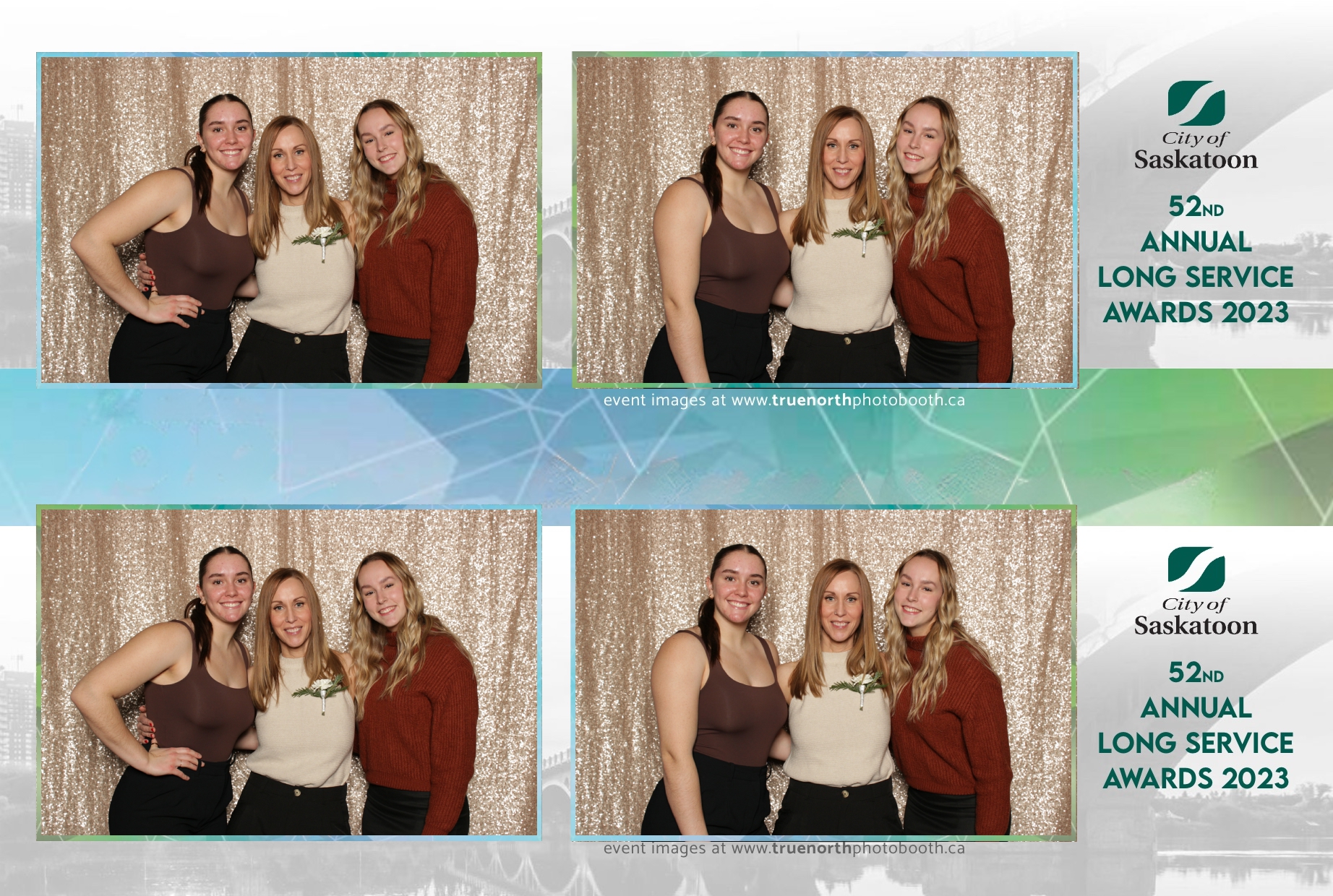 The City of Saskatoon’s Long Service Awards 2023, held at the prestigious TCU Place, was a night dedicated to honoring commitment and excellence. True North Photo Booth was privileged to be part of this remarkable event, injecting a dose of fun and glamour into the celebration. The 2X6 custom photo strips became personalized tokens of appreciation, capturing the smiles and jubilation of the dedicated employees celebrating their long-standing service.