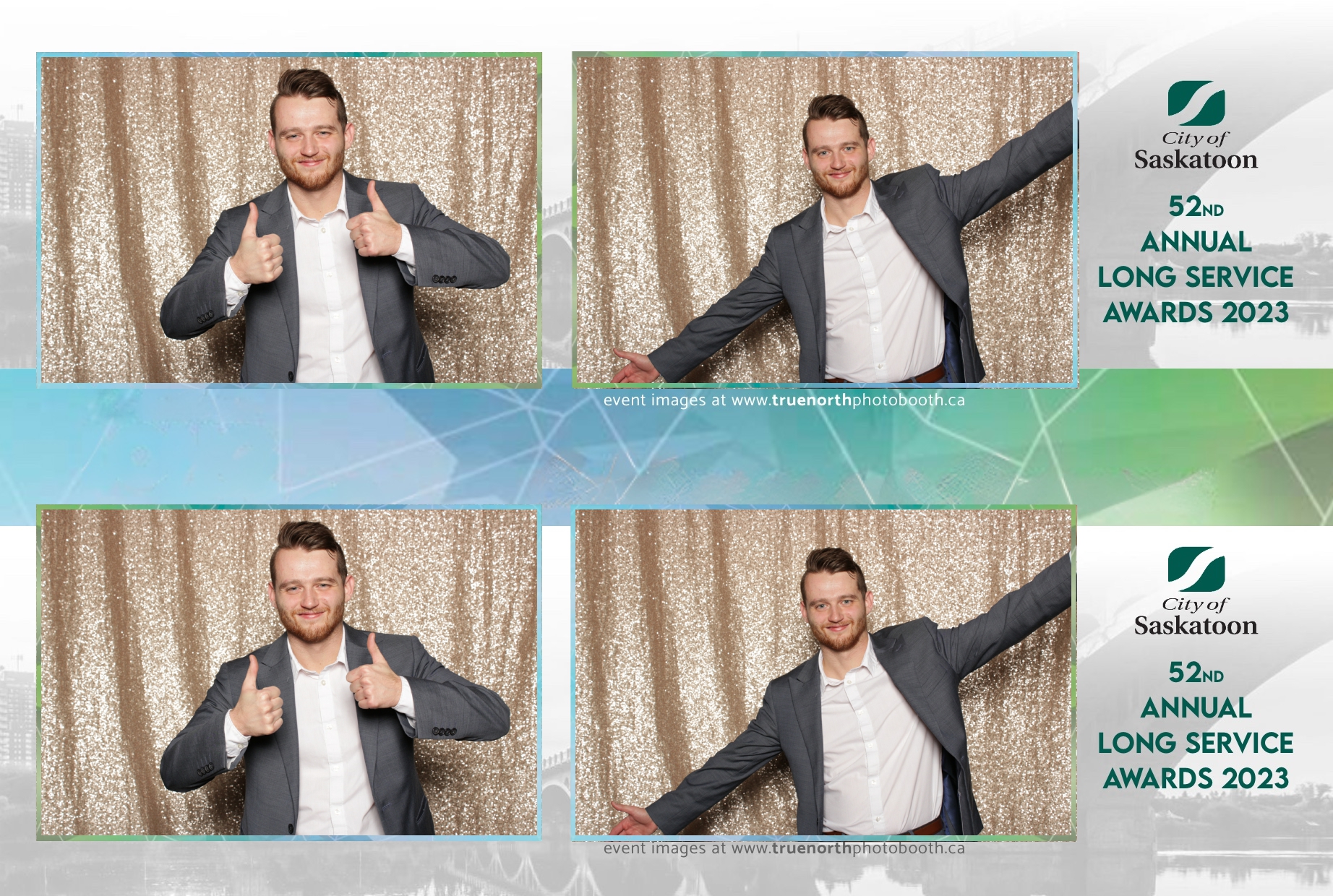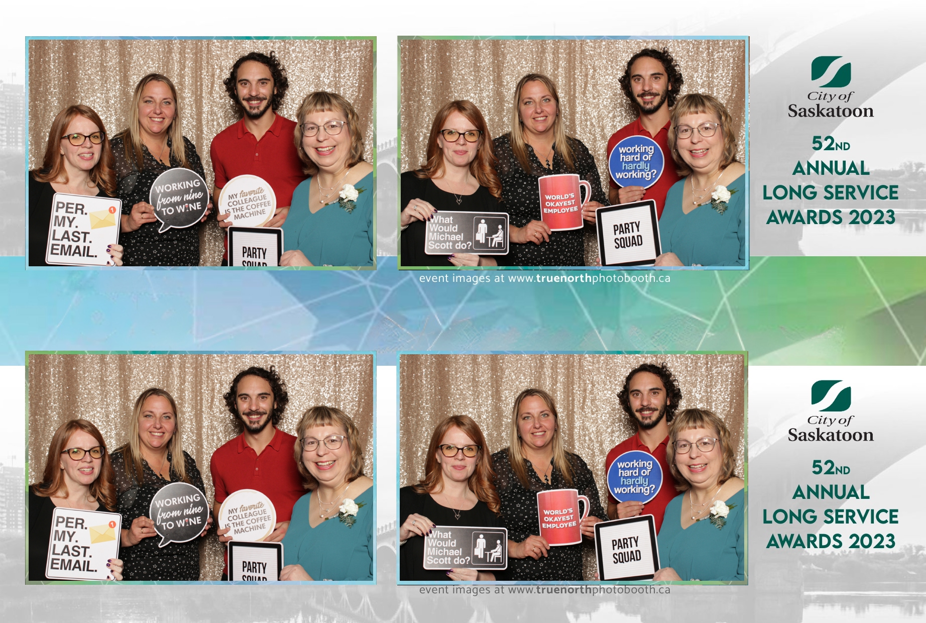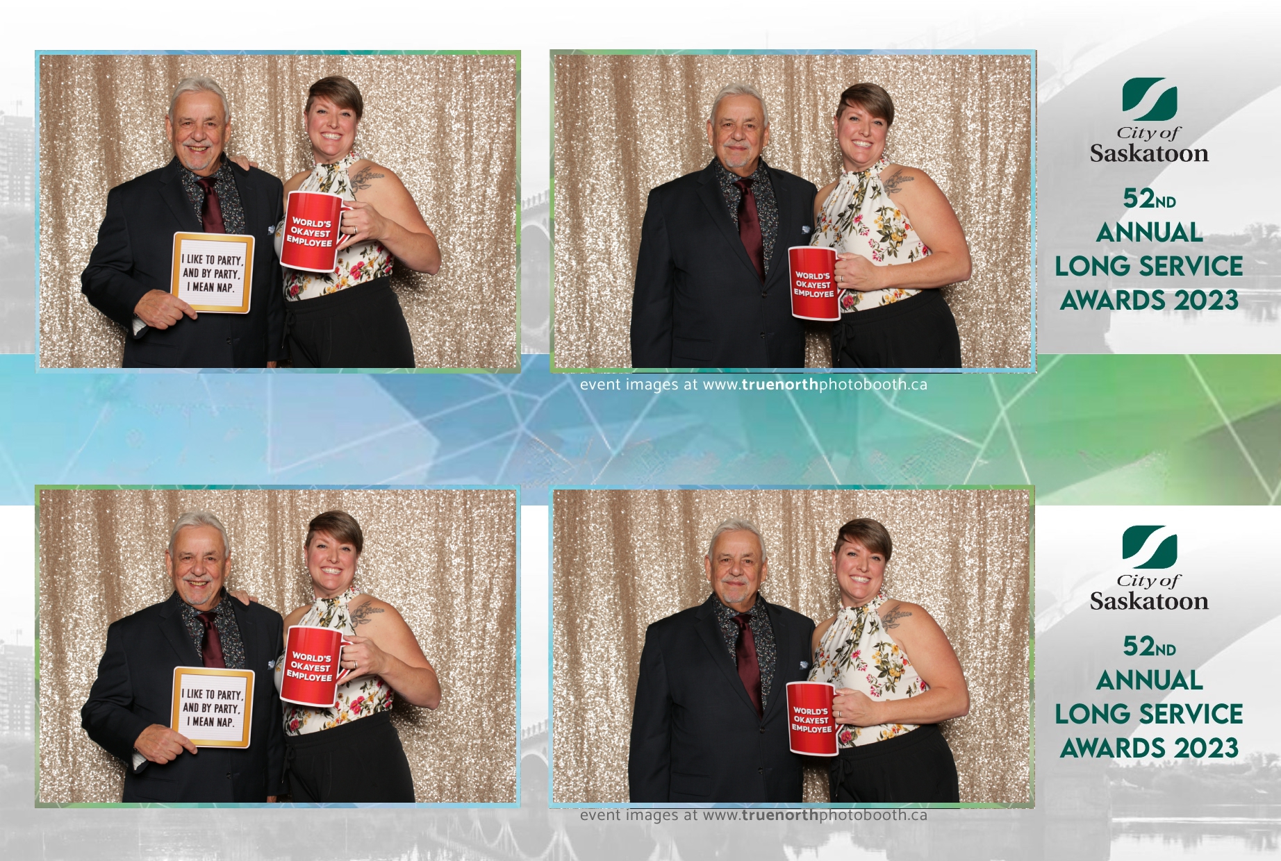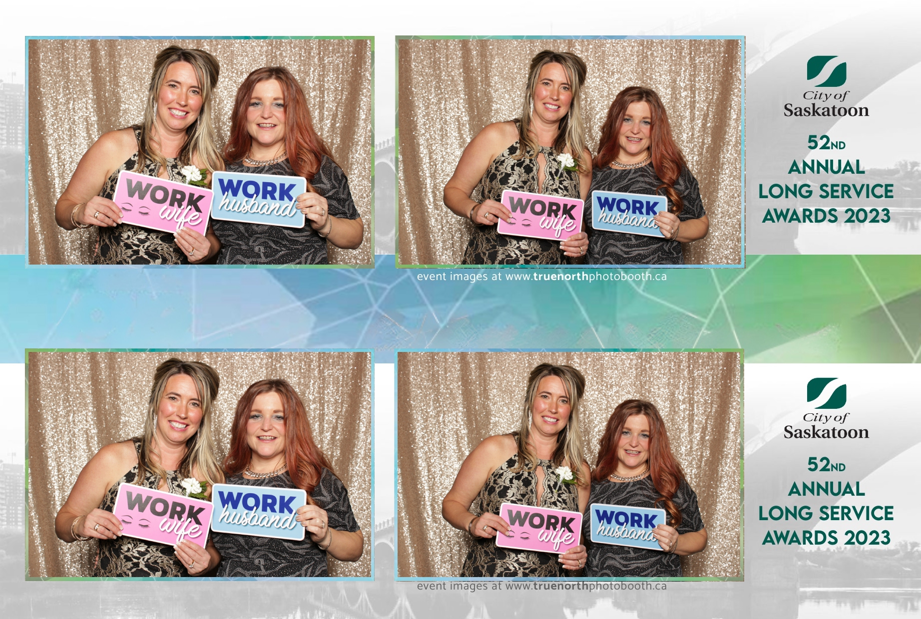 The City of Saskatoon’s Long Service Awards 2023, held at the prestigious TCU Place, was a night dedicated to honoring commitment and excellence. True North Photo Booth was privileged to be part of this remarkable event, injecting a dose of fun and glamour into the celebration. The 2X6 custom photo strips became personalized tokens of appreciation, capturing the smiles and jubilation of the dedicated employees celebrating their long-standing service.