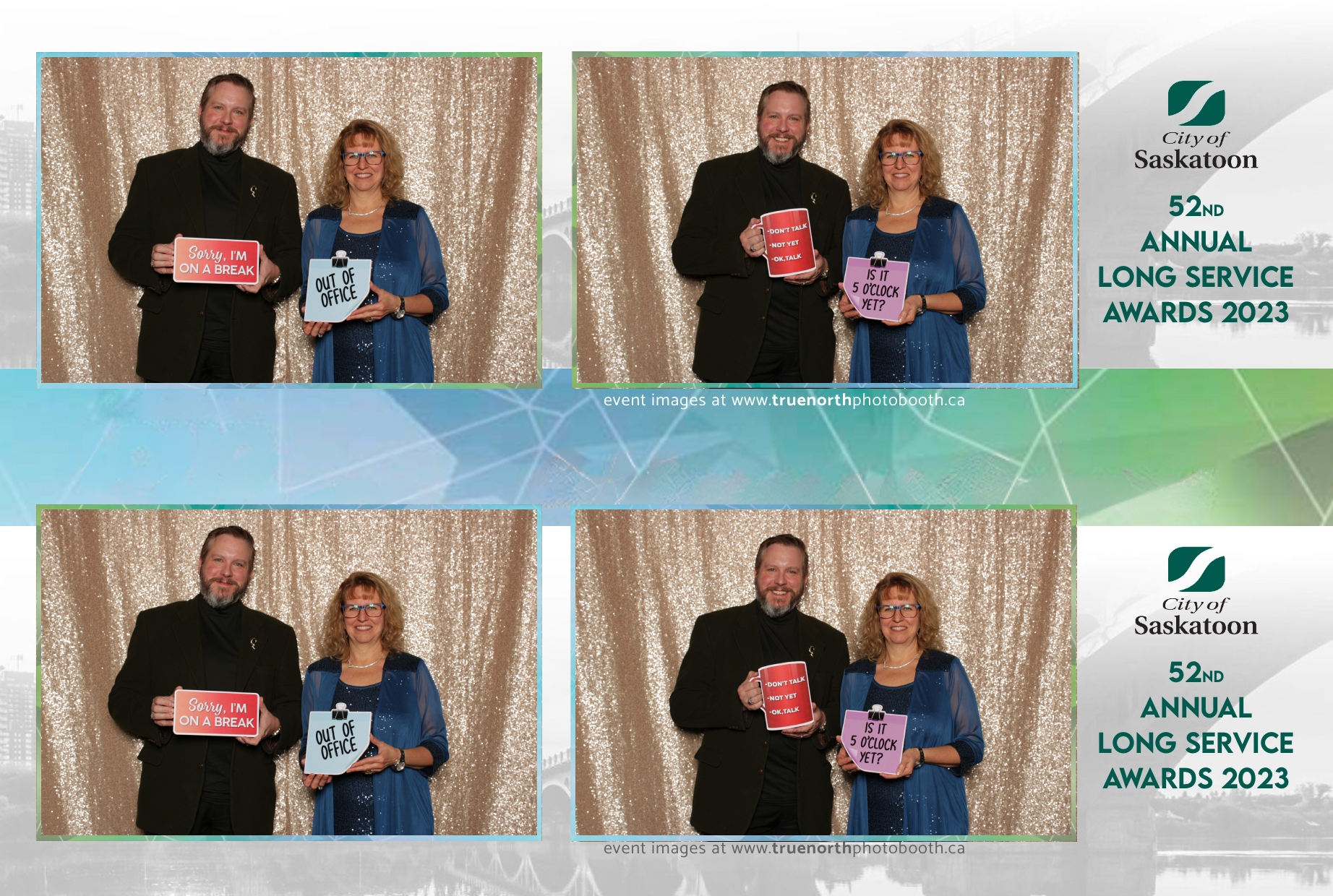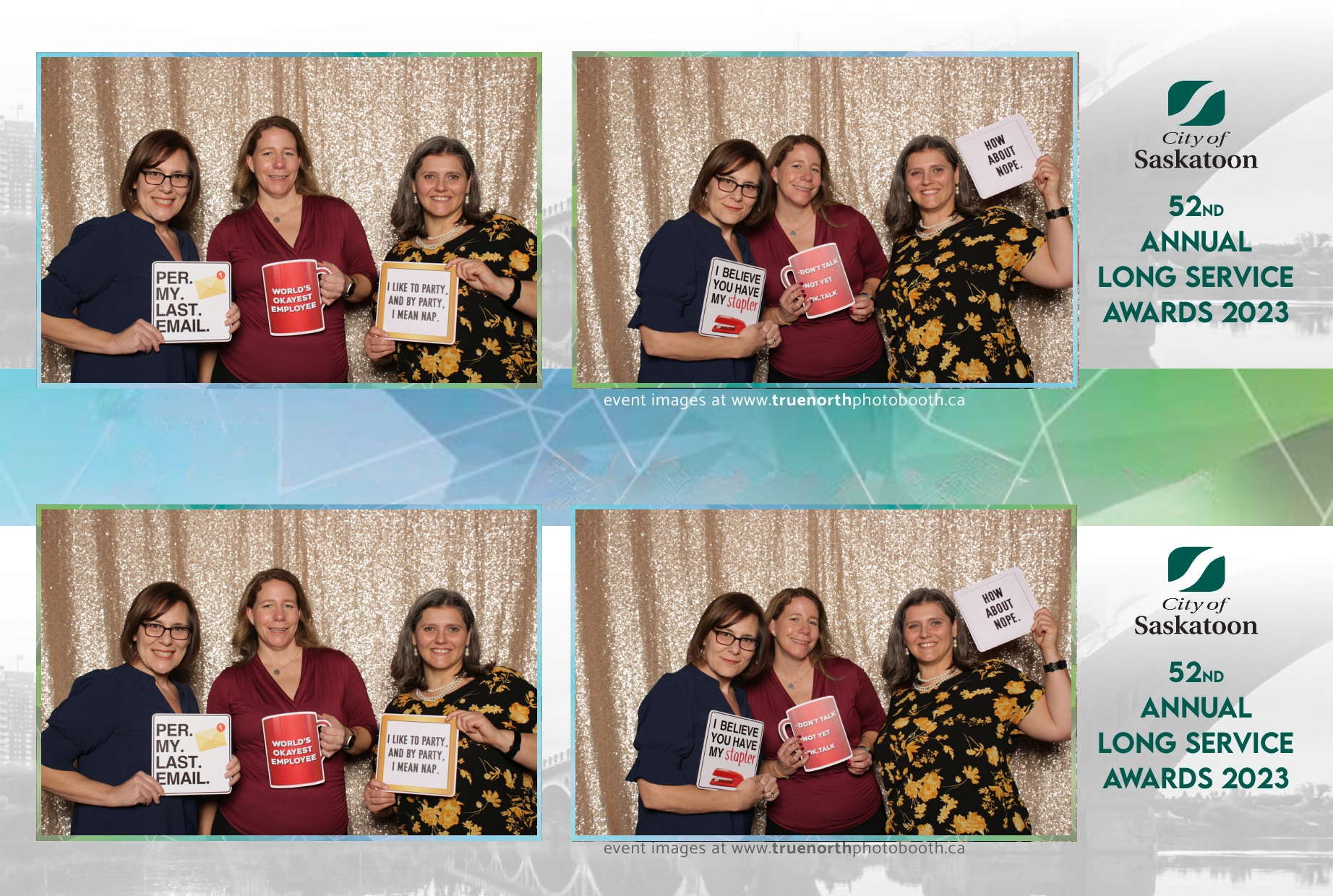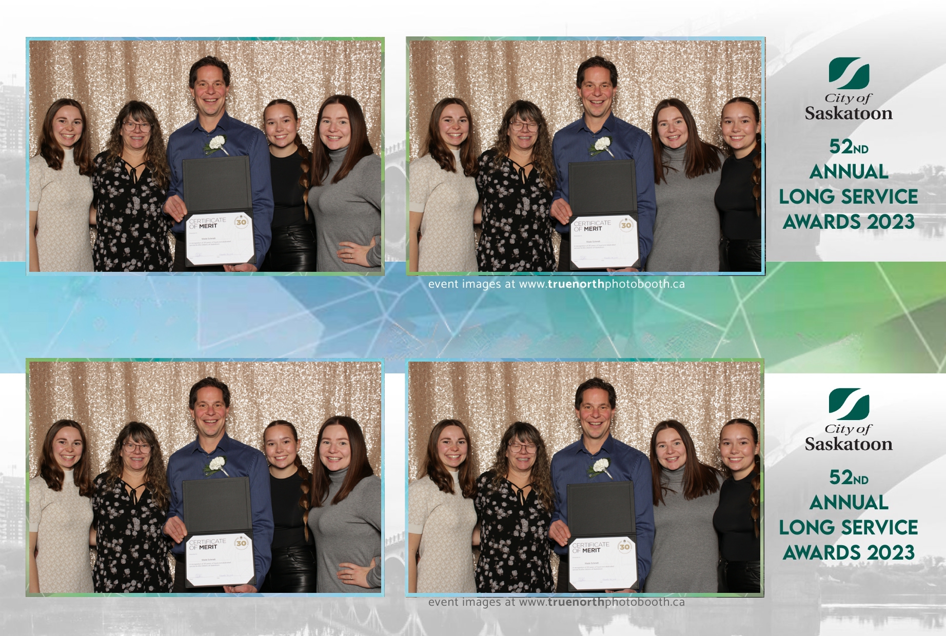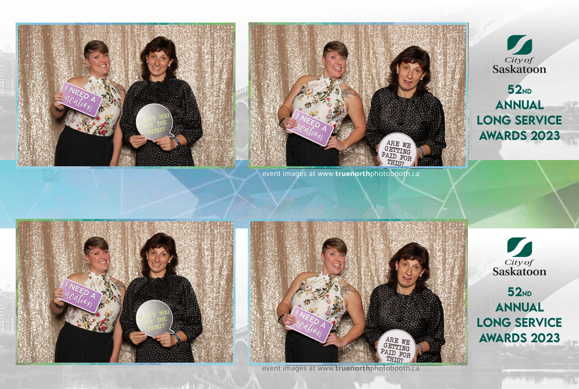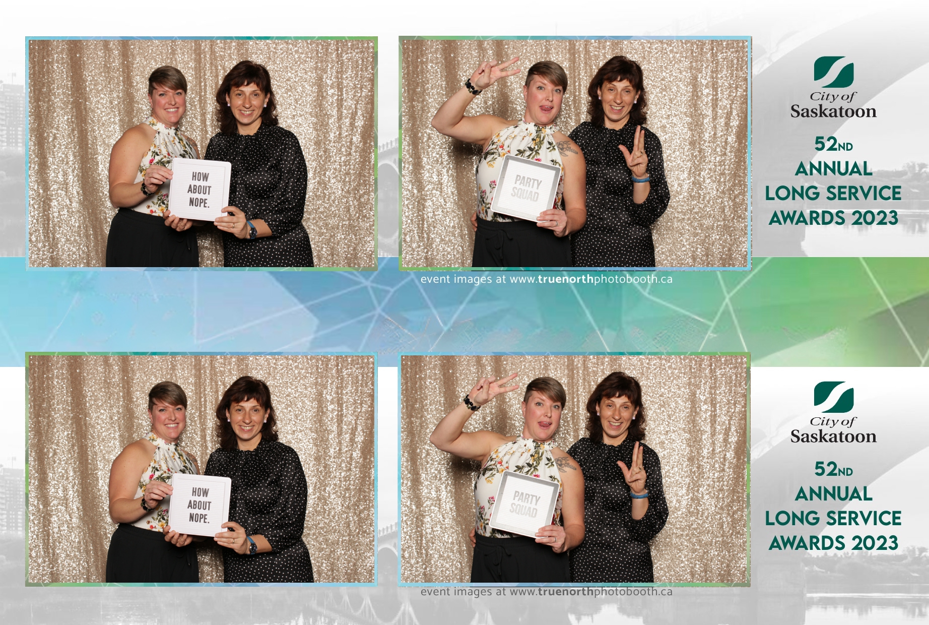 The City of Saskatoon’s Long Service Awards 2023, held at the prestigious TCU Place, was a night dedicated to honoring commitment and excellence. True North Photo Booth was privileged to be part of this remarkable event, injecting a dose of fun and glamour into the celebration. The 2X6 custom photo strips became personalized tokens of appreciation, capturing the smiles and jubilation of the dedicated employees celebrating their long-standing service.