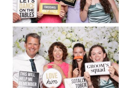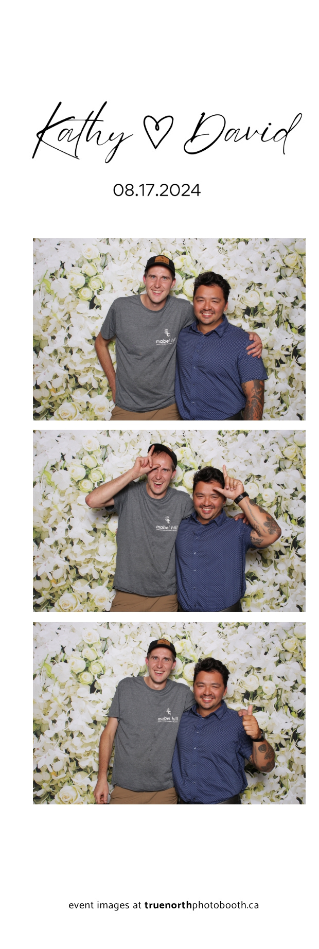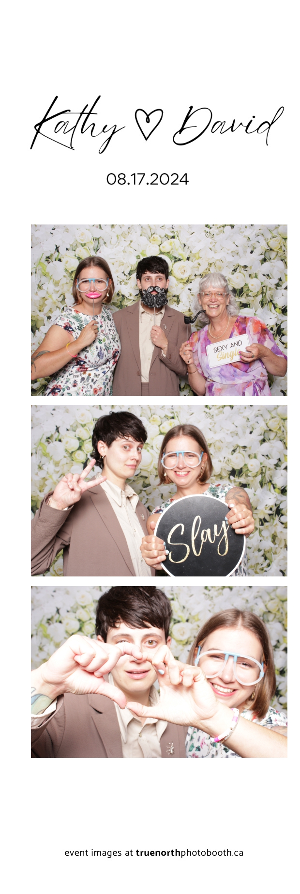 David and Kathy’s wedding was an unforgettable celebration of love, held at the picturesque Mabel Hill Farm Kitchen & Marketplace in Nipawin. The serene setting, surrounded by lush greenery and rustic charm, provided the perfect backdrop for their special day. True North Photo Booth added a touch of elegance and fun to the event with their stunning white roses and orchids pillow backdrop, creating an enchanting space for guests to capture memories. The 2X6 custom photo strips, adorned with the floral beauty of the backdrop, were a hit among attendees, offering them a sophisticated keepsake to remember the day.