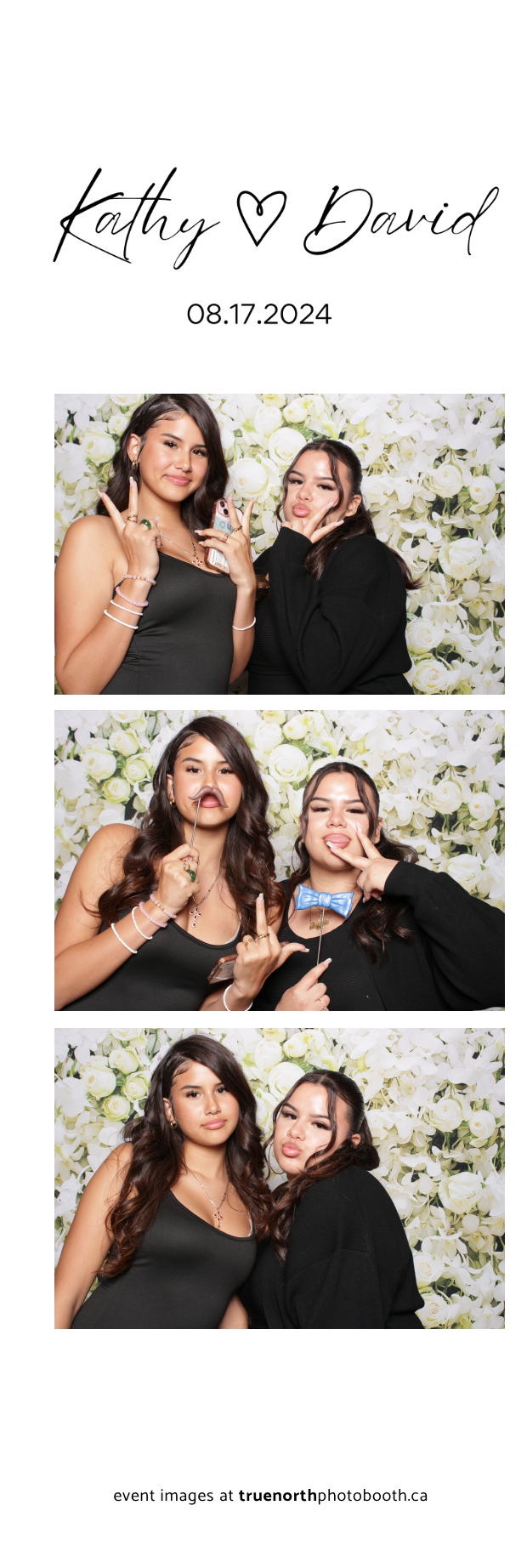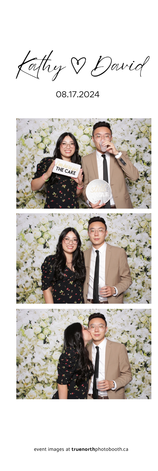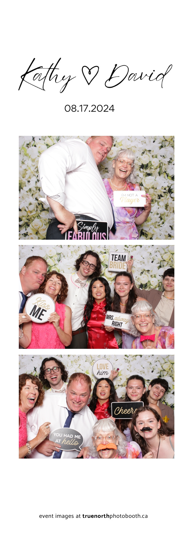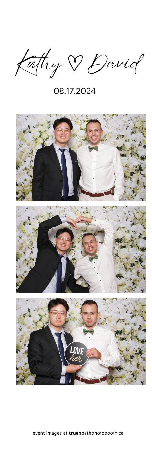 True North Photo Booth truly elevated the wedding experience, making it a highlight for everyone in attendance. The guests loved stepping into the photo booth and posing against the exquisite white roses and orchids pillow backdrop, resulting in beautifully crafted 2X6 custom photo strips that perfectly encapsulated the romantic ambiance of David and Kathy’s celebration. The photo booth added an extra layer of joy and elegance to the event, ensuring that the memories of this enchanting day will be cherished forever.