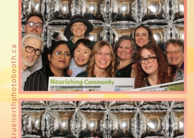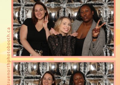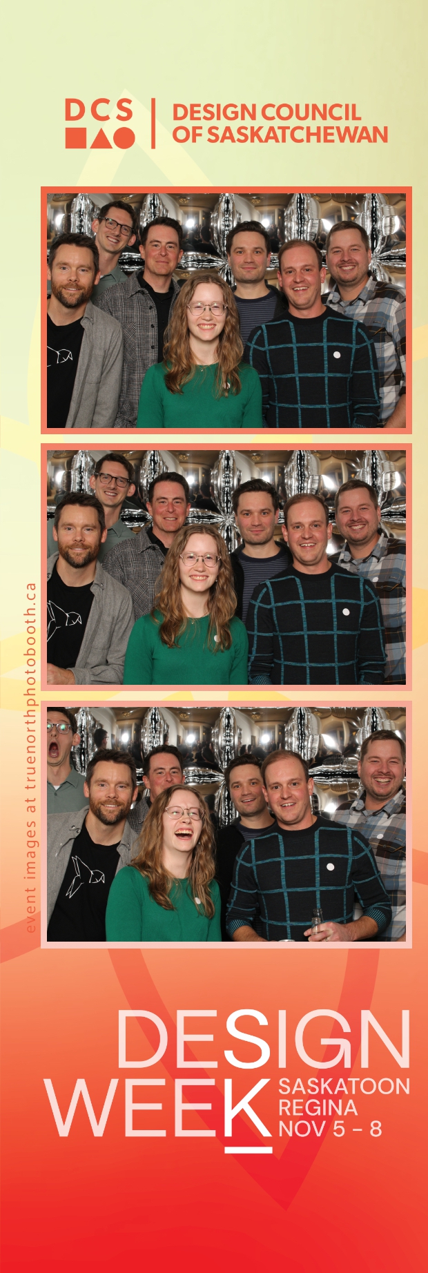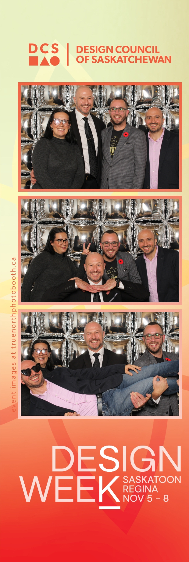 Attendees had the chance to enjoy an interactive photo booth, featuring a 2X6 custom photo strip and a sleek black pillow backdrop enhanced with unique and artistic silver balloon arrangements. This creative twist provided a stunning visual element that perfectly matched the design-focused theme, allowing guests to capture stylish and memorable moments during this dynamic Saskatoon event.