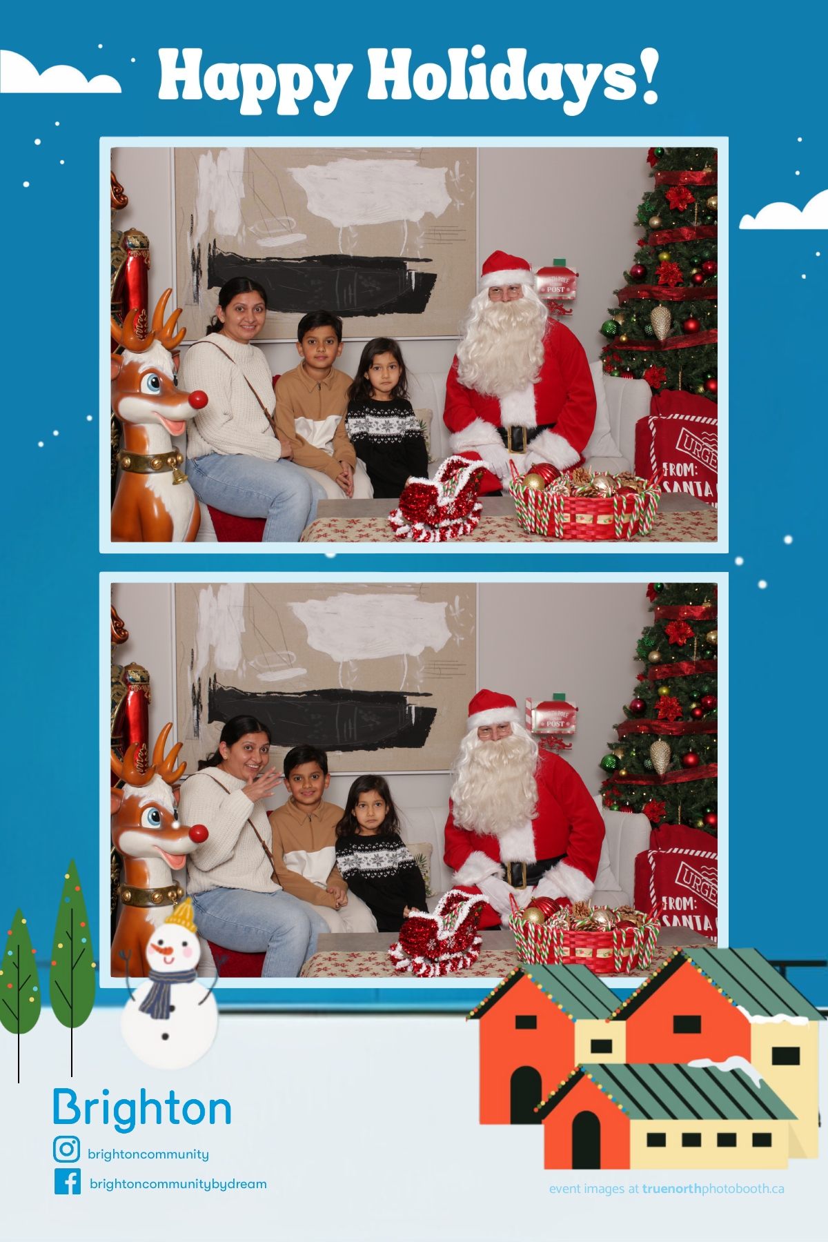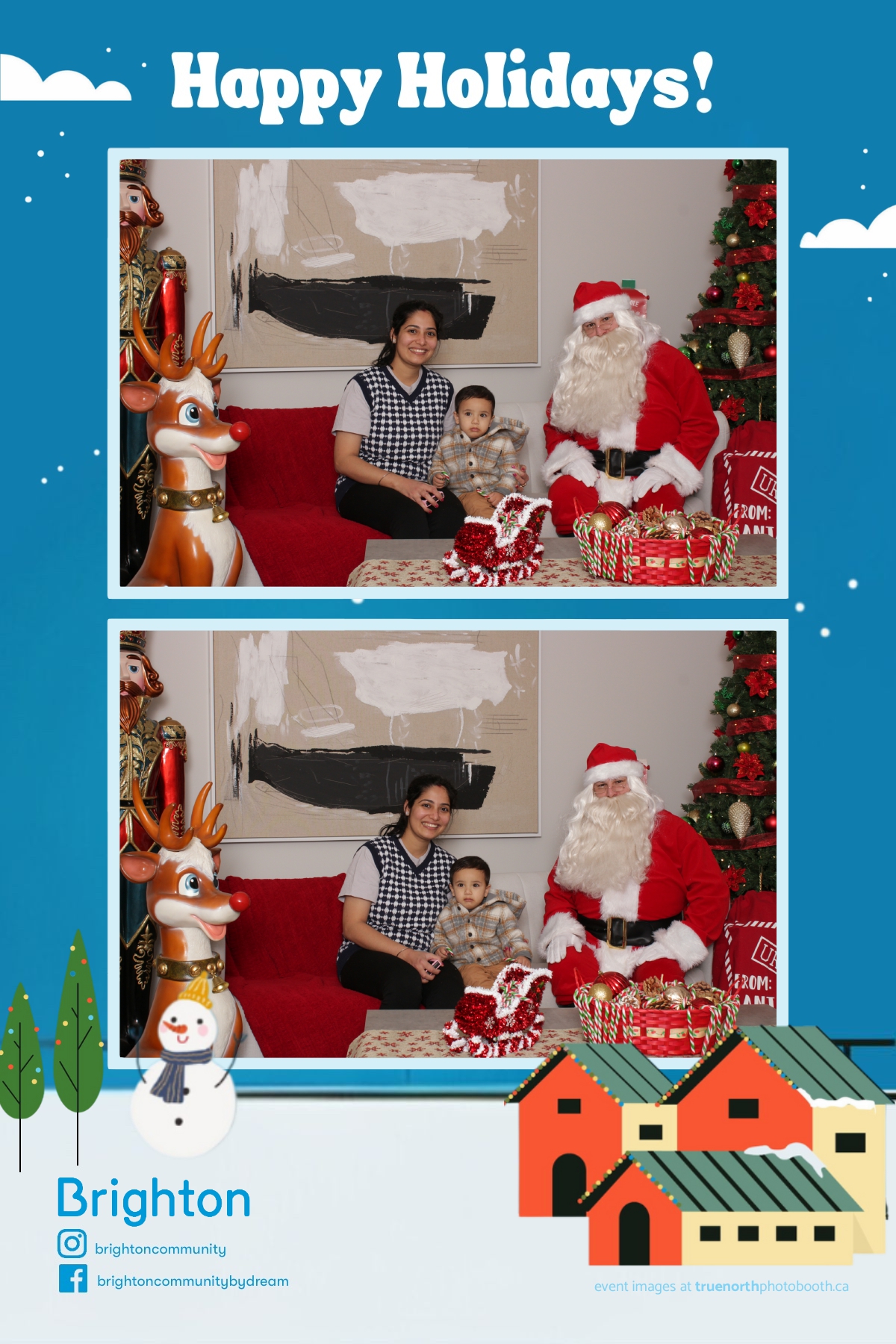 True North Photo Booth was thrilled to add a touch of festive fun to the celebration with our 4X6 custom photo strip featuring a custom Christmas scene backdrop. Families and kids had a blast striking their best holiday poses with Santa, walking away with picture-perfect keepsakes to cherish for years to come. It was a joy to be part of such a heartwarming event that highlighted the spirit of the season while showcasing the exceptional design of the Ehrenburg show home.