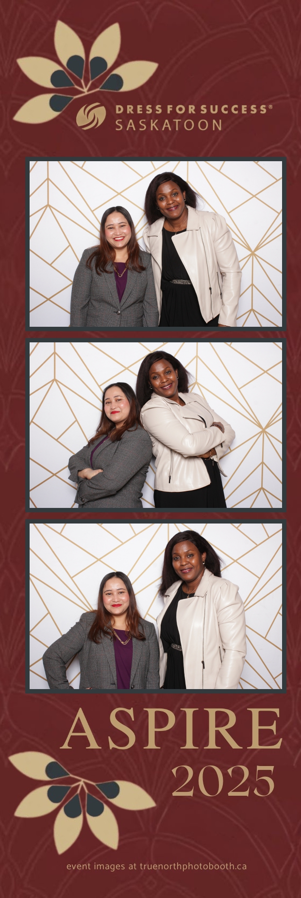Adding to the excitement, True North Photo Booth was thrilled to be part of the event, capturing joyful memories with a 2X6 custom photo strip featuring the stunning white gold geometric pillow backdrop. Guests loved striking their best poses and taking home elegant keepsakes from the evening. It was an absolute pleasure for True North Photo Booth to contribute to such a meaningful cause, celebrating strength, success, and the power of community!