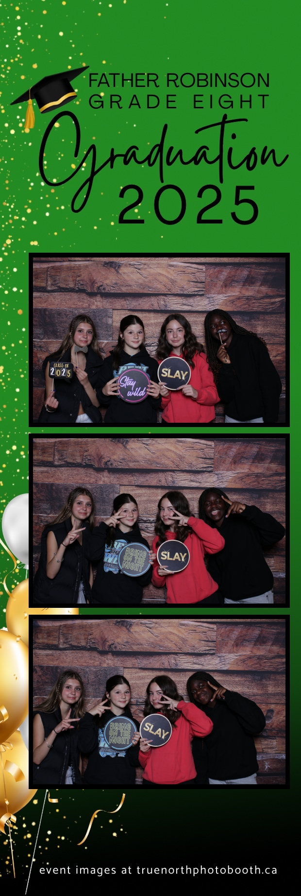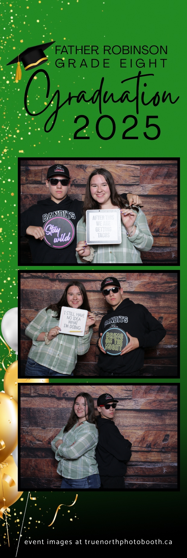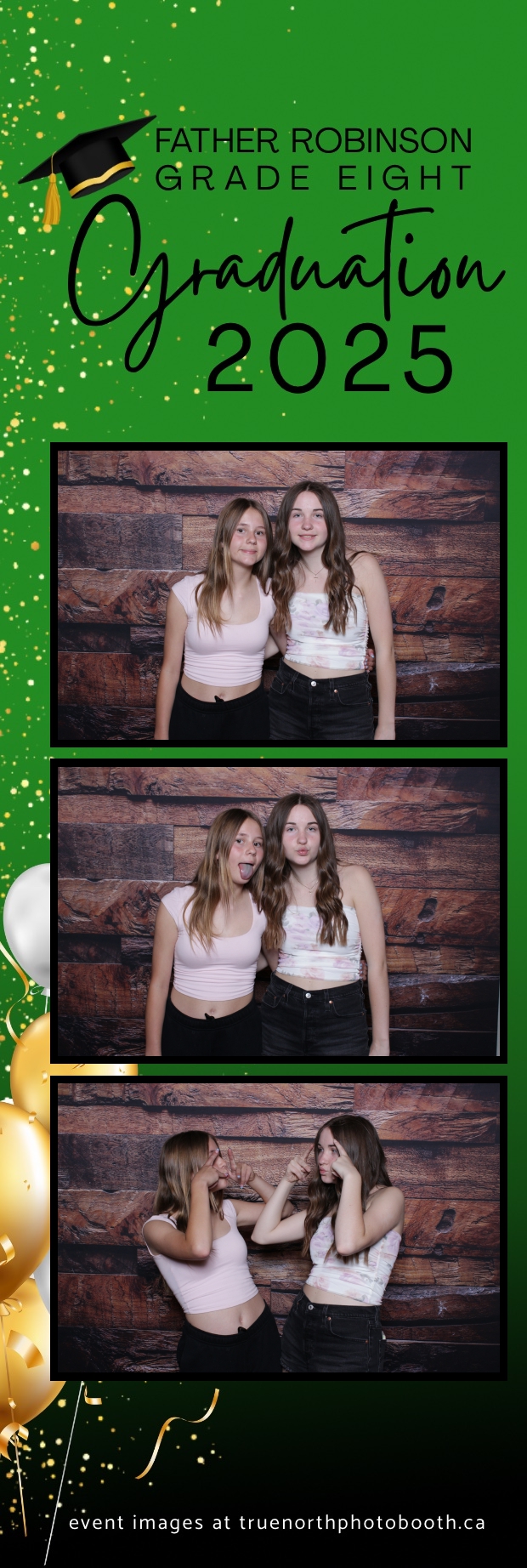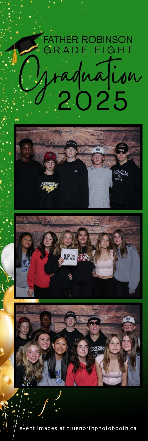 Father Robinson’s Grade 8 Grad 2025 was an unforgettable celebration filled with joy, laughter, and milestone moments—all set against the charming backdrop of Champetre County – Saskatoon Wild West Country Ranch in St-Denis. True North Photo Booth was thrilled to be part of the fun, providing a 2X6 custom photo strip experience that captured every smile and silly pose. The rustic barn board pillow backdrop perfectly matched the venue’s cozy, countryside vibe and added a warm, nostalgic touch to each photo strip.