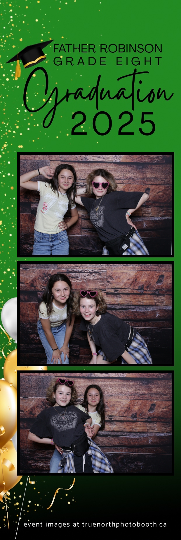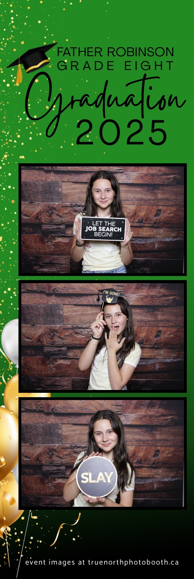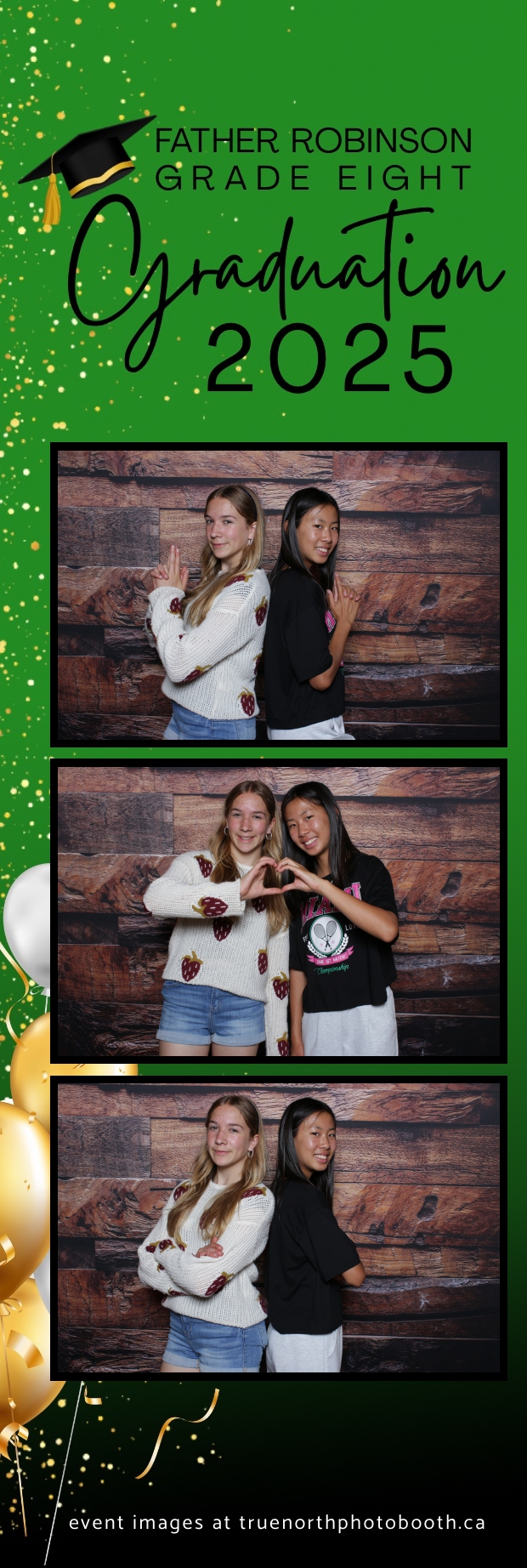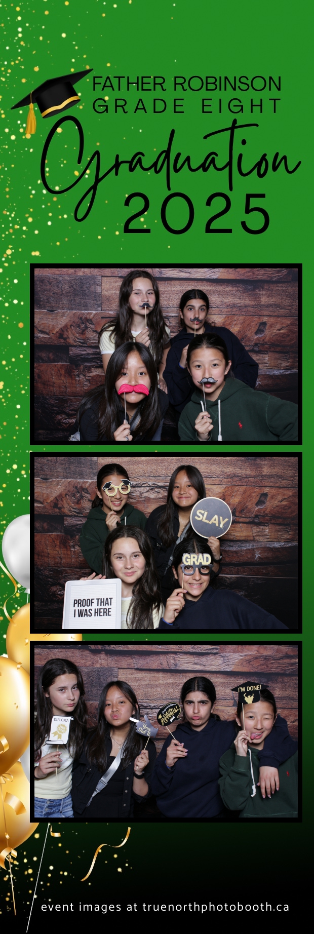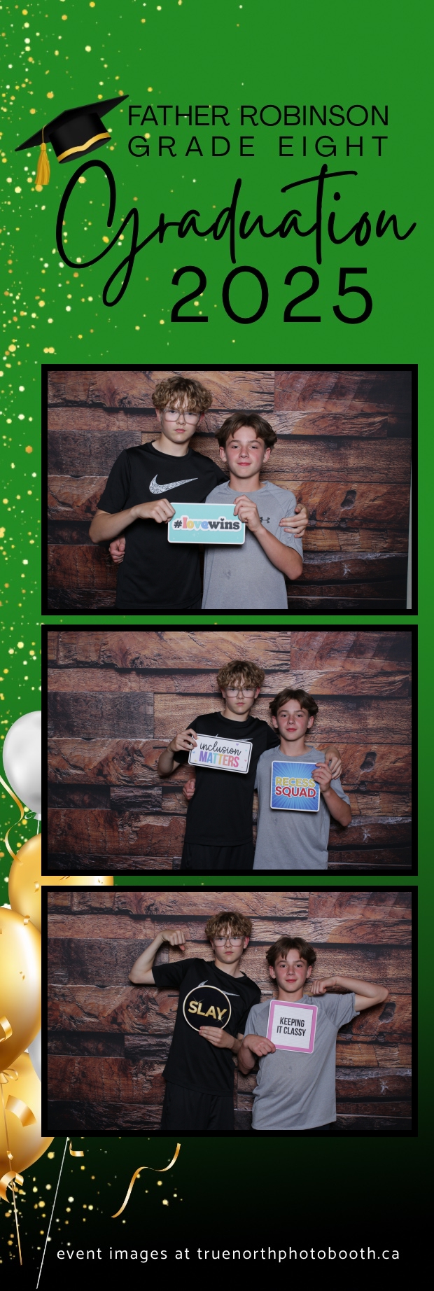 Father Robinson’s Grade 8 Grad 2025 was an unforgettable celebration filled with joy, laughter, and milestone moments—all set against the charming backdrop of Champetre County – Saskatoon Wild West Country Ranch in St-Denis. True North Photo Booth was thrilled to be part of the fun, providing a 2X6 custom photo strip experience that captured every smile and silly pose. The rustic barn board pillow backdrop perfectly matched the venue’s cozy, countryside vibe and added a warm, nostalgic touch to each photo strip.