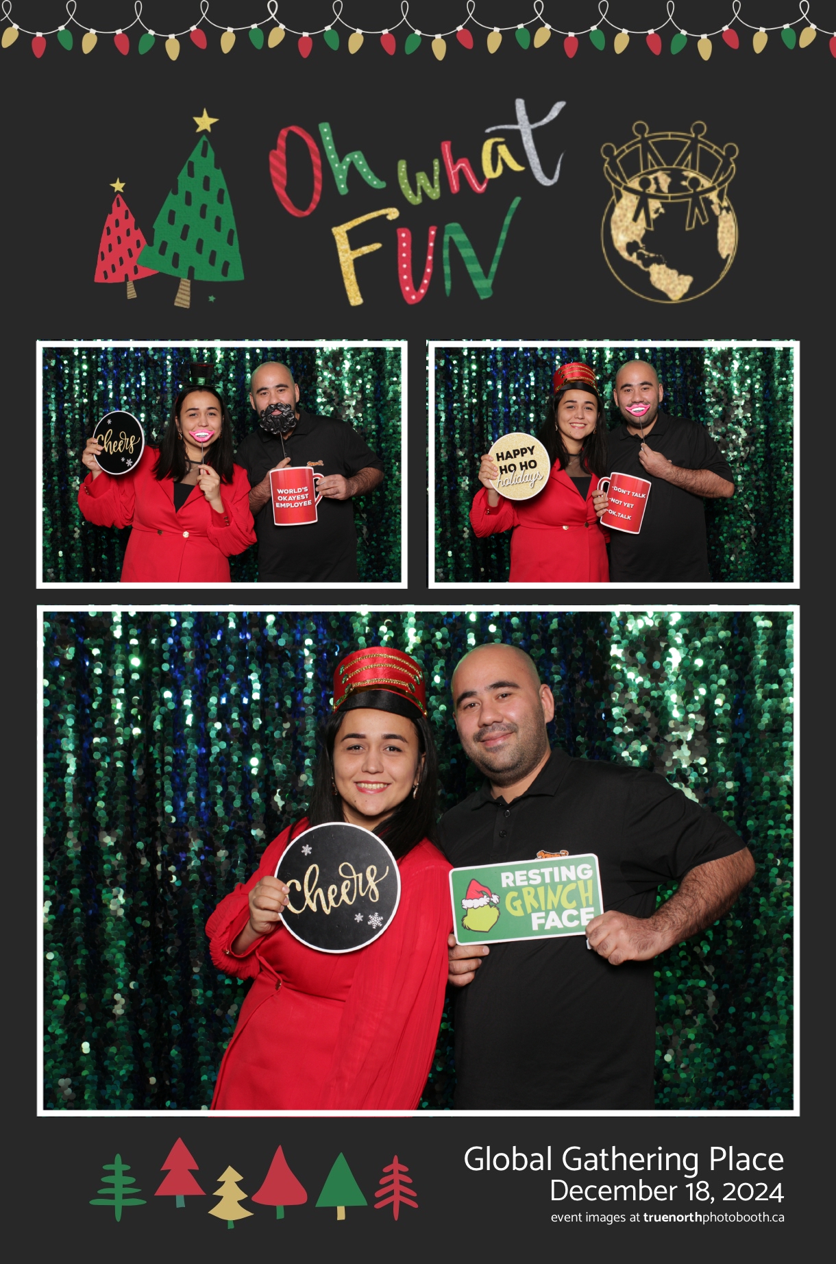 True North Photo Booth was thrilled to be part of this incredible evening, adding an extra dash of fun with our 4X6 custom photo strip featuring a stunning Peacock sequin backdrop. Guests enjoyed creating cherished memories, striking poses that reflected their festive joy and unity. It was an absolute privilege to help capture the magic of this celebration, where the warmth of the holiday season and the power of inclusivity came together so beautifully!