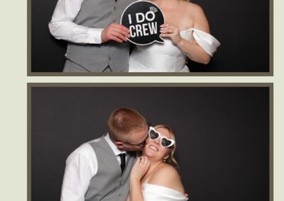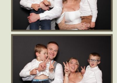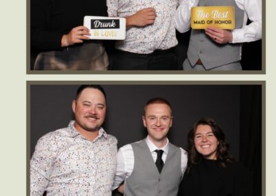 The rustic charm of the Barn-board pillow backdrop paired perfectly with the custom keepsakes, as every guest walked away with a 2X6 custom photo strip to remember the celebration. The photo experience added an extra layer of fun and excitement to an already magical evening, ensuring that Kailey & Zac’s special day will be cherished by everyone who attended.