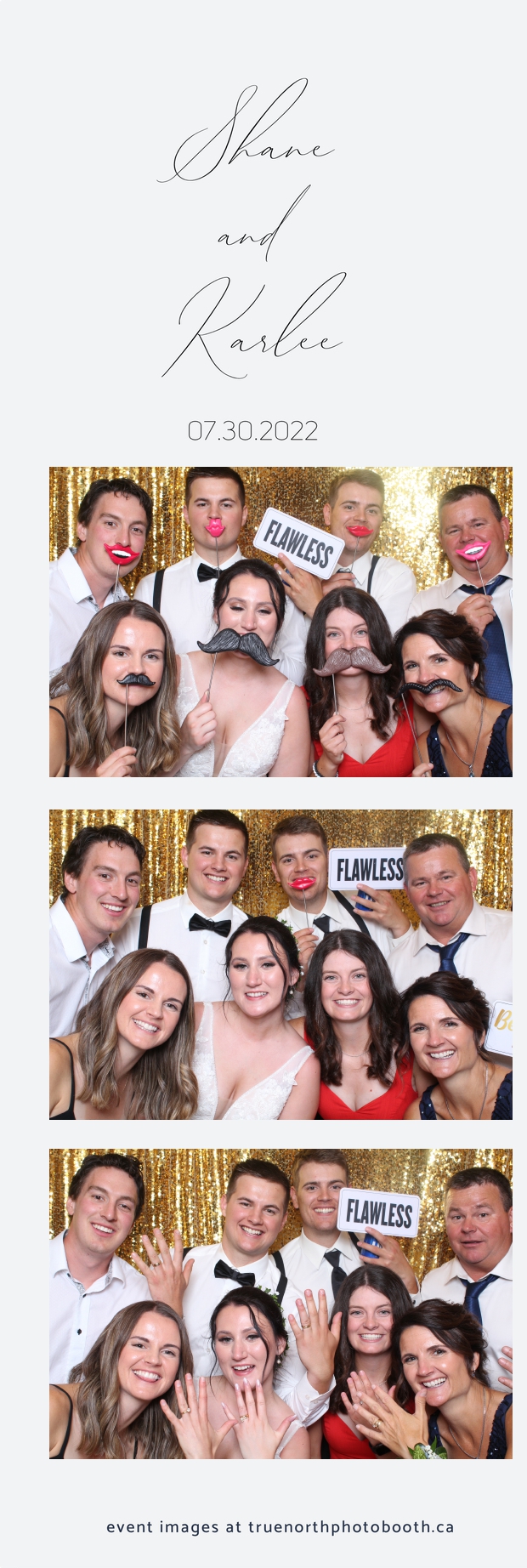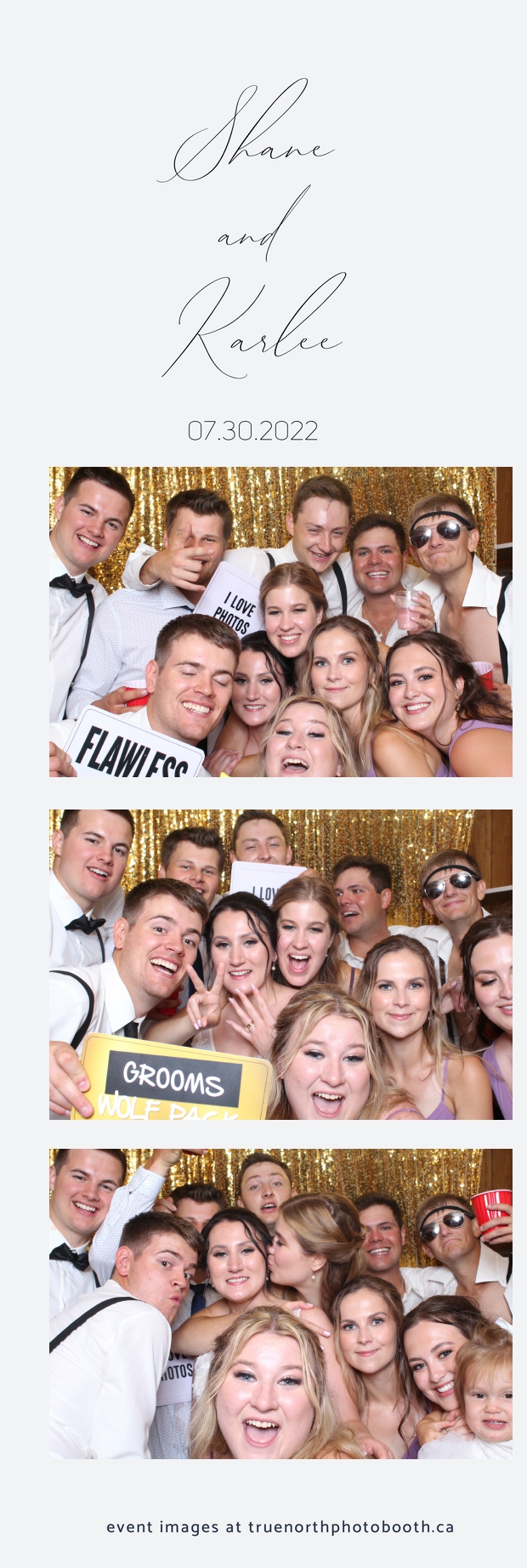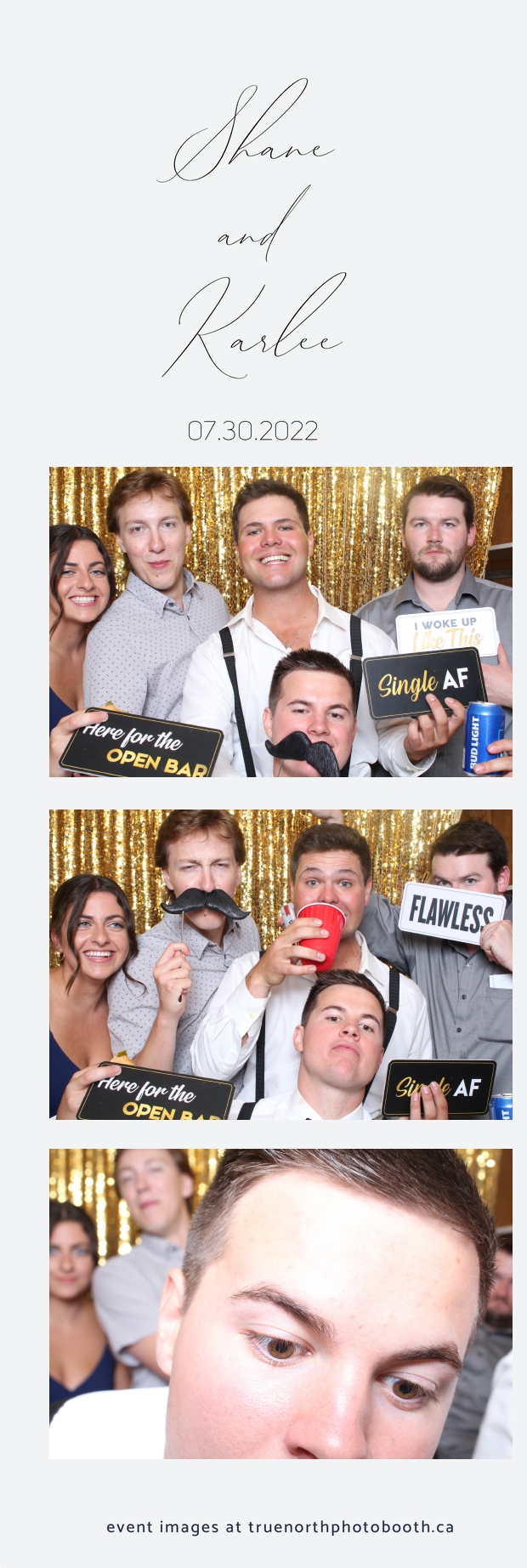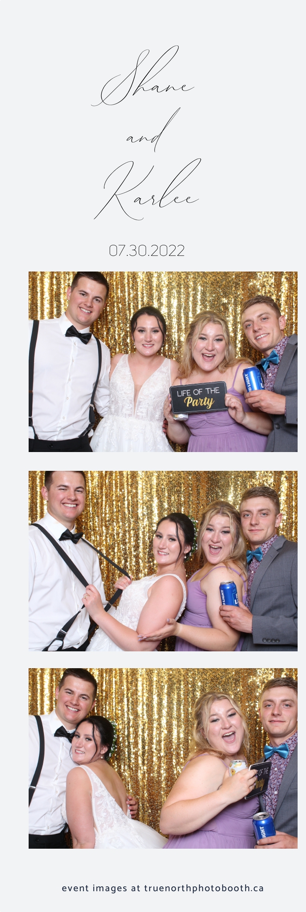It was all a dream! Karlee & Shane’s crew of family & friends were unreal. Armed with our gold sequin backdrops, props and their creativity; everyone was at their best. Their stunning 2X6 photo strip not only matched their wedding colours, but also was a highlight for their guests to receive. The few hours that we spent with this group went by so quickly. It was such a pleasure to be part of this couple’s wedding day. All the best Karlee & Shane as you begin this part of your journey together.