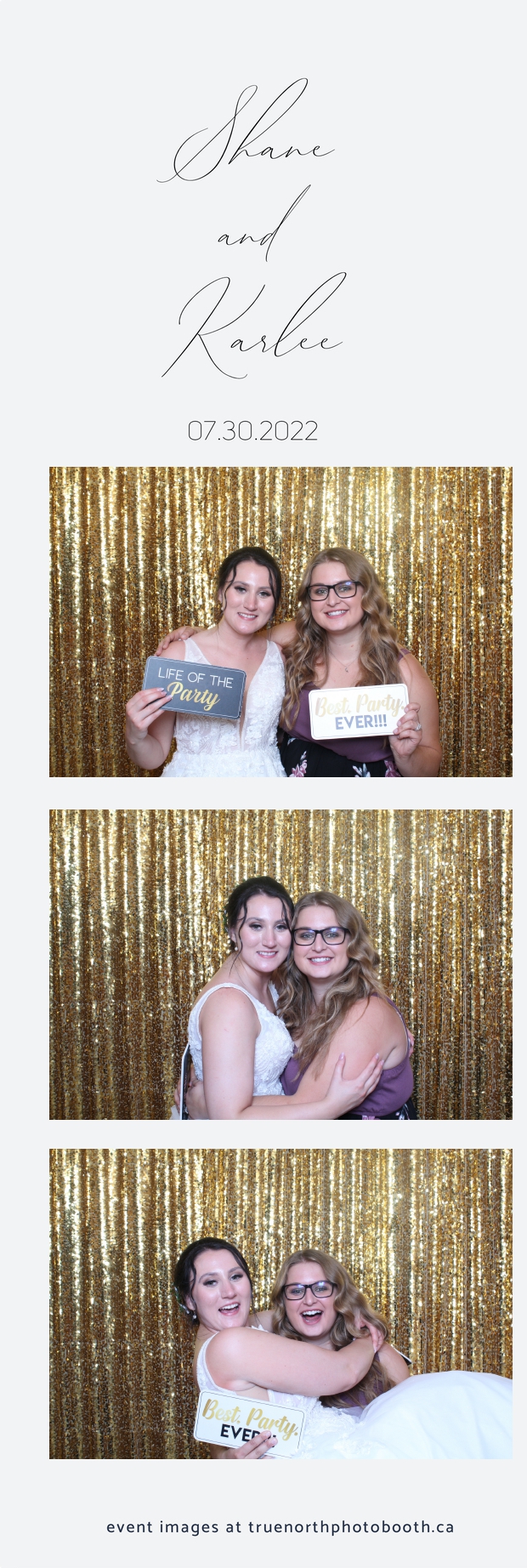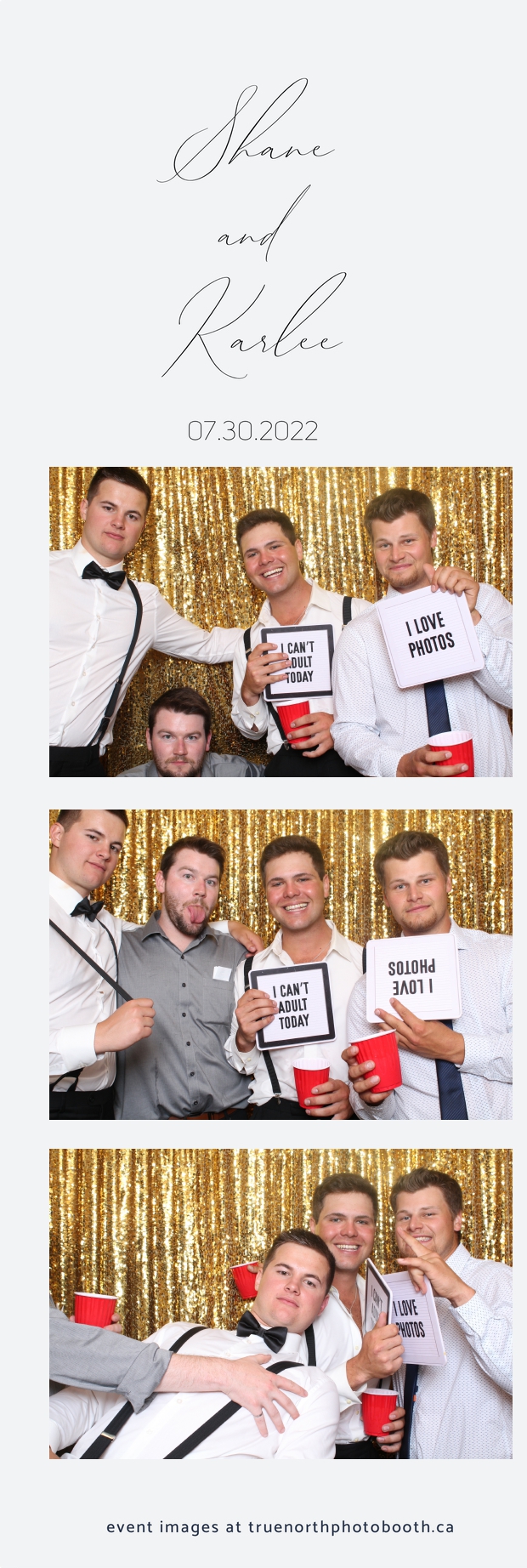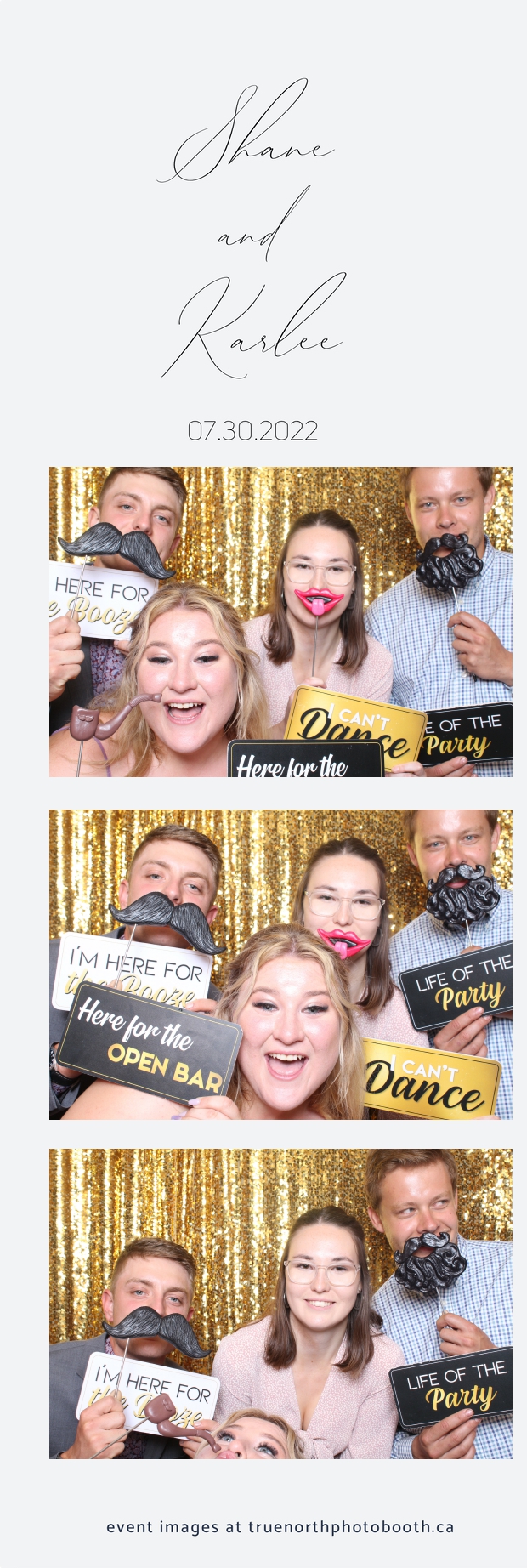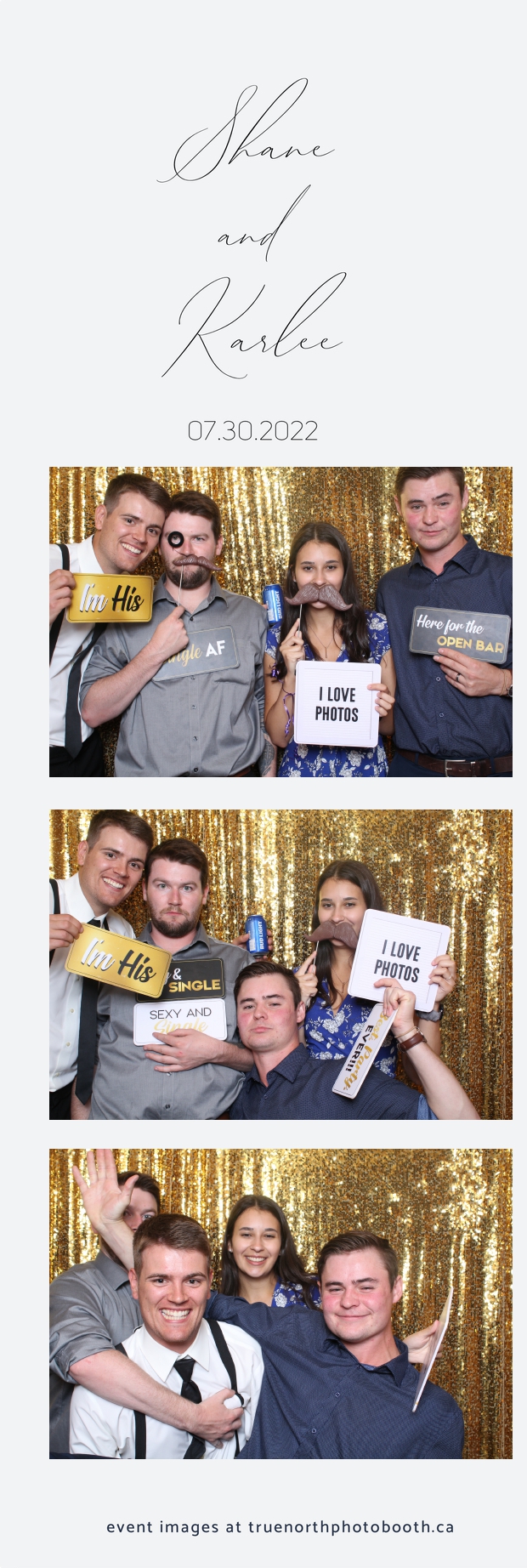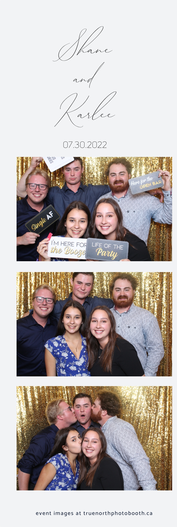 It was all a dream! Karlee & Shane’s crew of family & friends were unreal. Armed with our gold sequin backdrops, props and their creativity; everyone was at their best. Their stunning 2X6 photo strip not only matched their wedding colours, but also was a highlight for their guests to receive. The few hours that we spent with this group went by so quickly. It was such a pleasure to be part of this couple’s wedding day. All the best Karlee & Shane as you begin this part of your journey together.