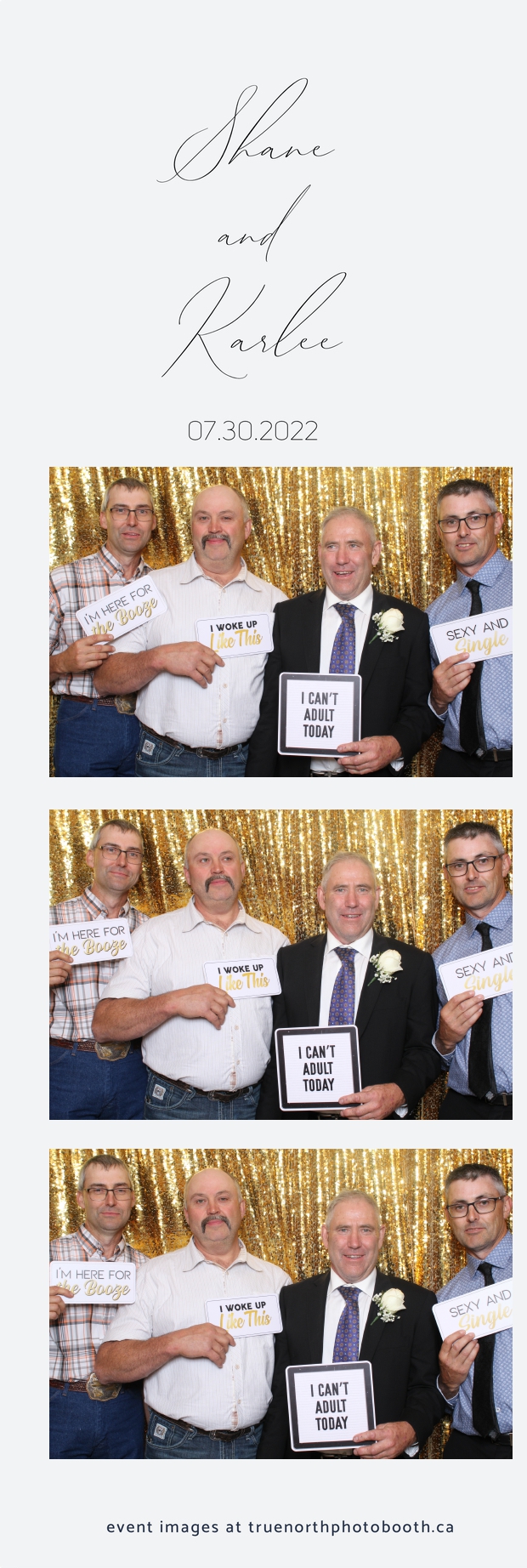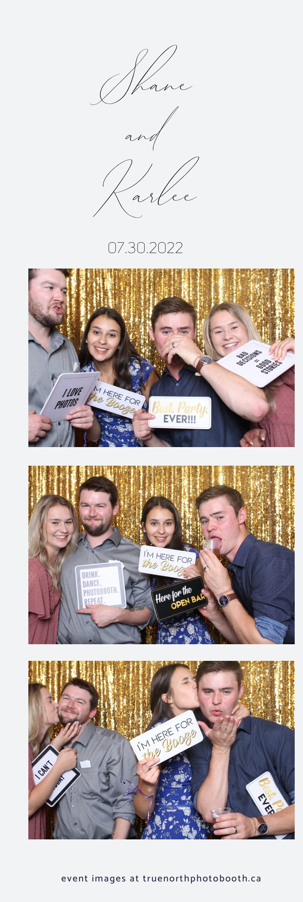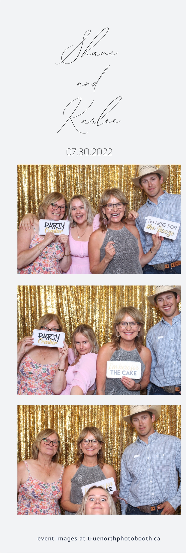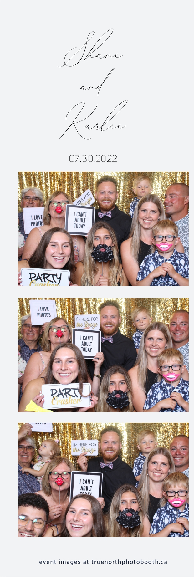 It was all a dream! Karlee & Shane’s crew of family & friends were unreal. Armed with our gold sequin backdrops, props and their creativity; everyone was at their best. Their stunning 2X6 photo strip not only matched their wedding colours, but also was a highlight for their guests to receive. The few hours that we spent with this group went by so quickly. It was such a pleasure to be part of this couple’s wedding day. All the best Karlee & Shane as you begin this part of your journey together.