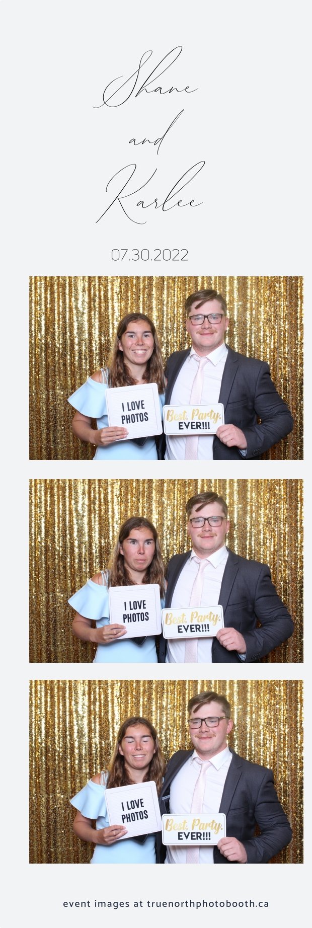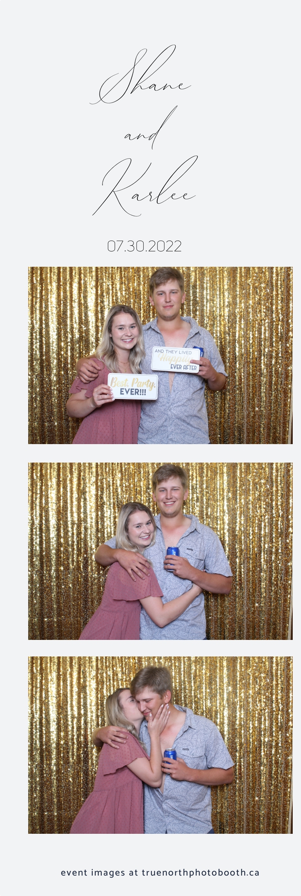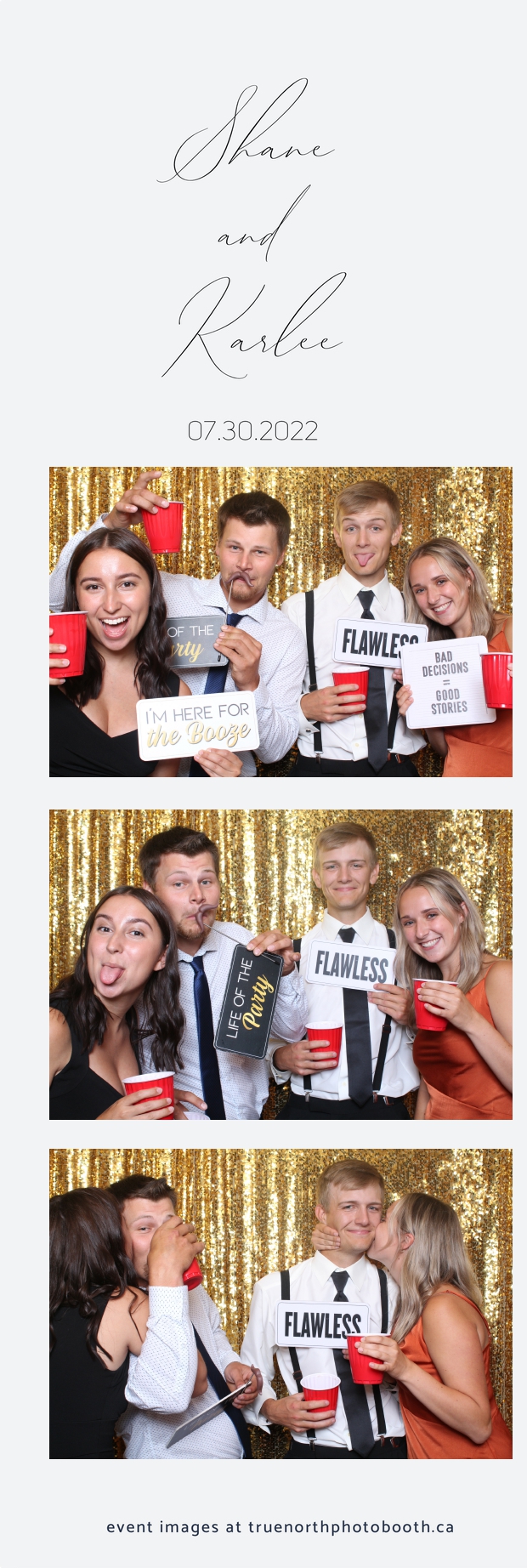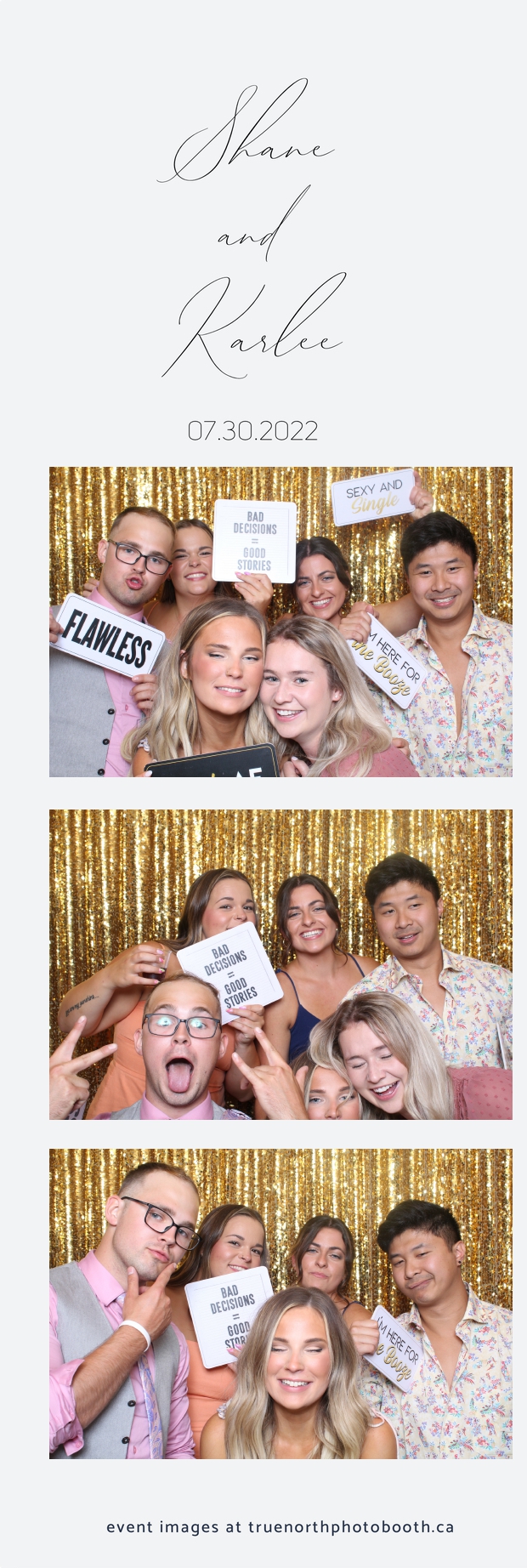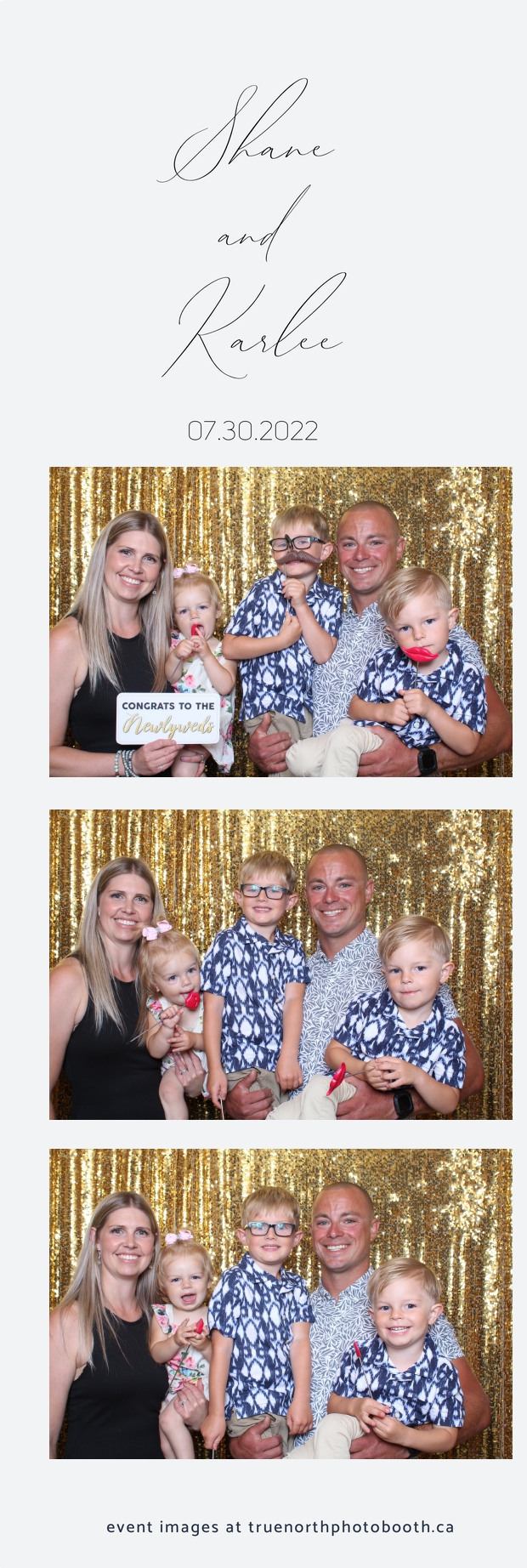 It was all a dream! Karlee & Shane’s crew of family & friends were unreal. Armed with our gold sequin backdrops, props and their creativity; everyone was at their best. Their stunning 2X6 photo strip not only matched their wedding colours, but also was a highlight for their guests to receive. The few hours that we spent with this group went by so quickly. It was such a pleasure to be part of this couple’s wedding day. All the best Karlee & Shane as you begin this part of your journey together.