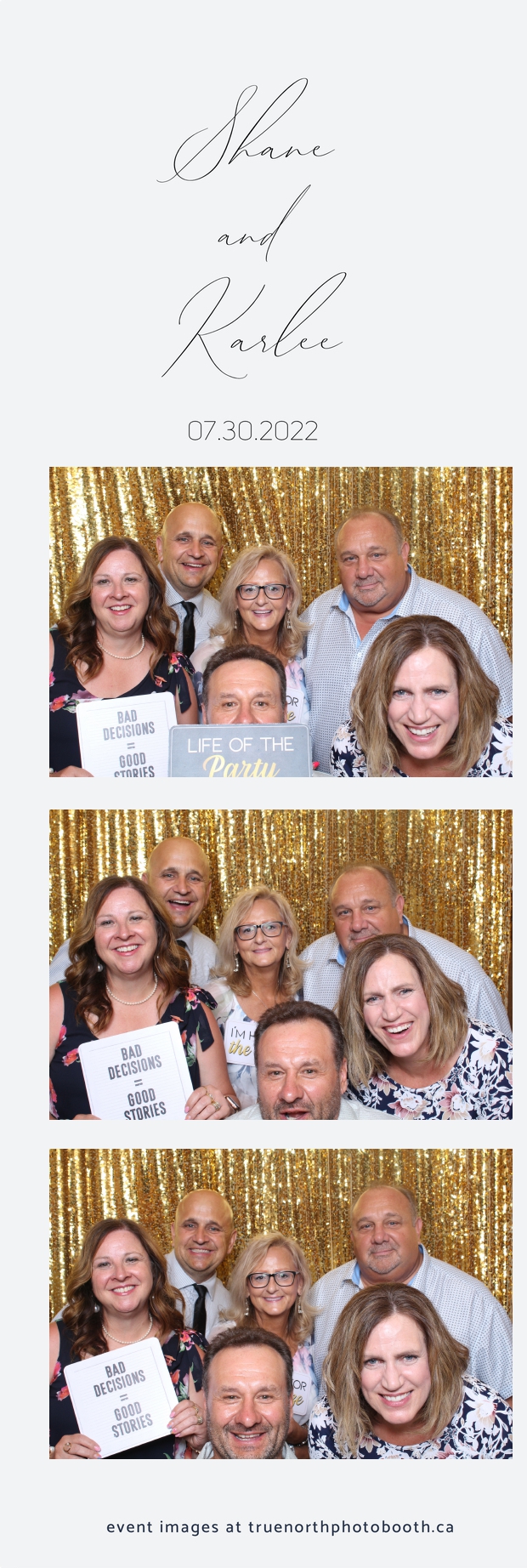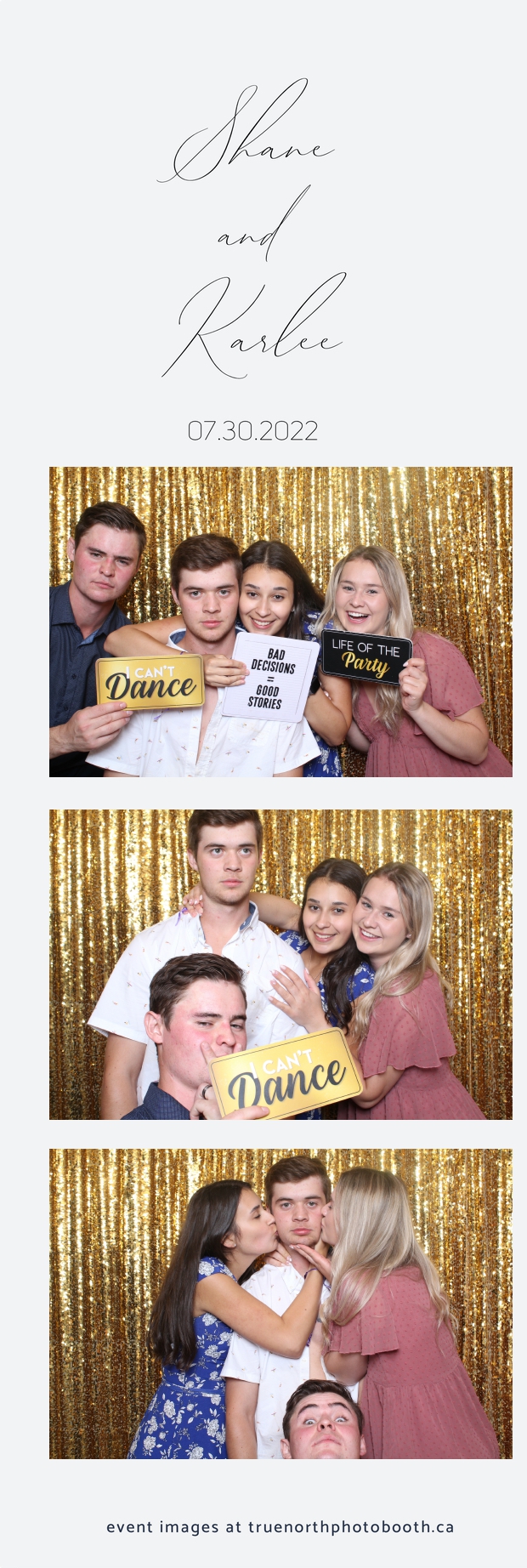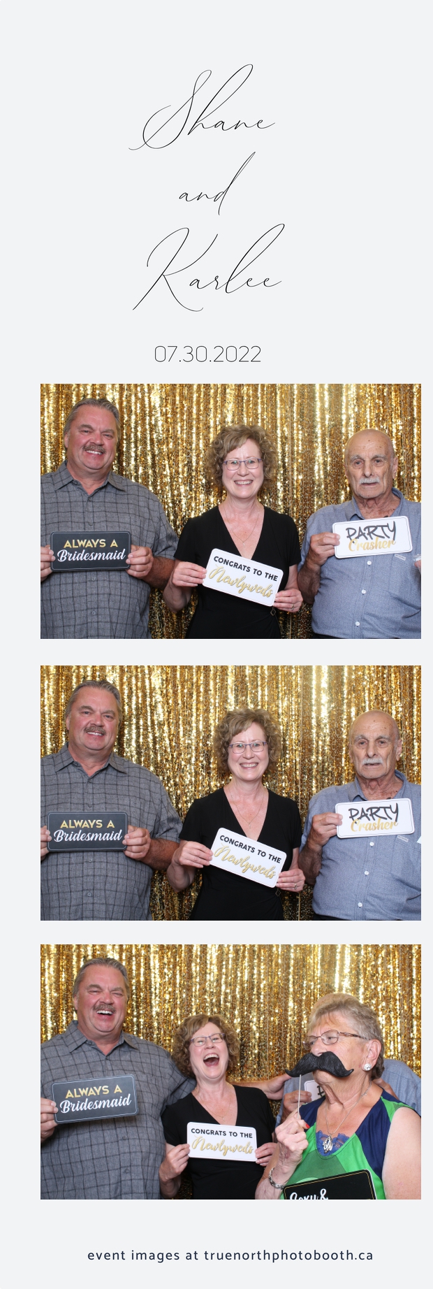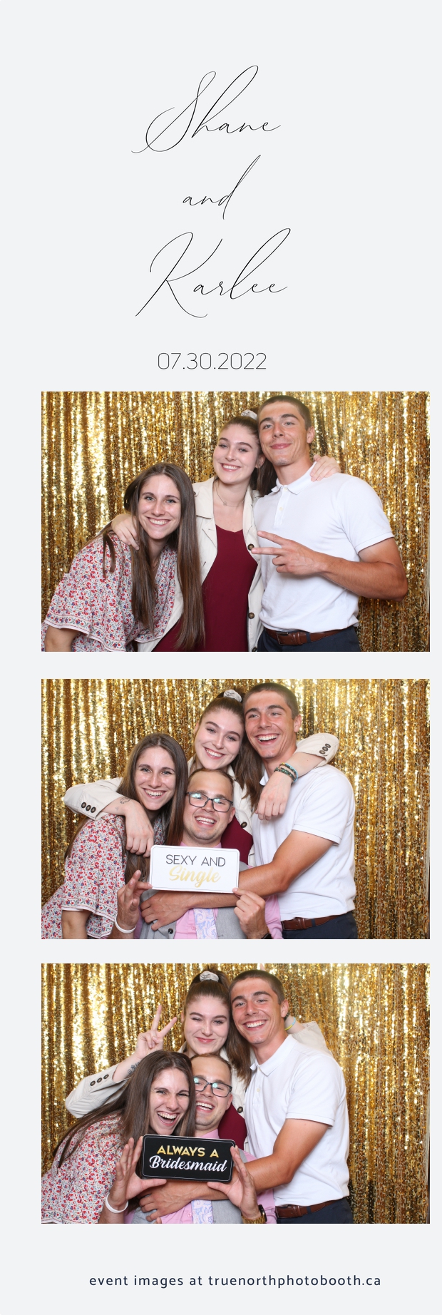 It was all a dream! Karlee & Shane’s crew of family & friends were unreal. Armed with our gold sequin backdrops, props and their creativity; everyone was at their best. Their stunning 2X6 photo strip not only matched their wedding colours, but also was a highlight for their guests to receive. The few hours that we spent with this group went by so quickly. It was such a pleasure to be part of this couple’s wedding day. All the best Karlee & Shane as you begin this part of your journey together.