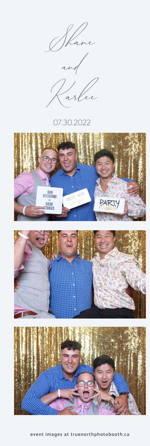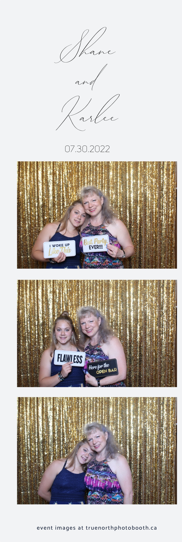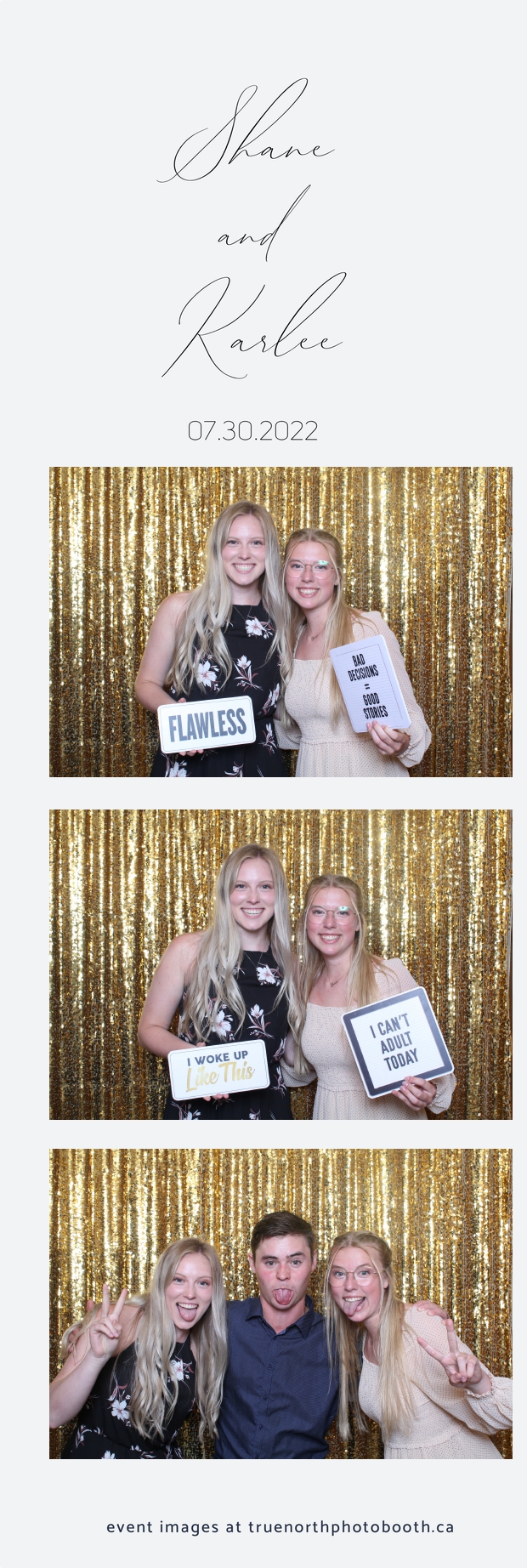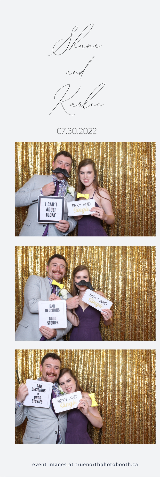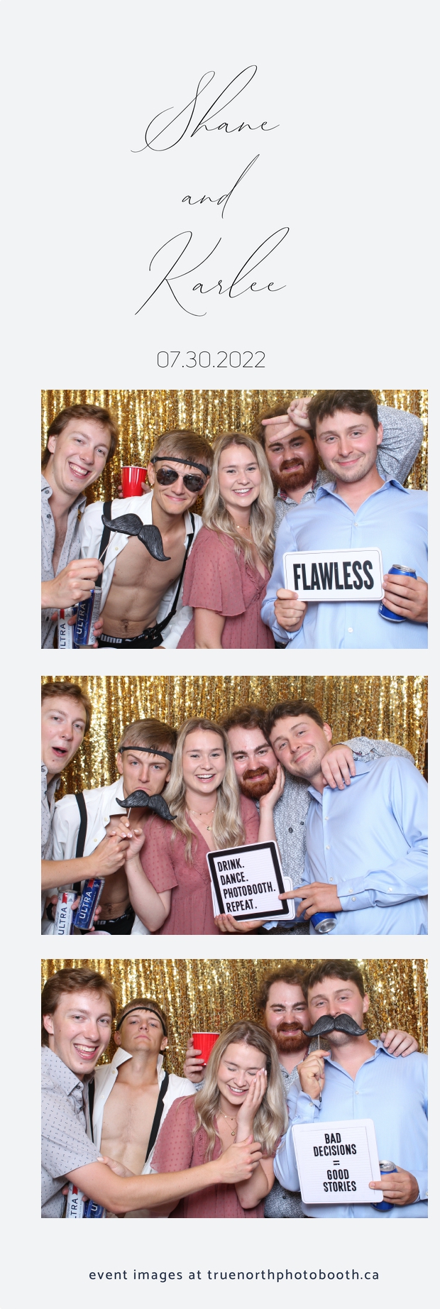 It was all a dream! Karlee & Shane’s crew of family & friends were unreal. Armed with our gold sequin backdrops, props and their creativity; everyone was at their best. Their stunning 2X6 photo strip not only matched their wedding colours, but also was a highlight for their guests to receive. The few hours that we spent with this group went by so quickly. It was such a pleasure to be part of this couple’s wedding day. All the best Karlee & Shane as you begin this part of your journey together.