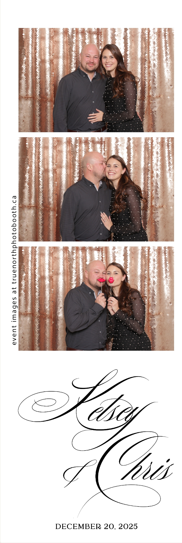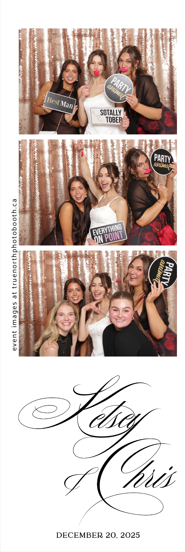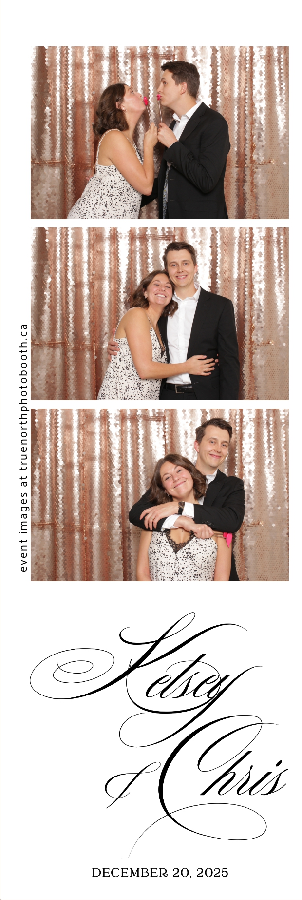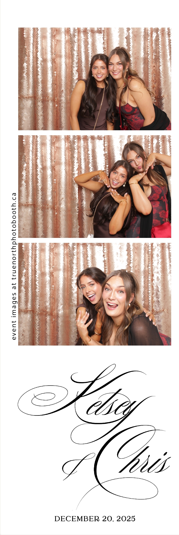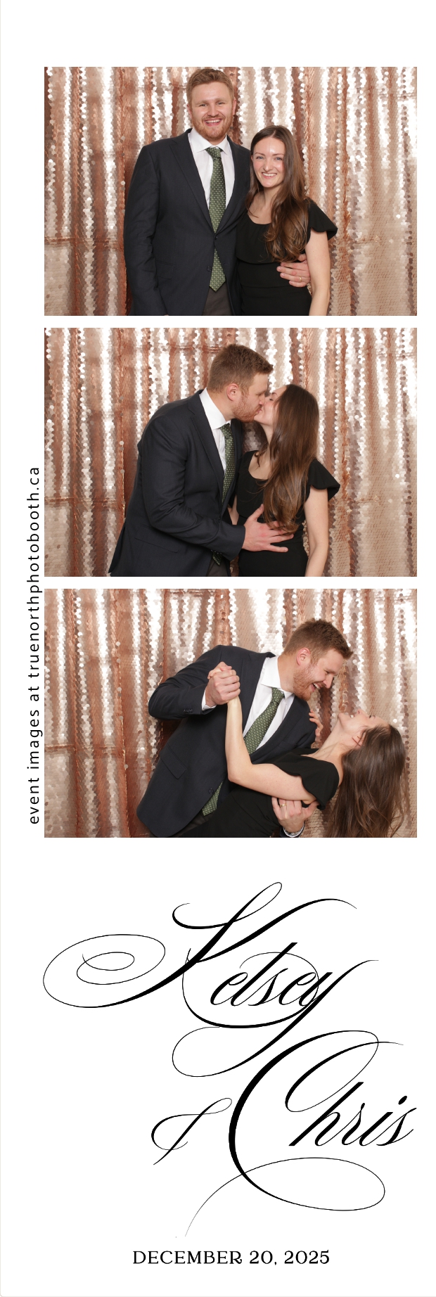 Guests enjoyed capturing memories at the interactive photo booth, featuring 2X6 custom photo strips prints and a stunning champagne sequin backdrop that added a soft, romantic glow to every photo. The fun and stylish photo experience gave everyone meaningful keepsakes to take home, making Kelsey & Chris’s special day even more memorable.