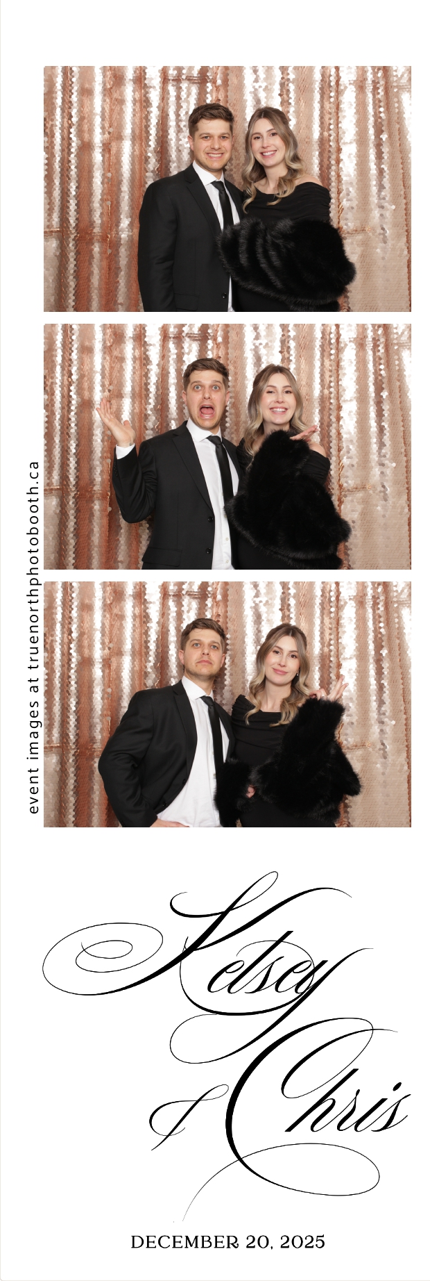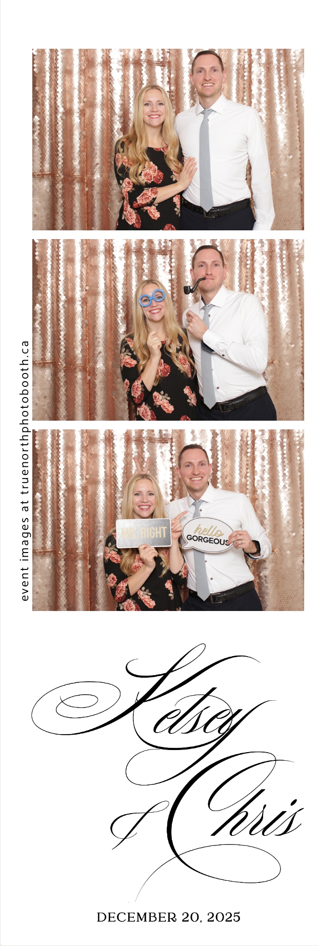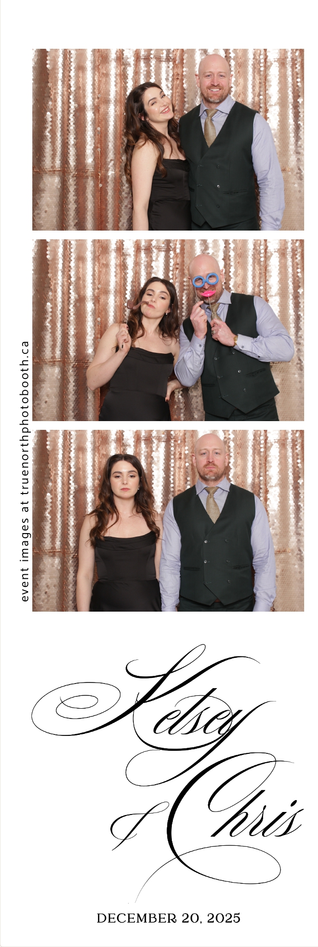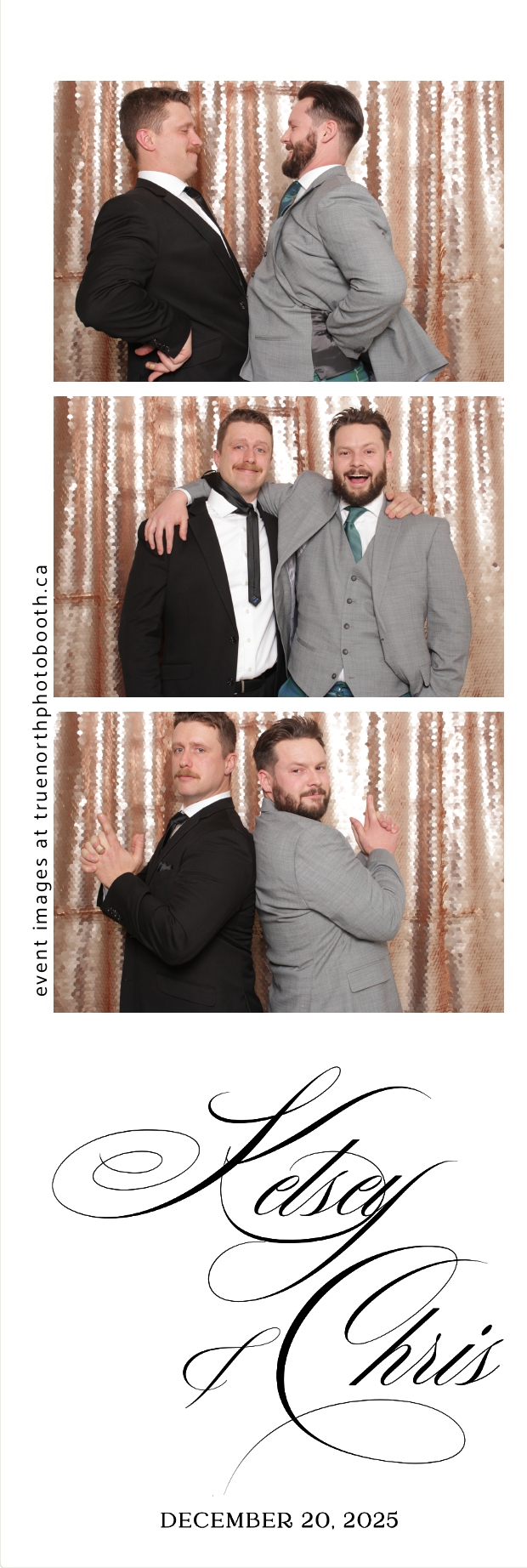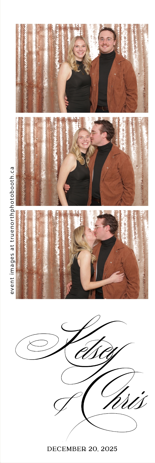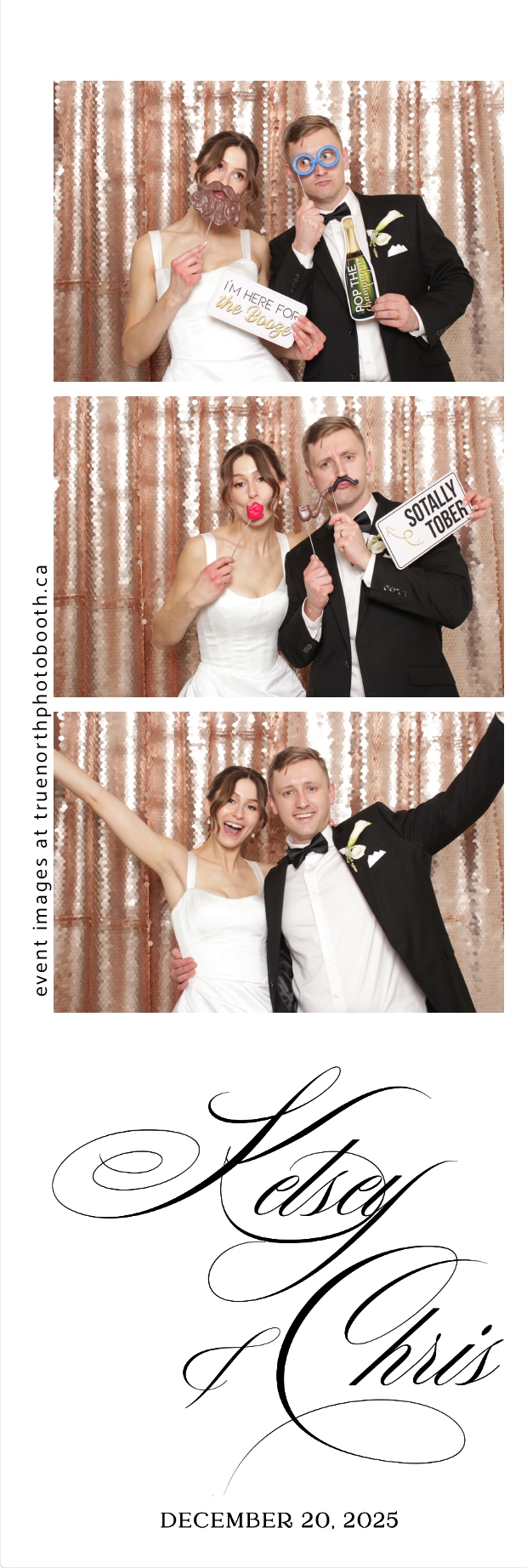 Guests enjoyed capturing memories at the interactive photo booth, featuring 2X6 custom photo strips prints and a stunning champagne sequin backdrop that added a soft, romantic glow to every photo. The fun and stylish photo experience gave everyone meaningful keepsakes to take home, making Kelsey & Chris’s special day even more memorable.