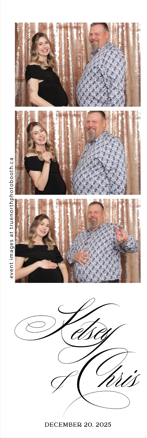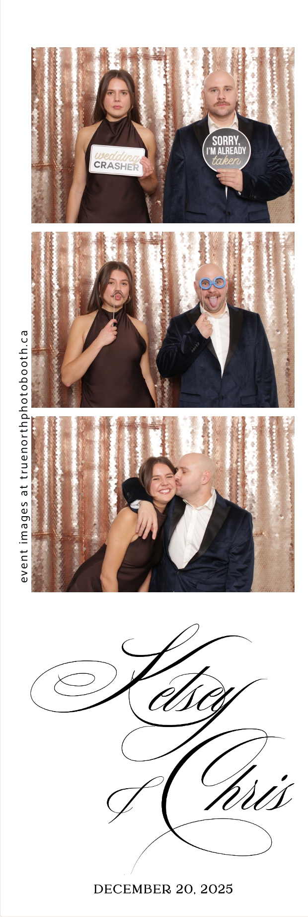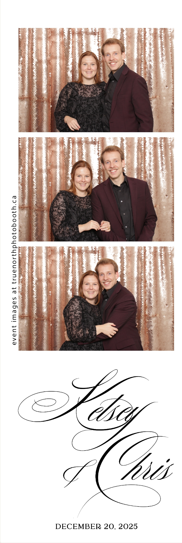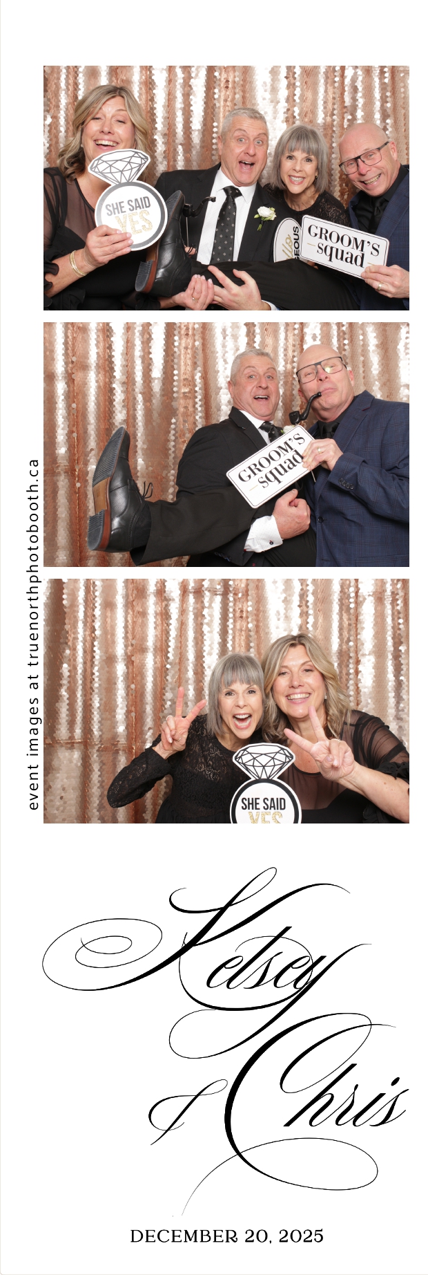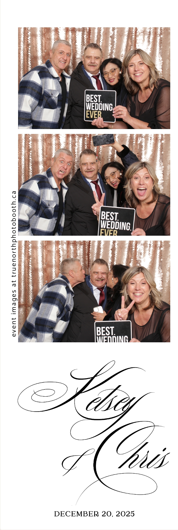 Guests enjoyed capturing memories at the interactive photo booth, featuring 2X6 custom photo strips prints and a stunning champagne sequin backdrop that added a soft, romantic glow to every photo. The fun and stylish photo experience gave everyone meaningful keepsakes to take home, making Kelsey & Chris’s special day even more memorable.